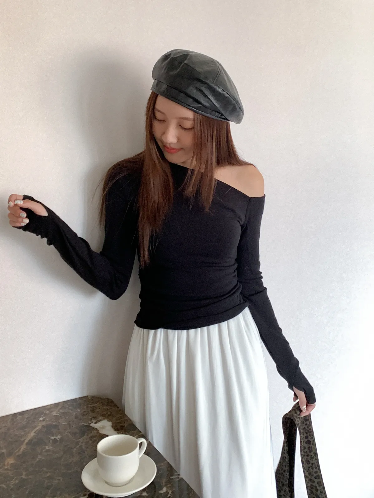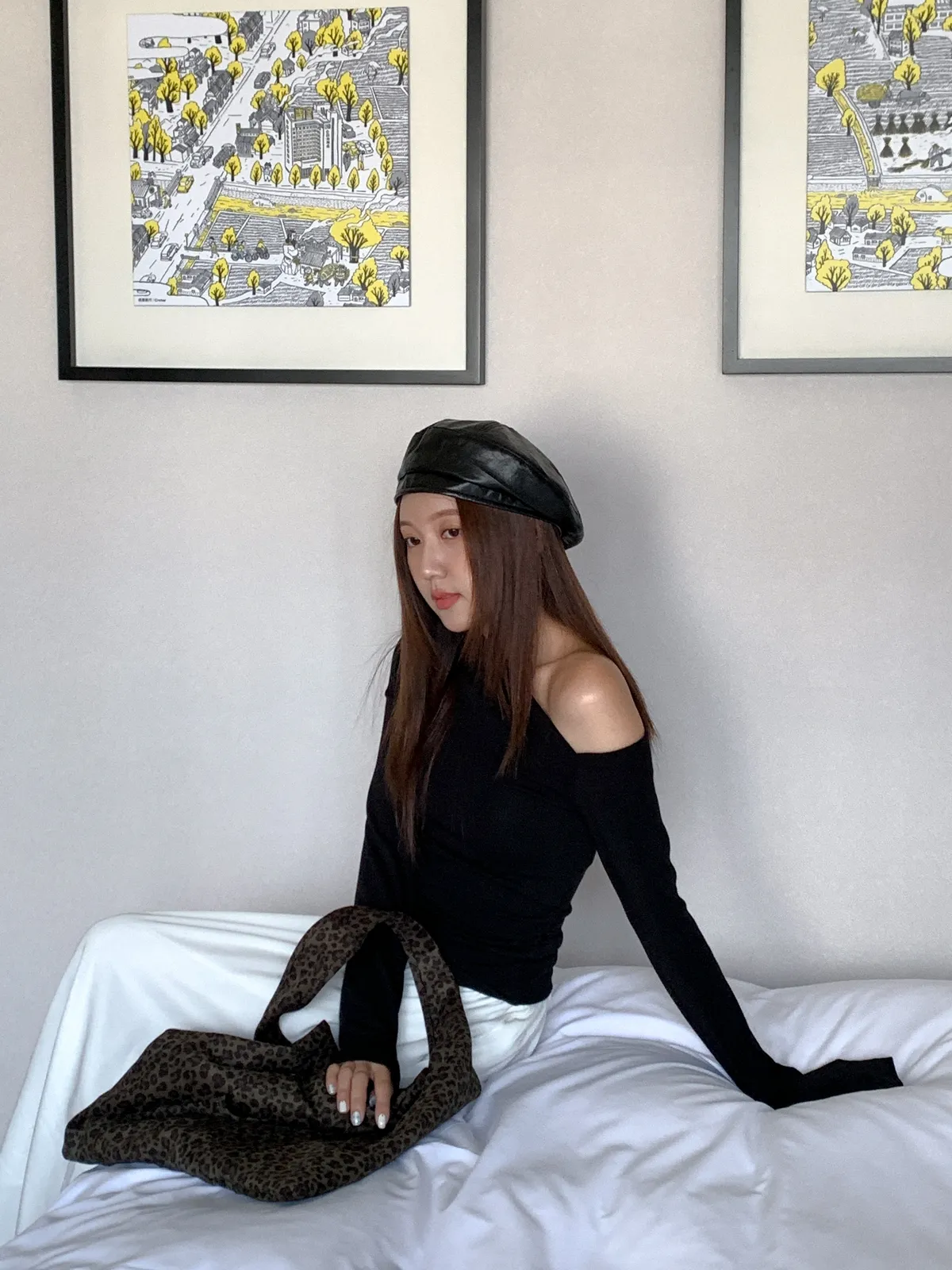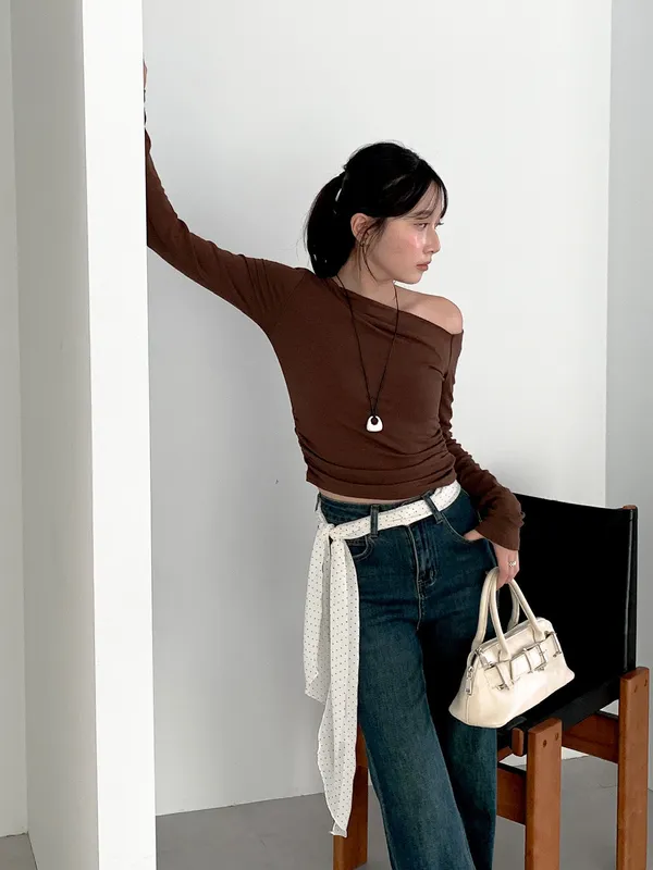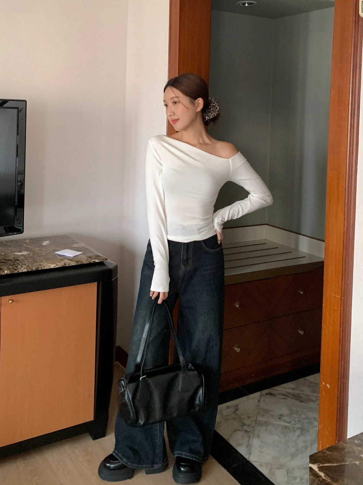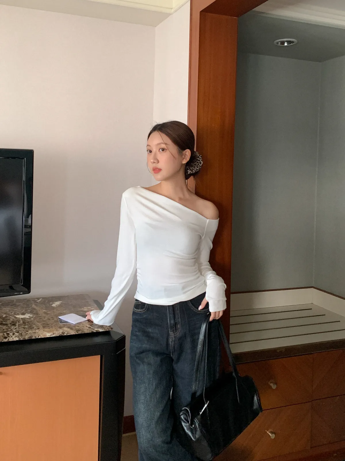 漂亮姊姊私服♥︎斜肩棉質長袖上衣