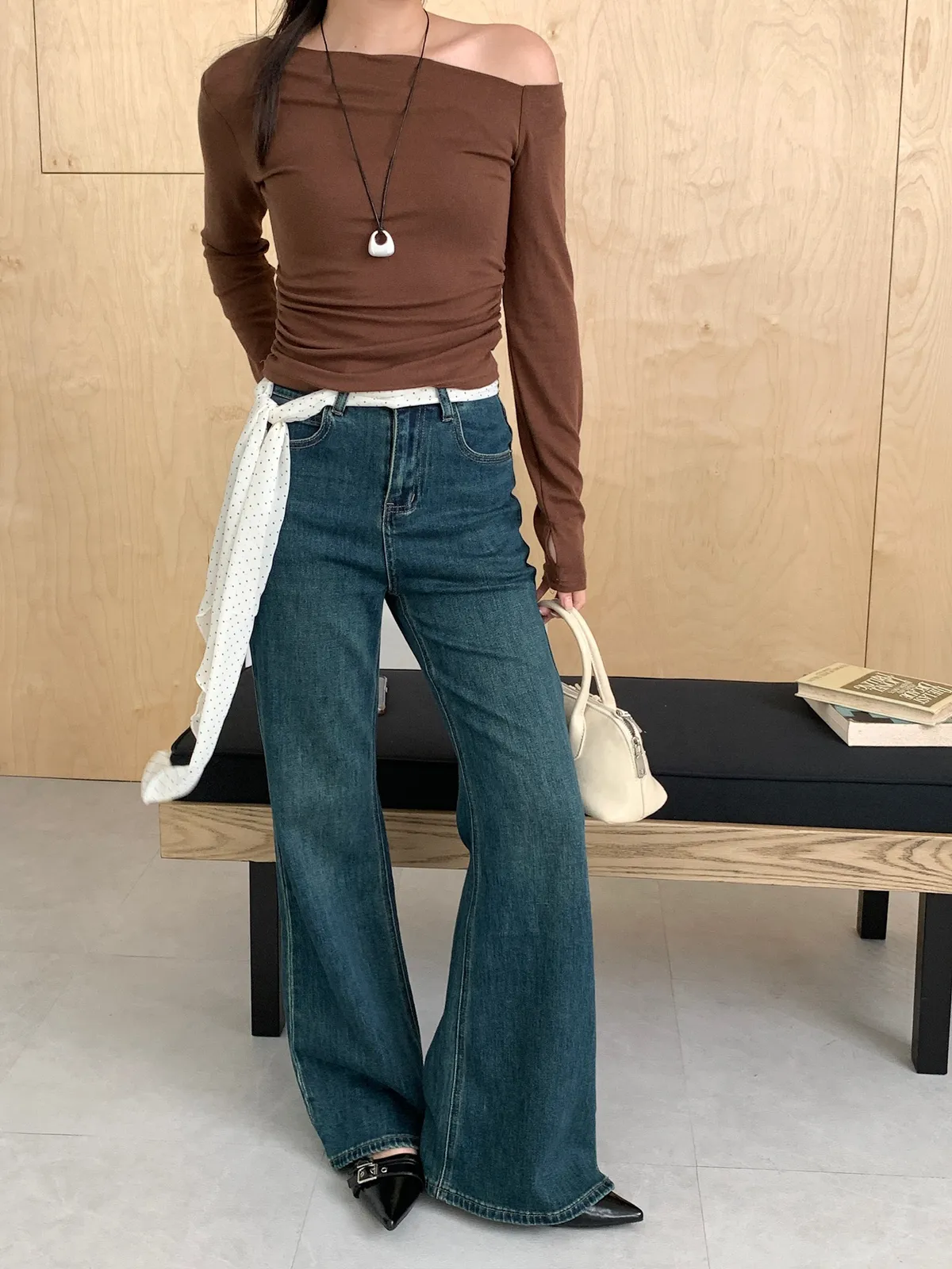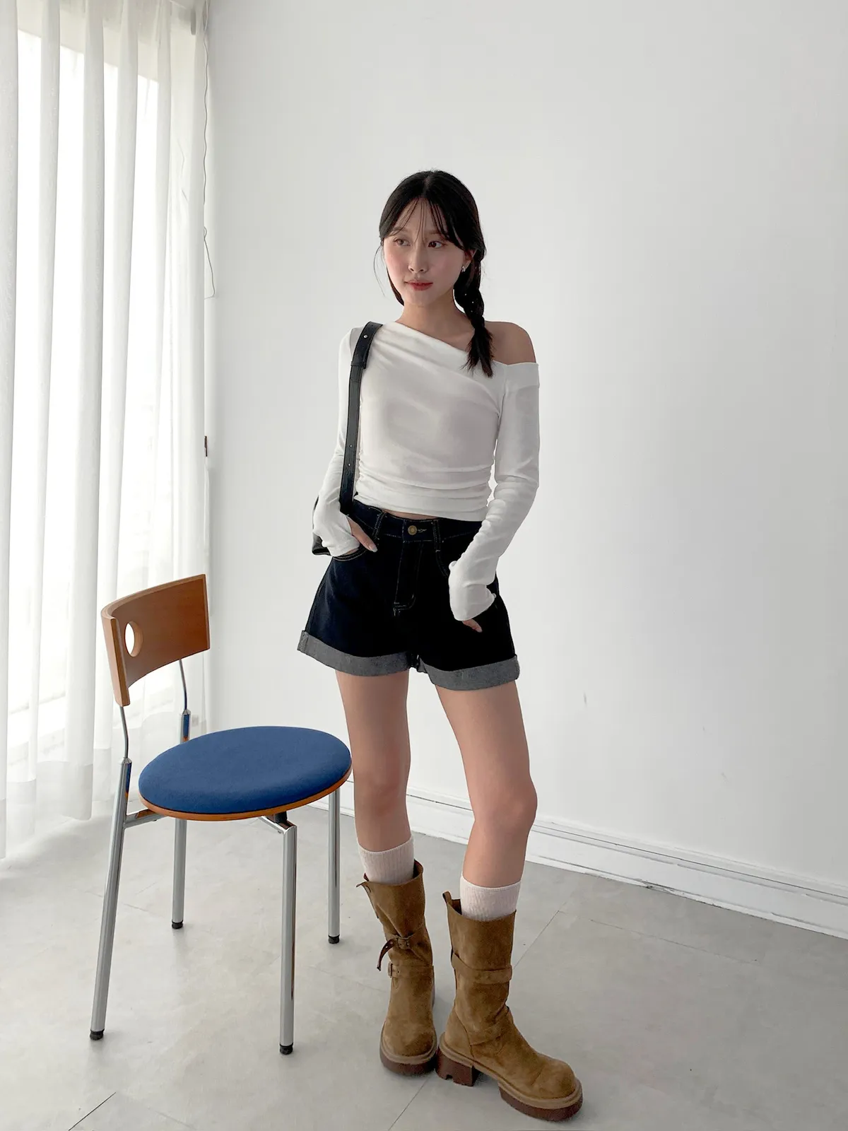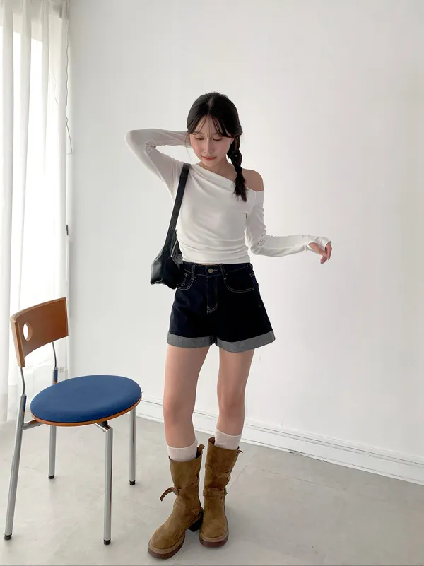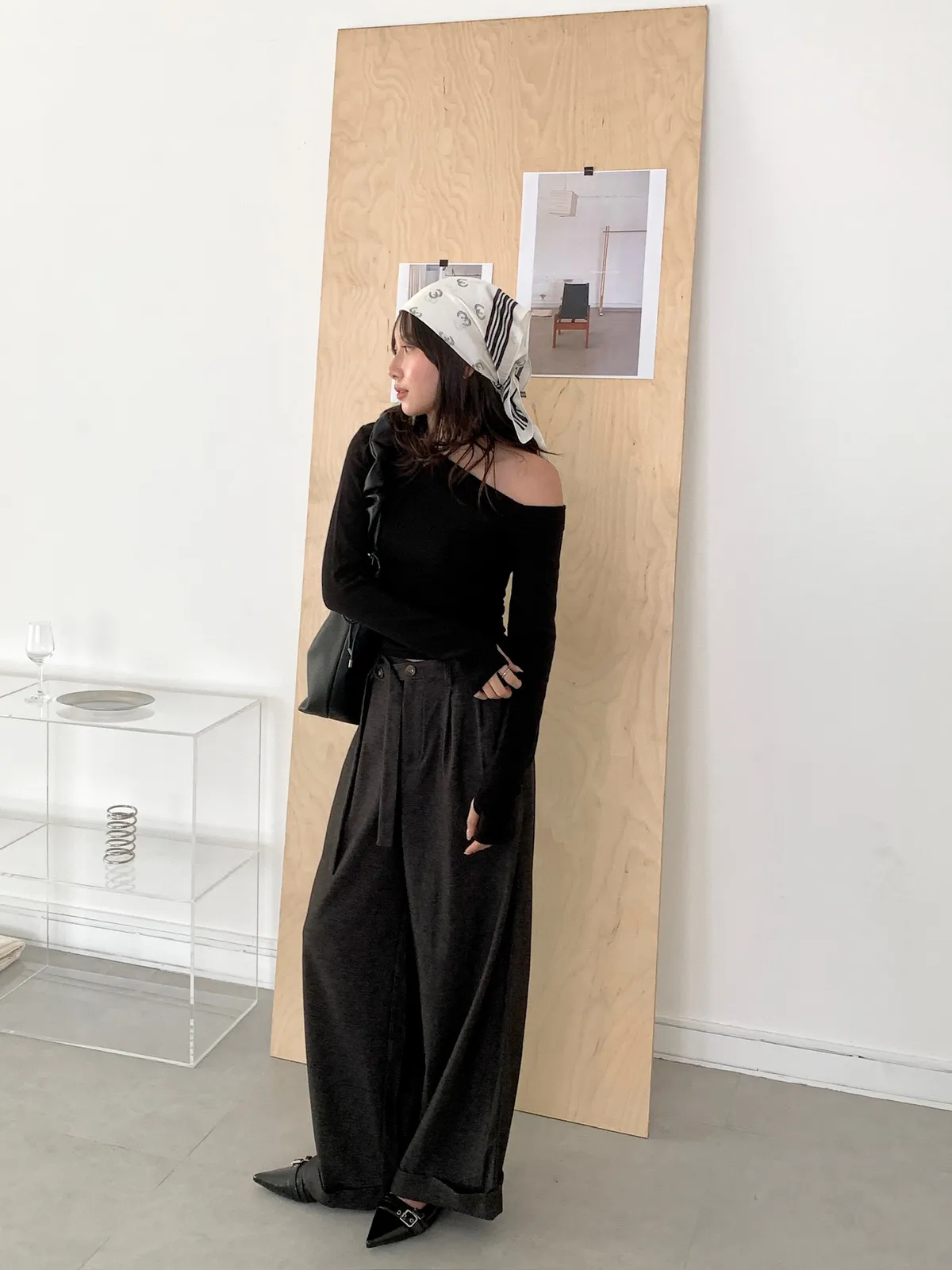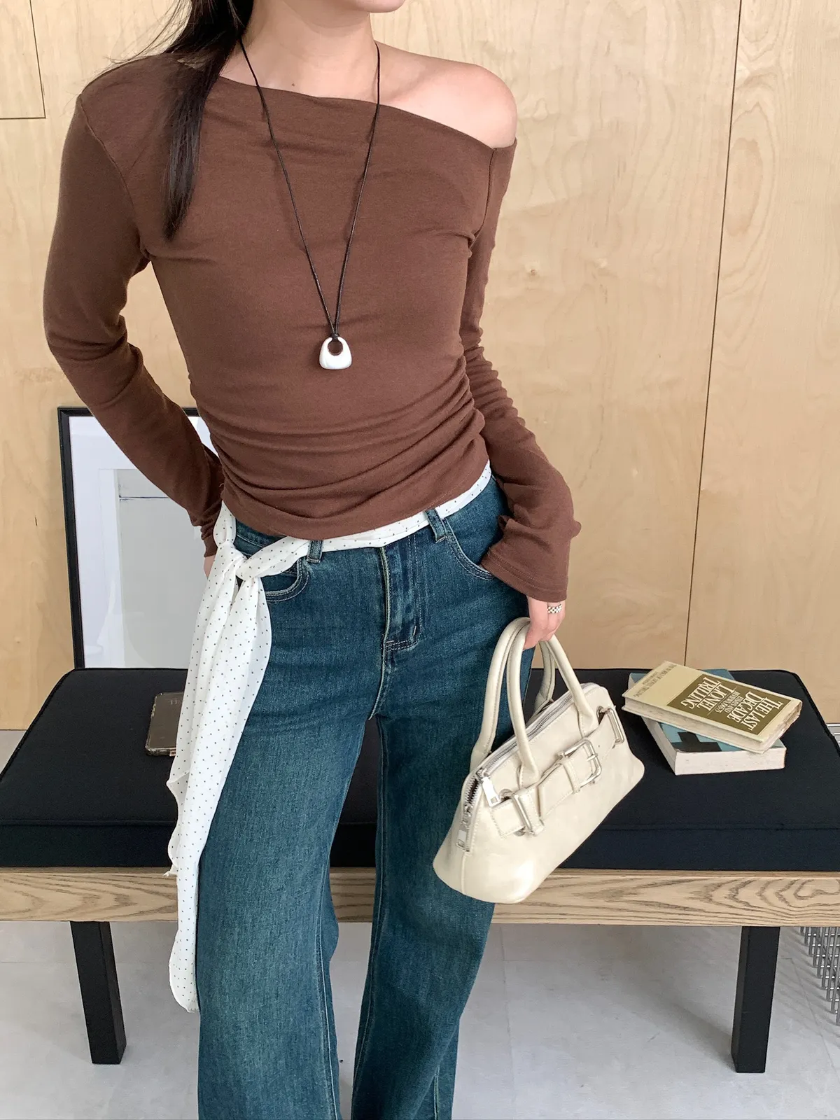 漂亮姊姊私服♥︎斜肩棉質長袖上衣