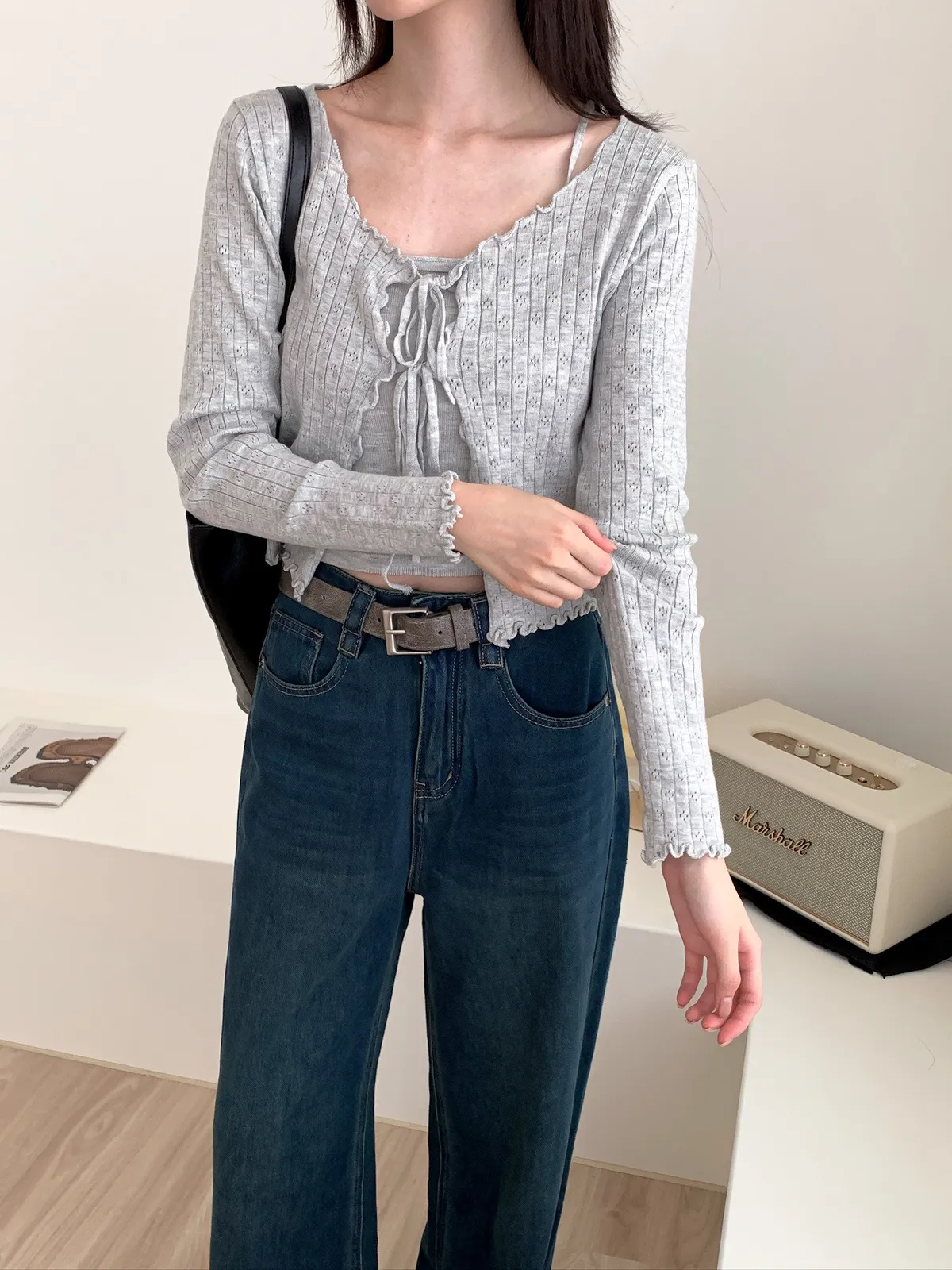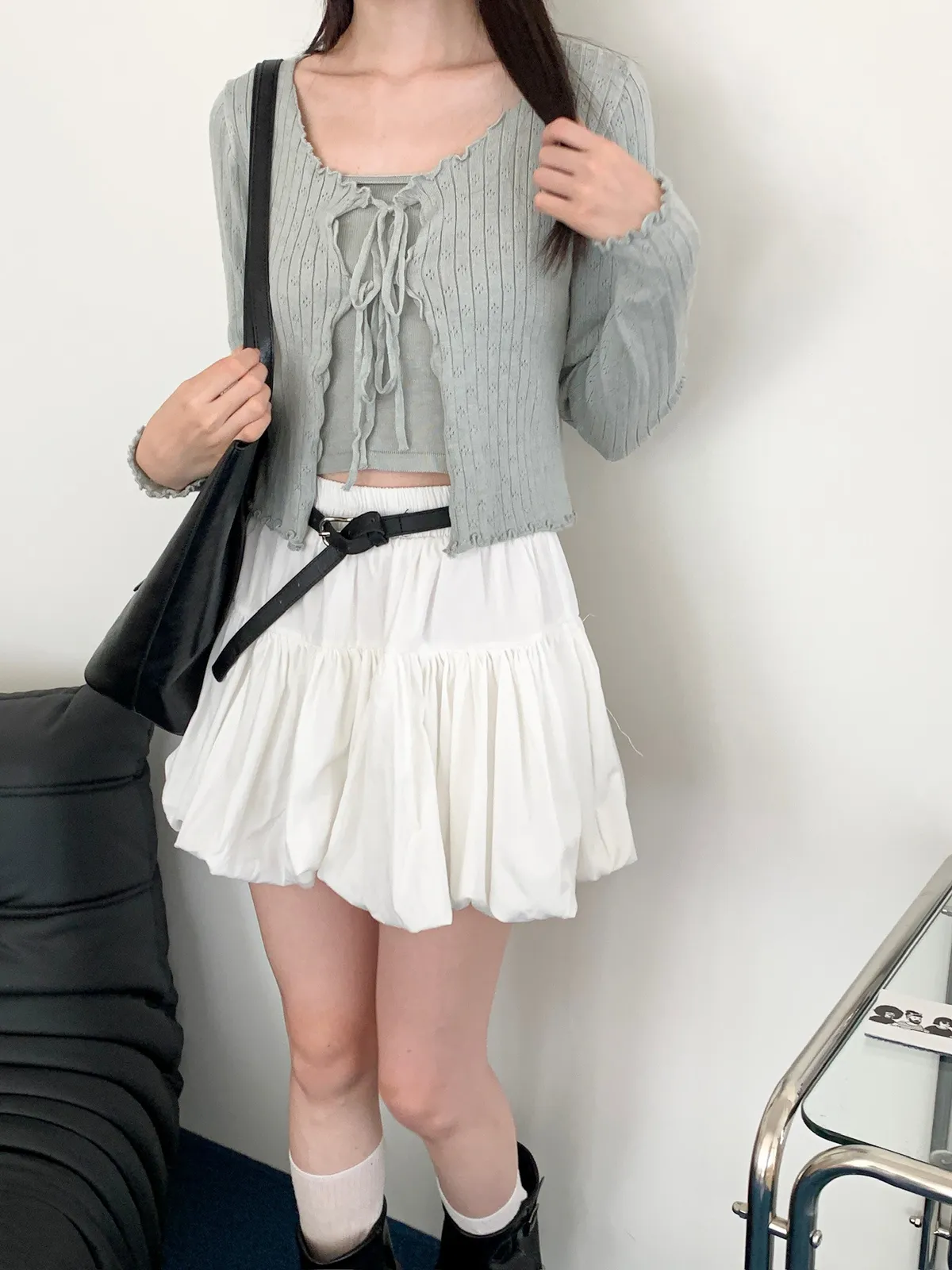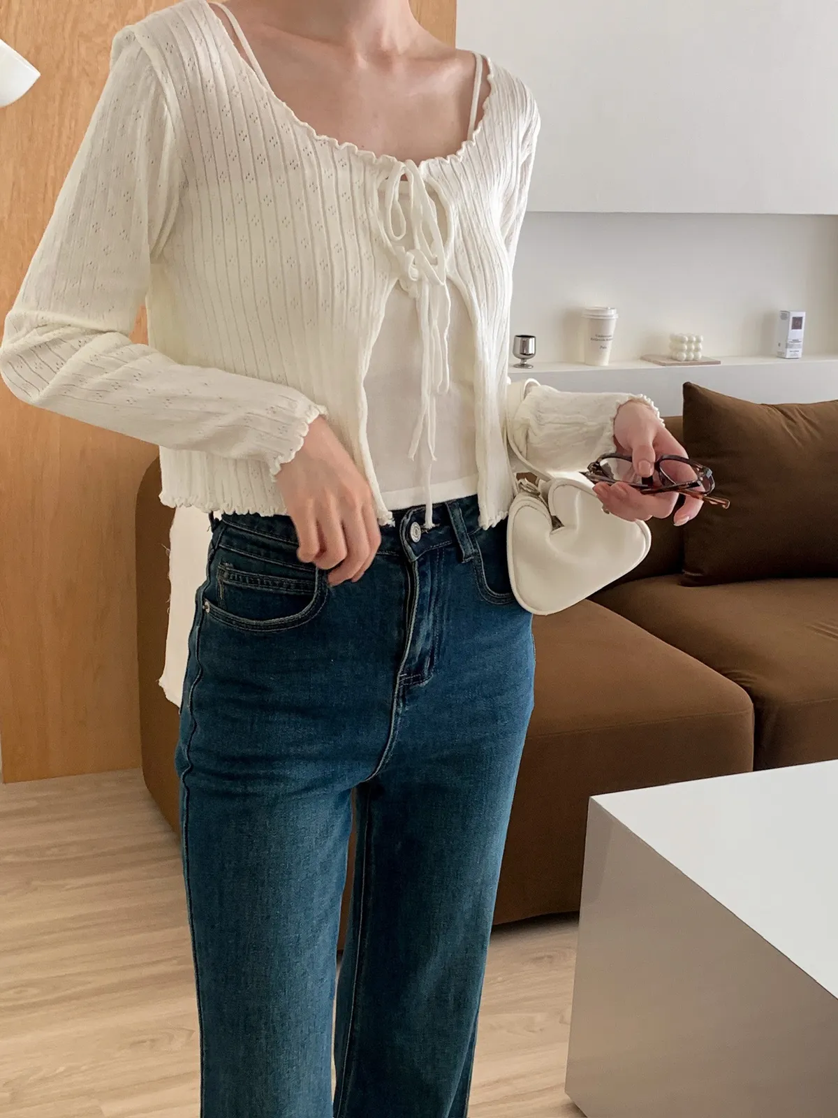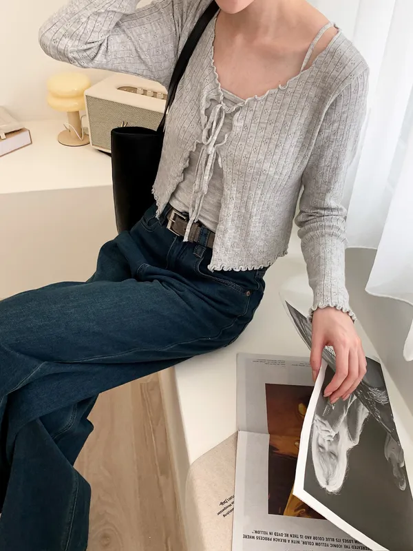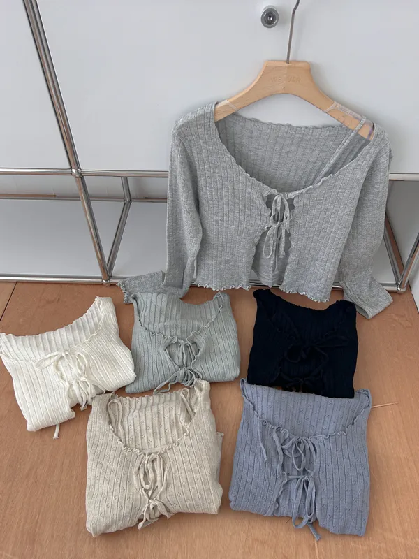編織夢境/直坑紋針織綁帶兩件式上衣