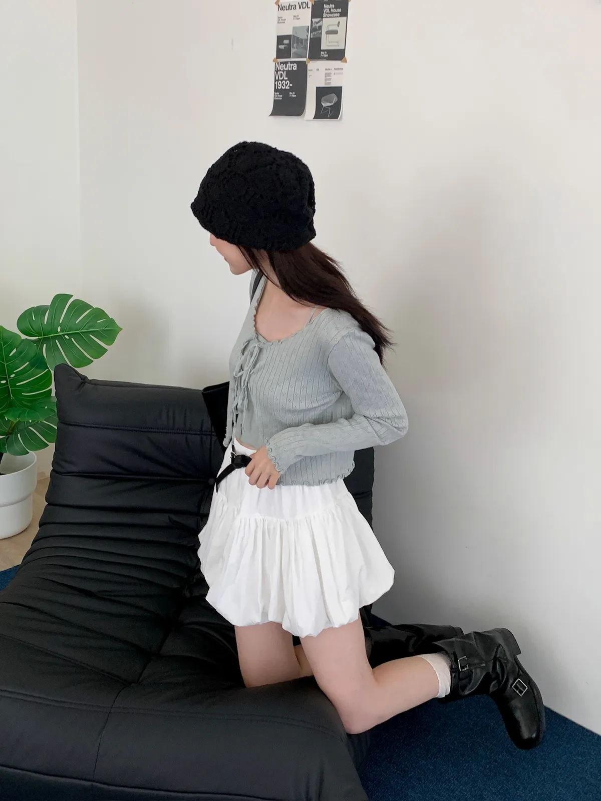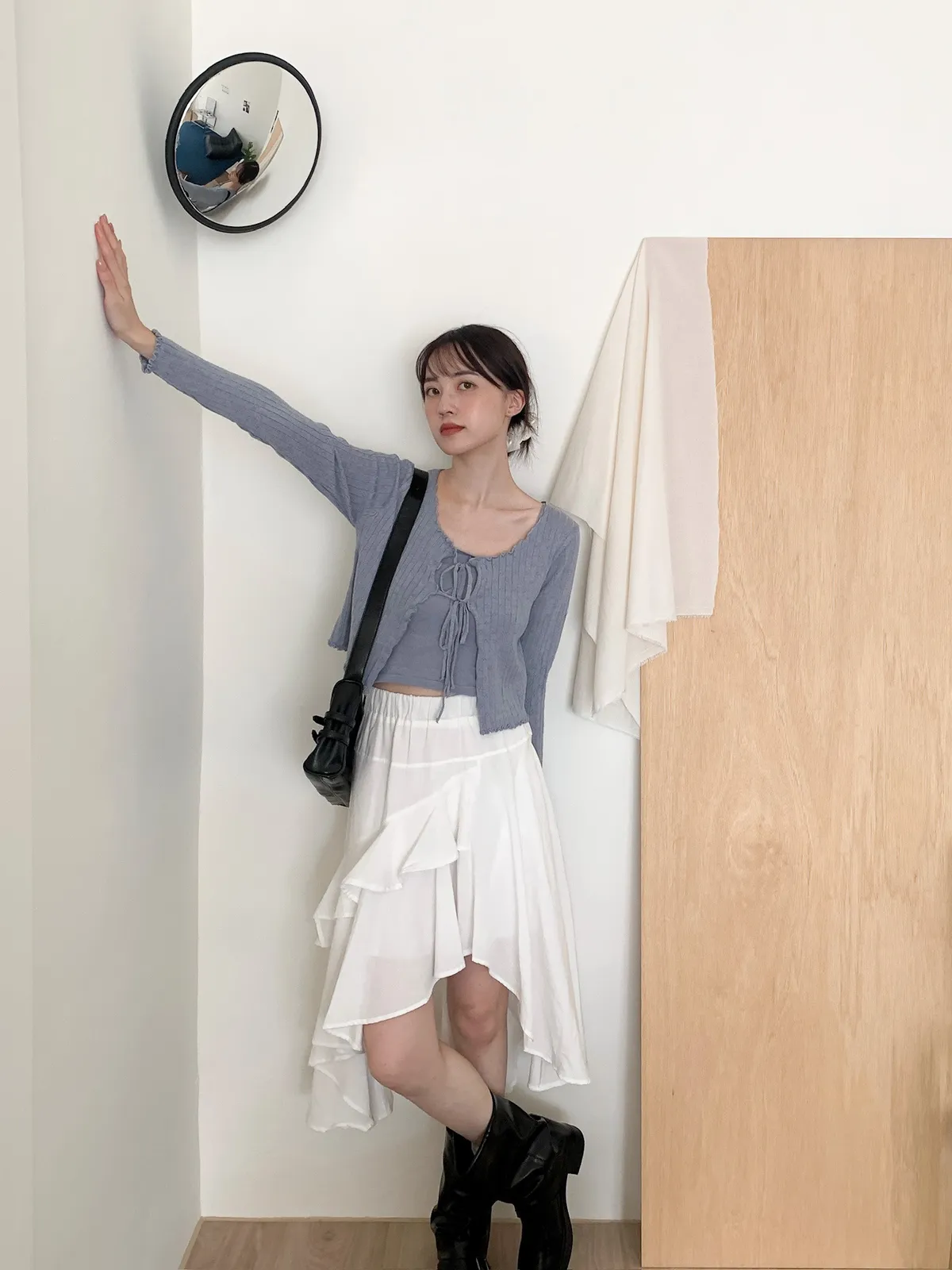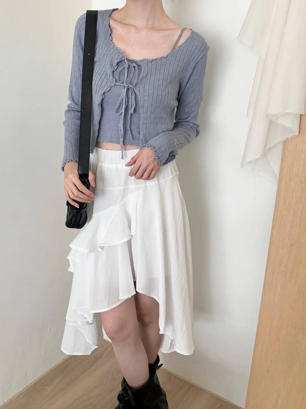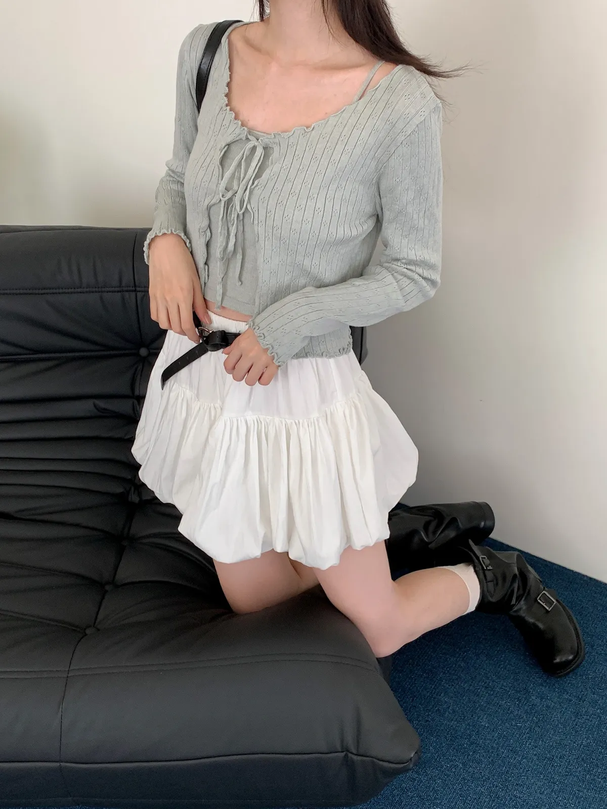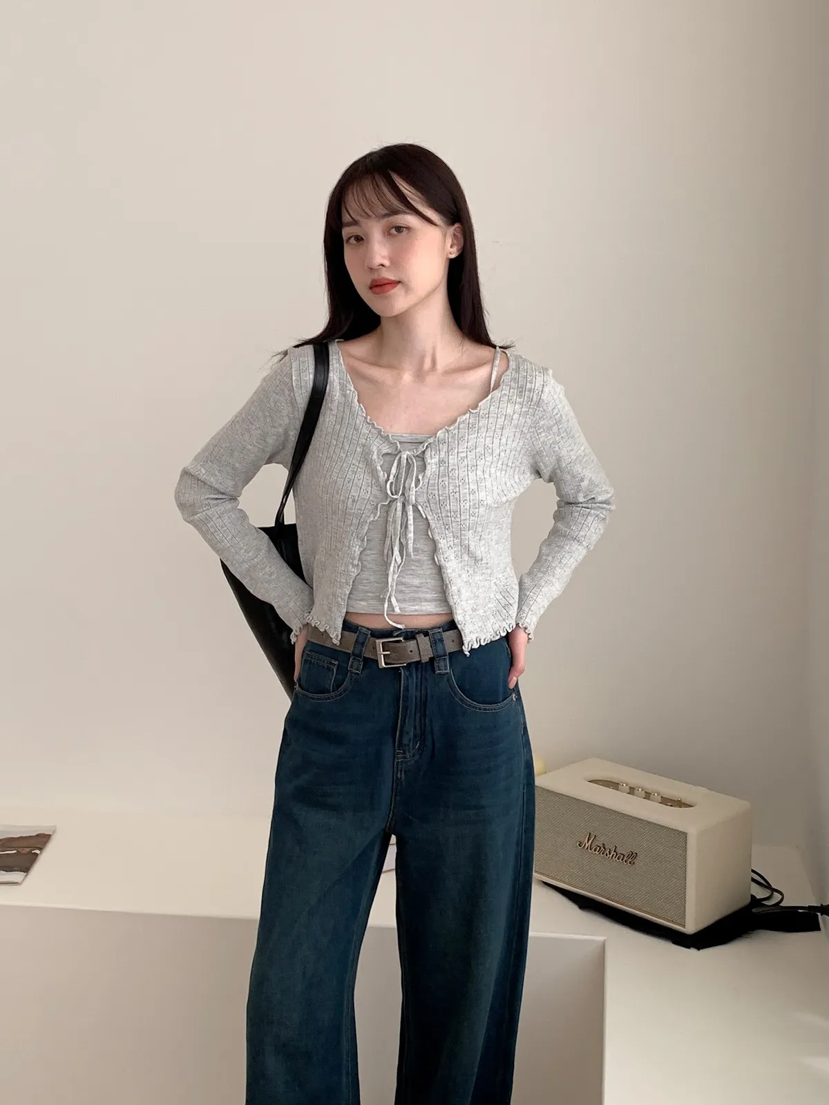 編織夢境/直坑紋針織綁帶兩件式上衣