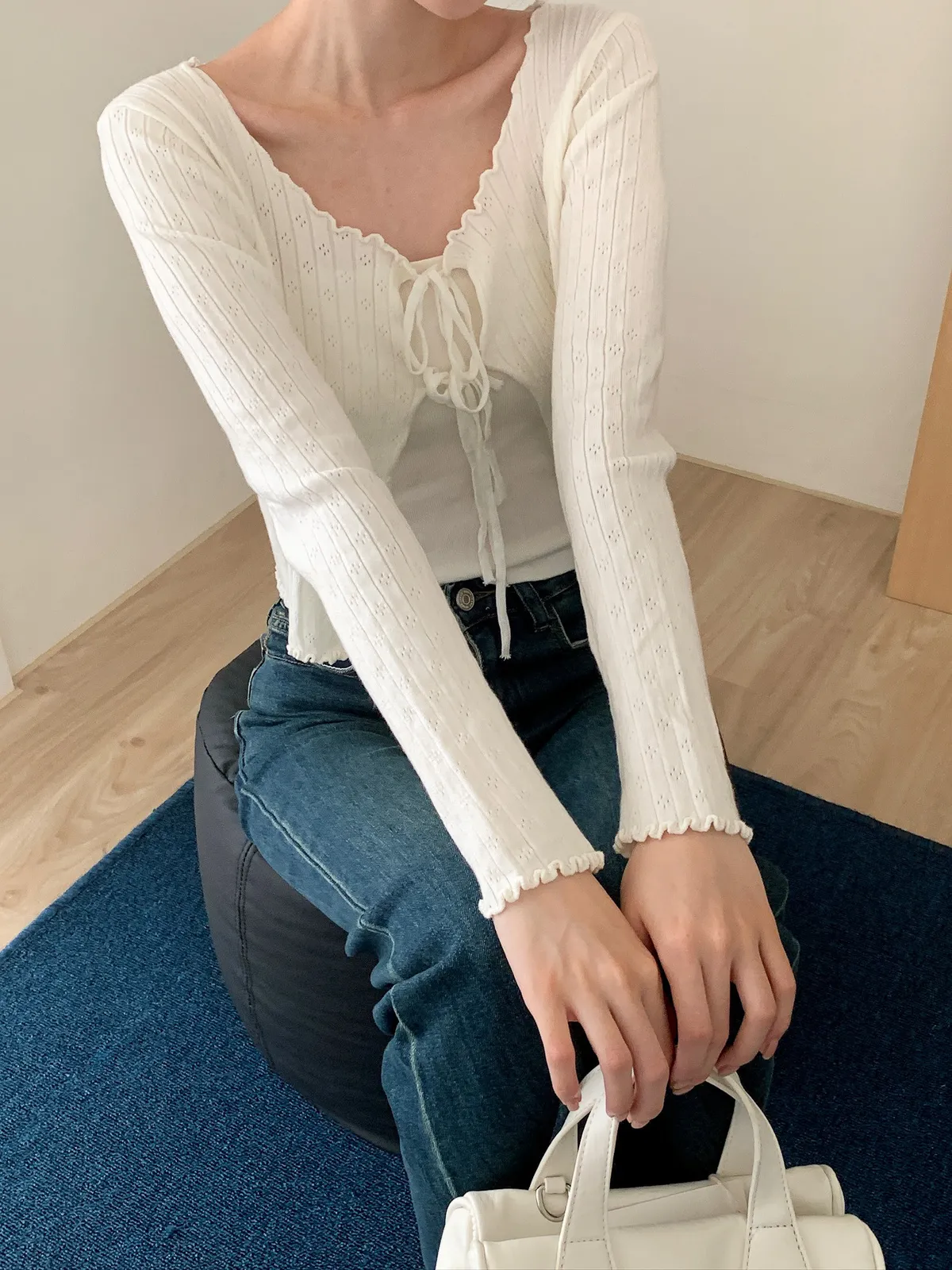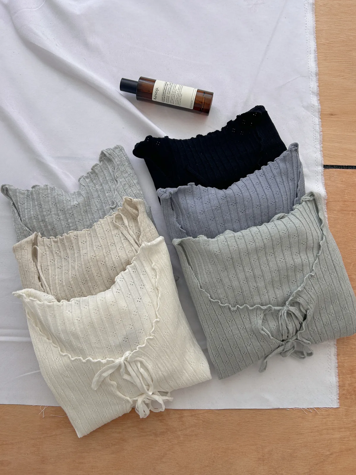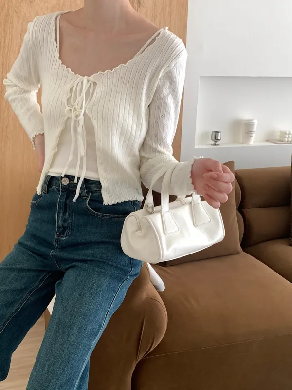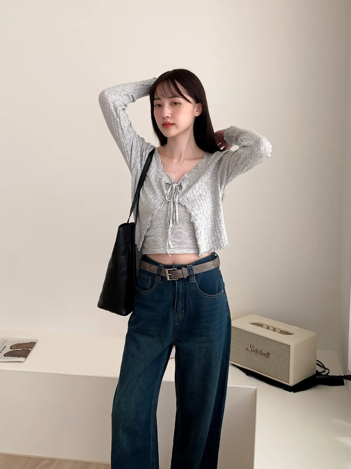 編織夢境/直坑紋針織綁帶兩件式上衣