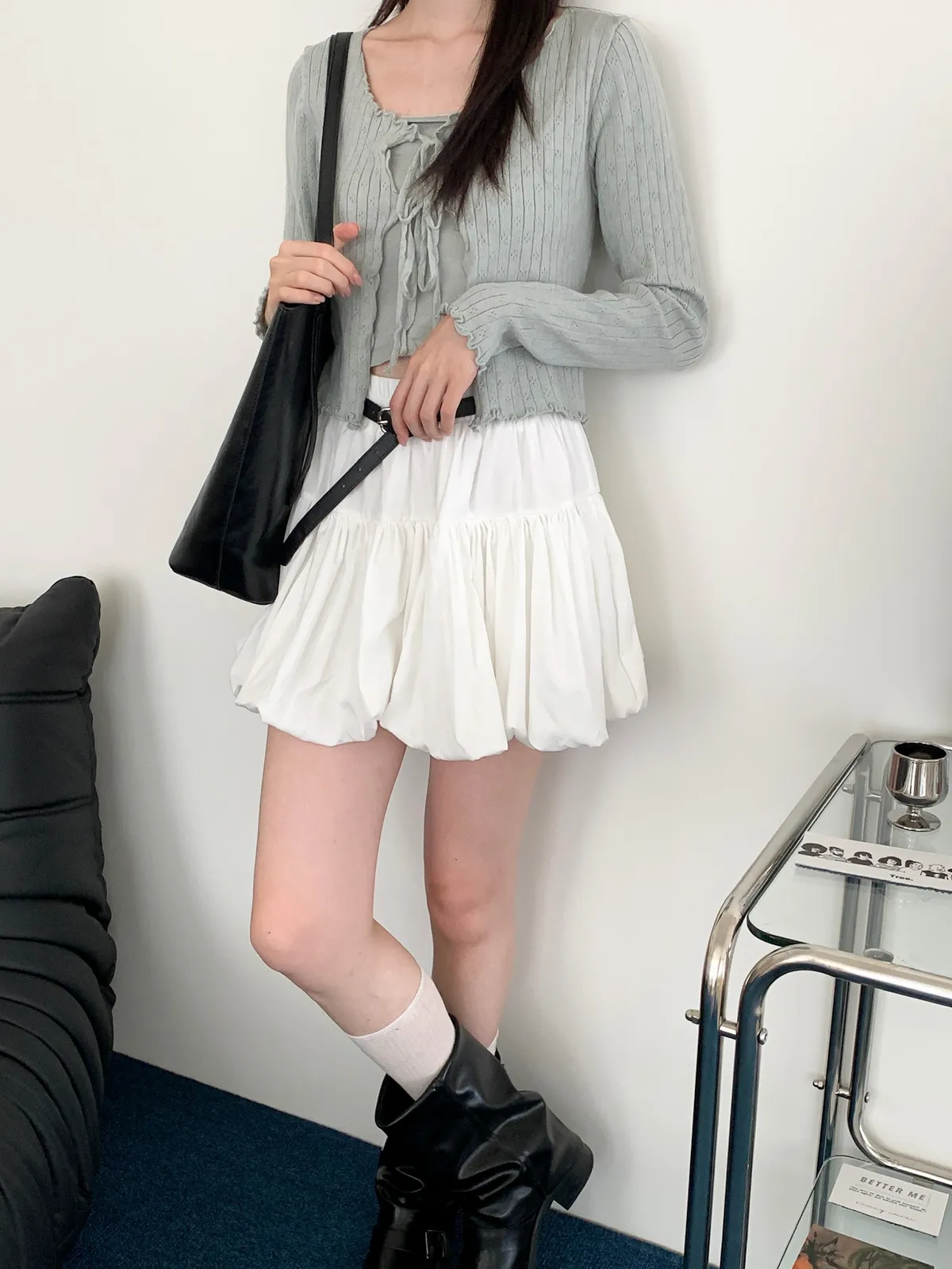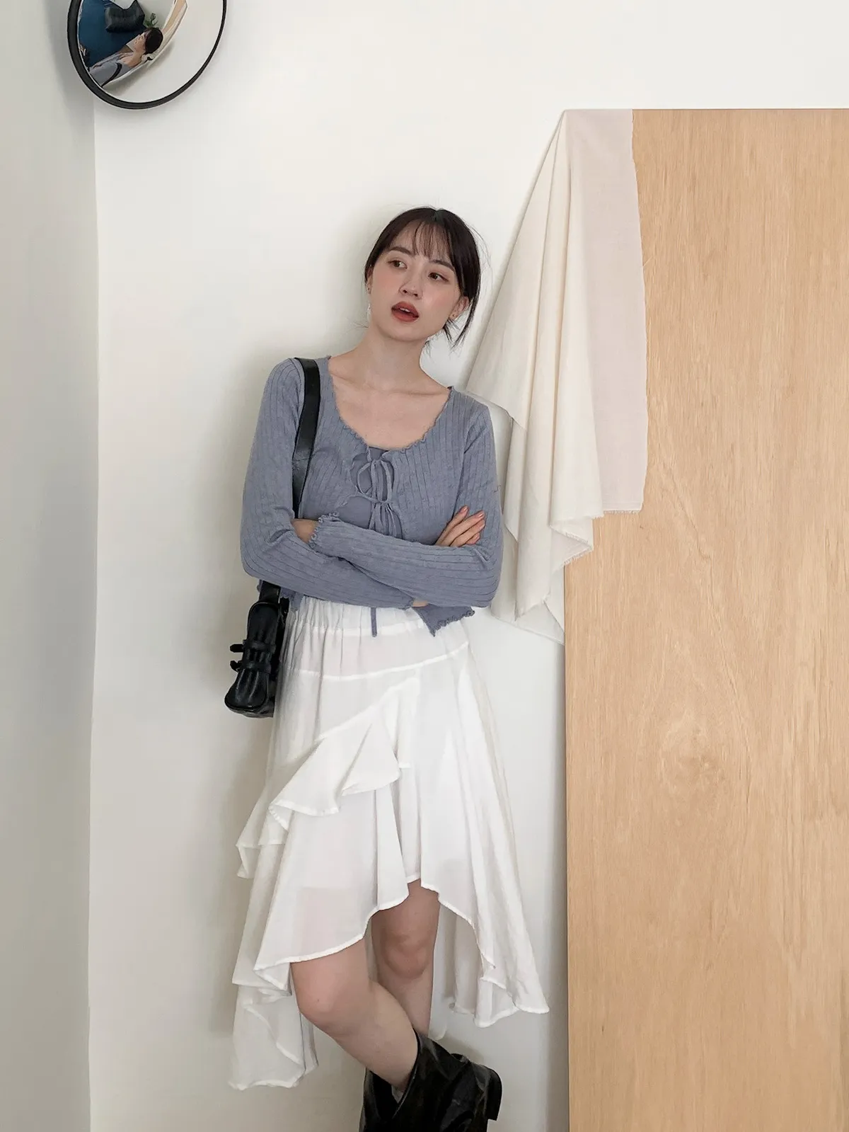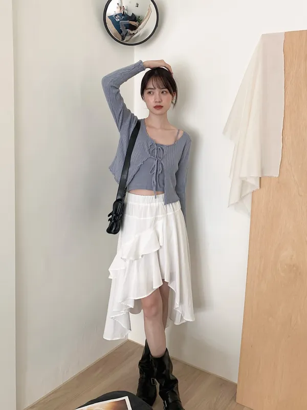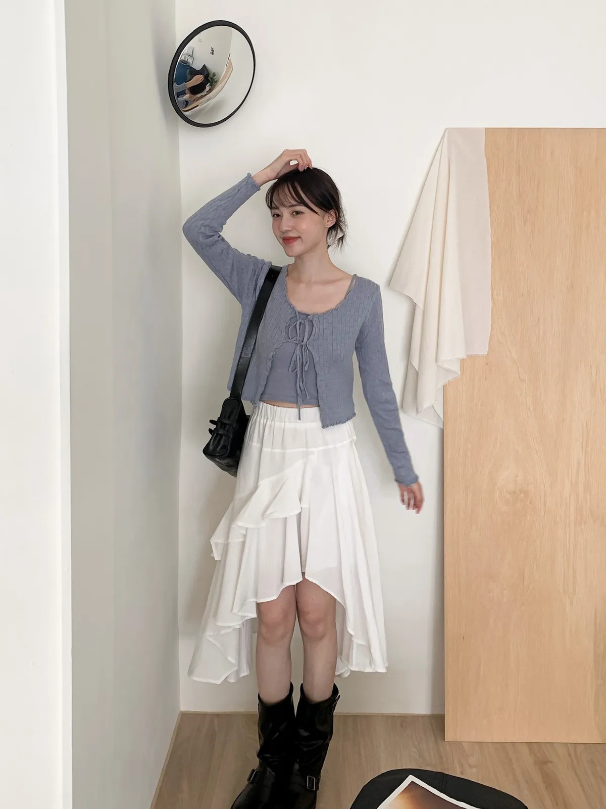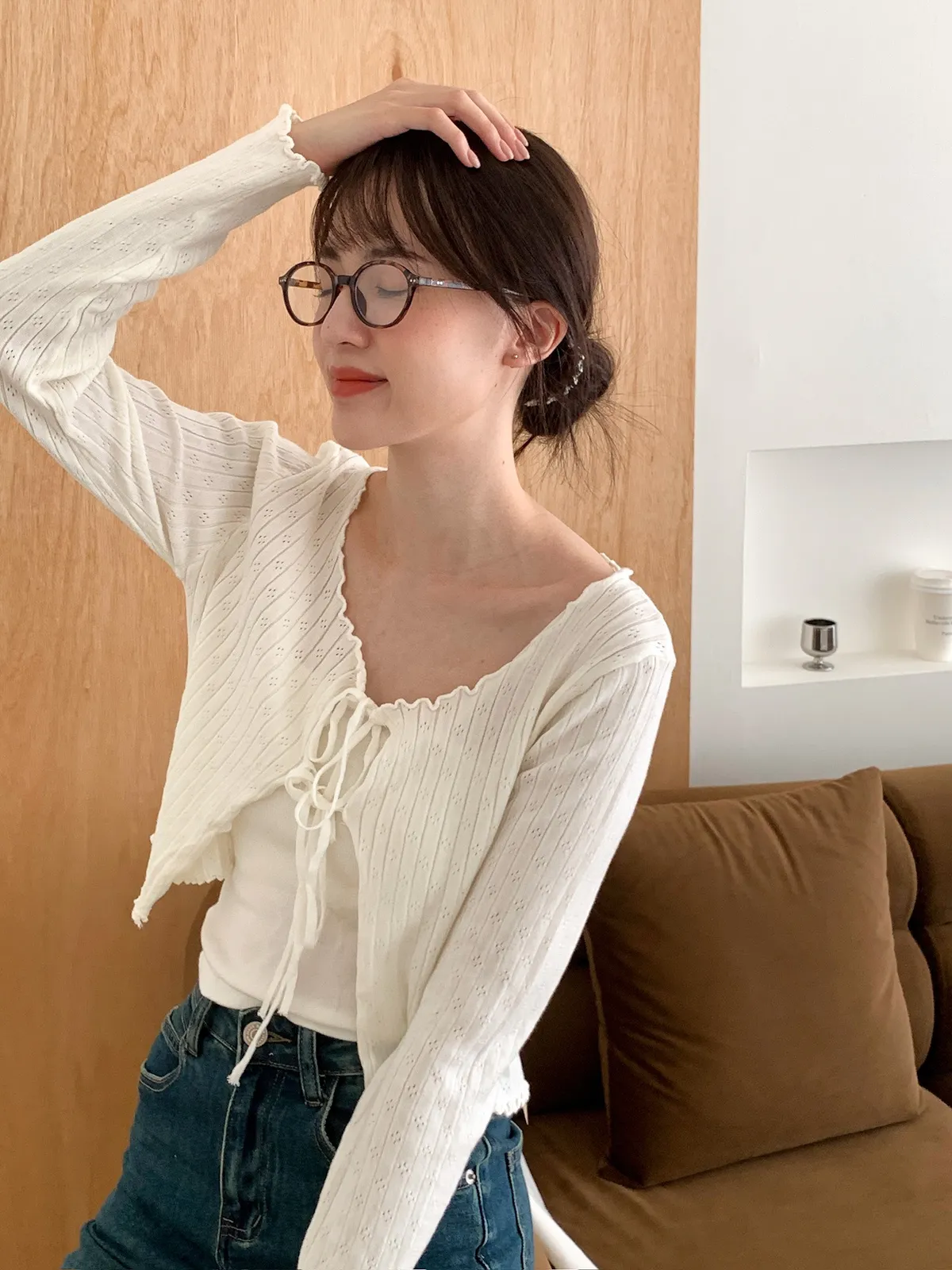 編織夢境/直坑紋針織綁帶兩件式上衣