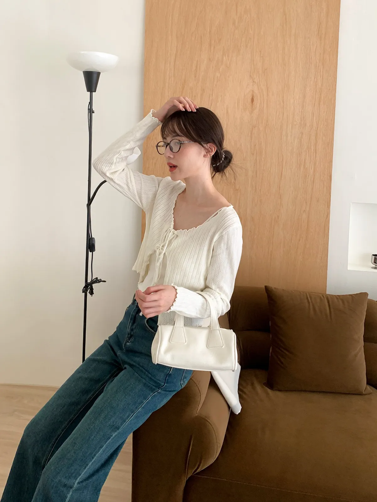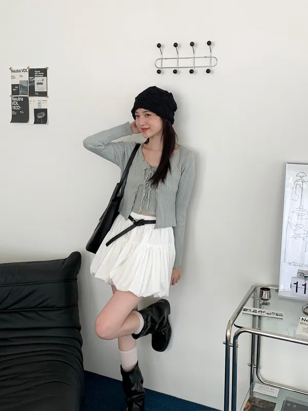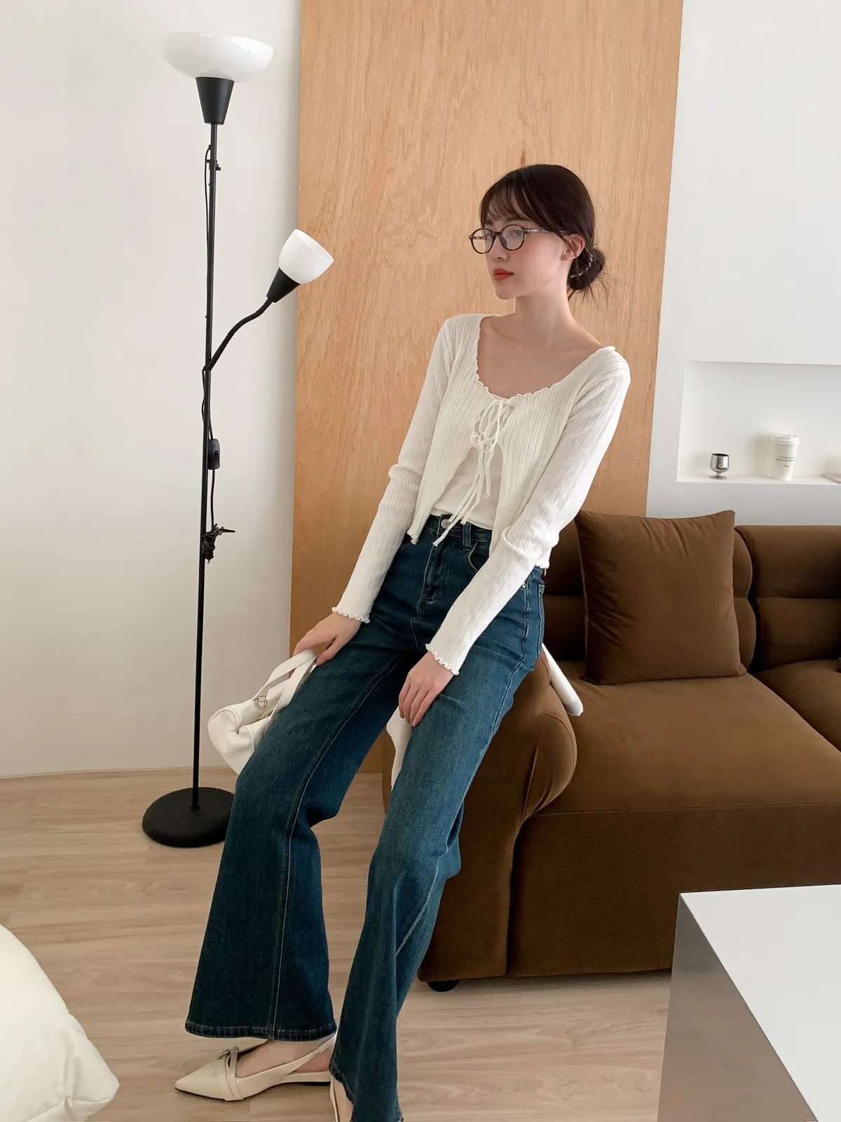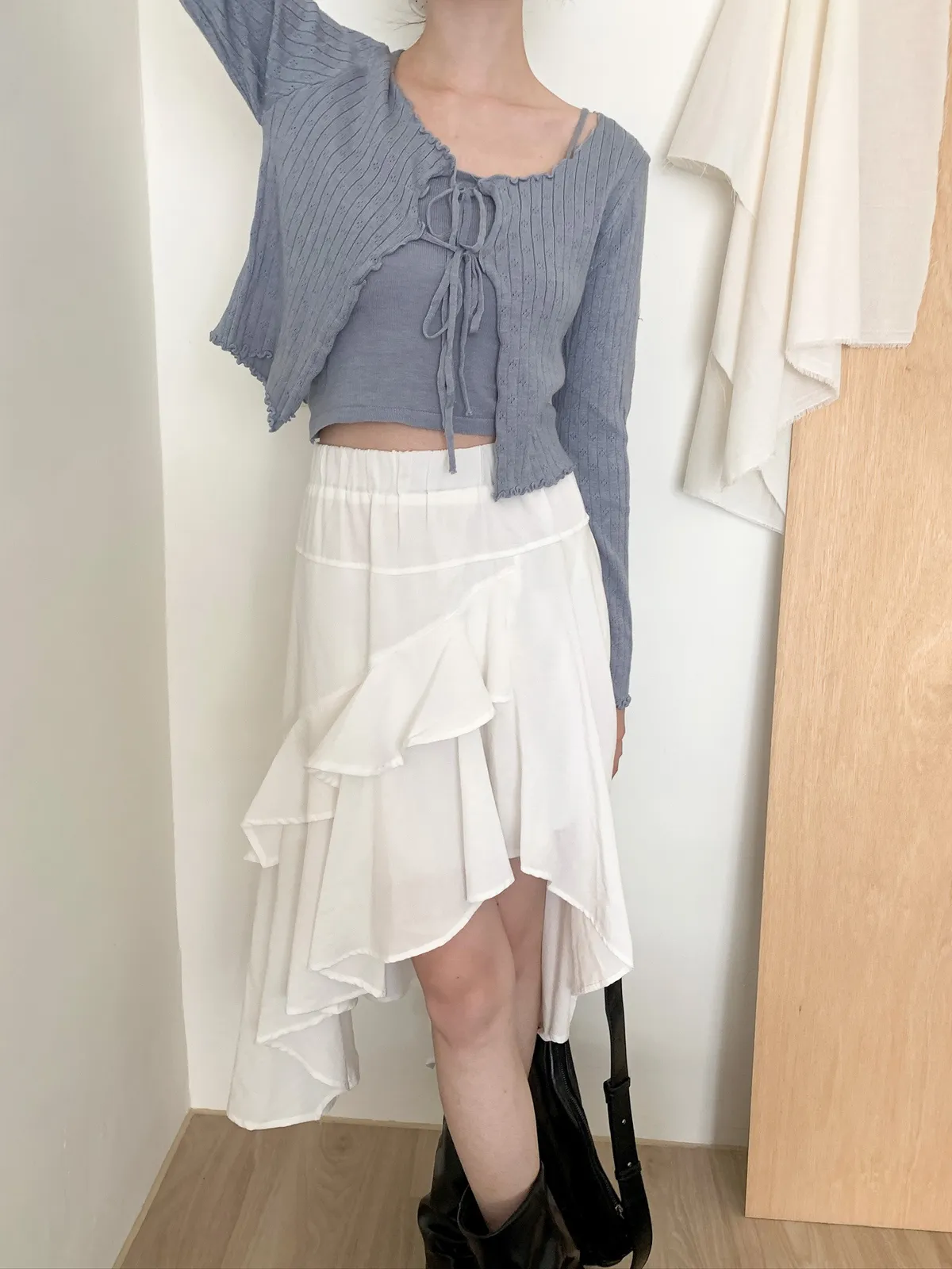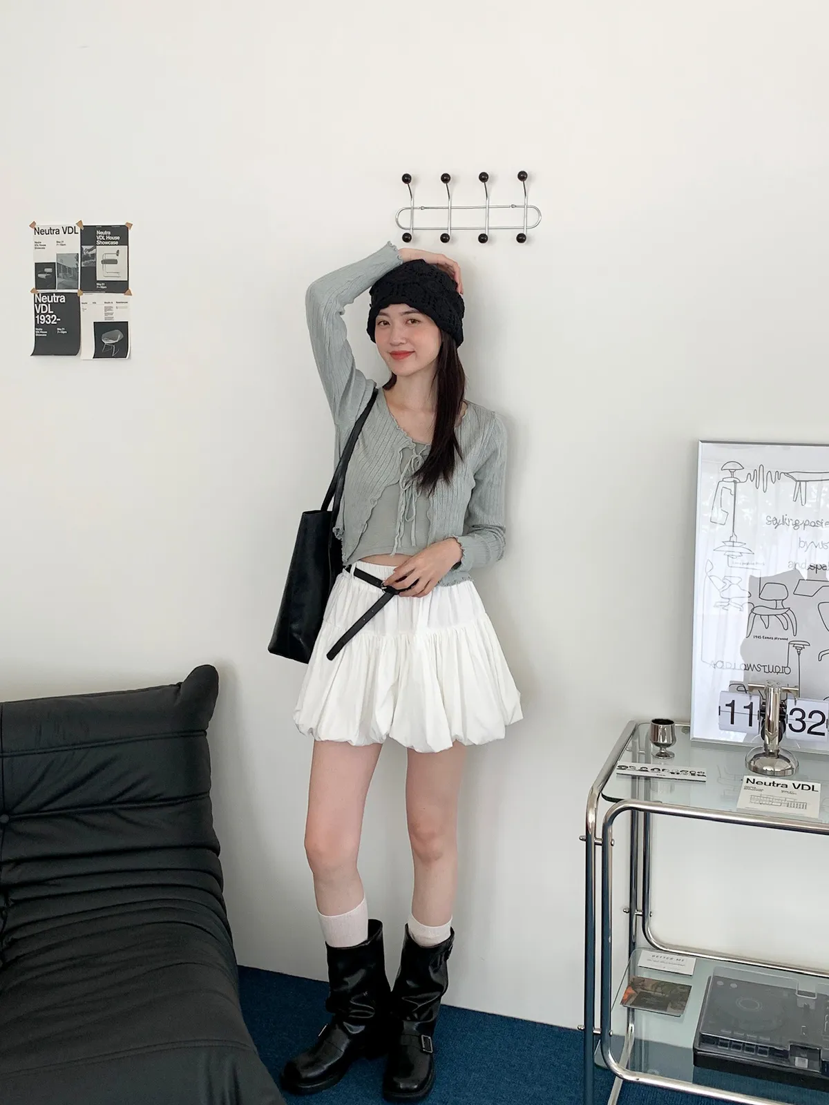 編織夢境/直坑紋針織綁帶兩件式上衣