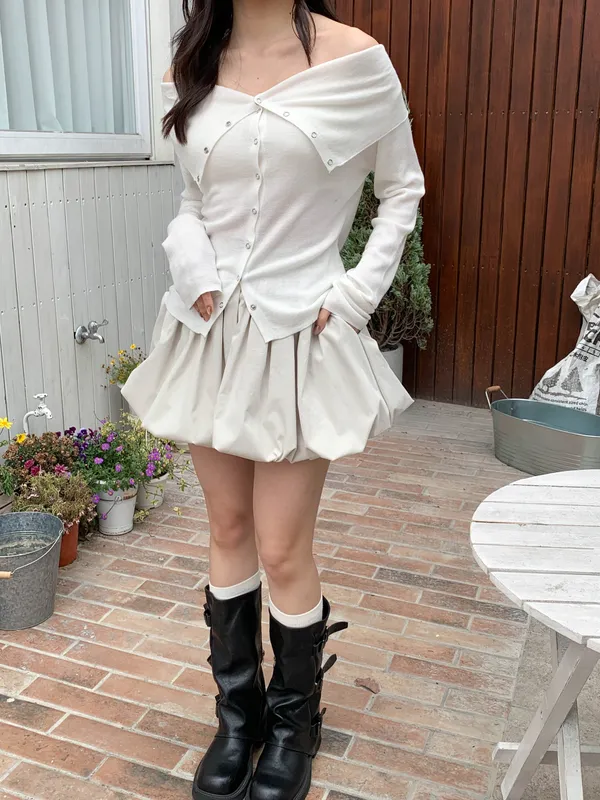 清透白開水|鐵環扣軟針織上衣
