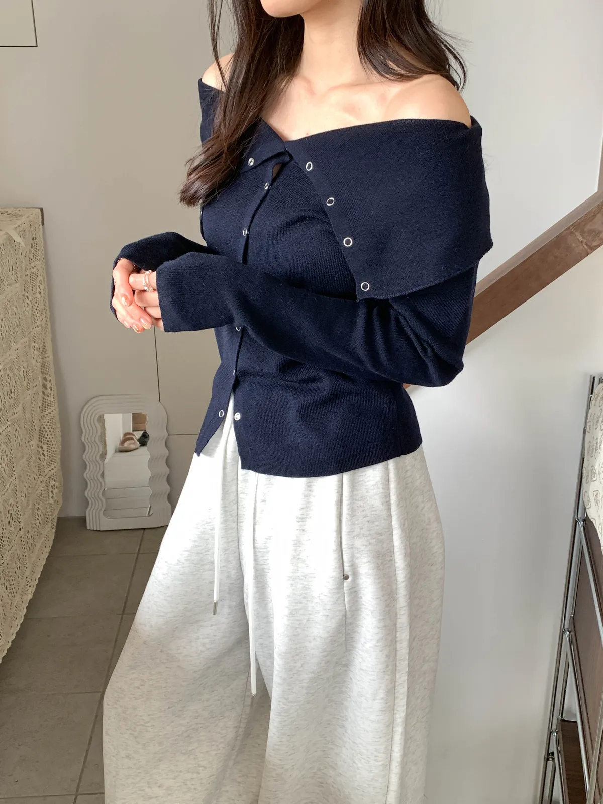 鐵環扣軟針織上衣