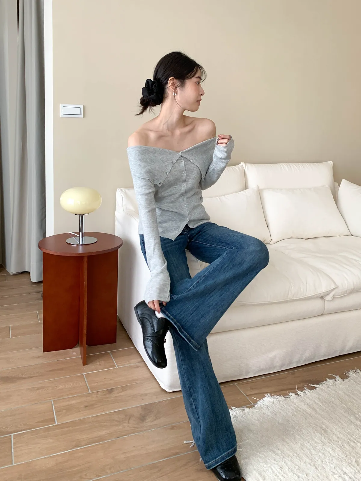 (鐵環扣設計增添小巧亮點,搭配高腰褲或裙子都很好看)
