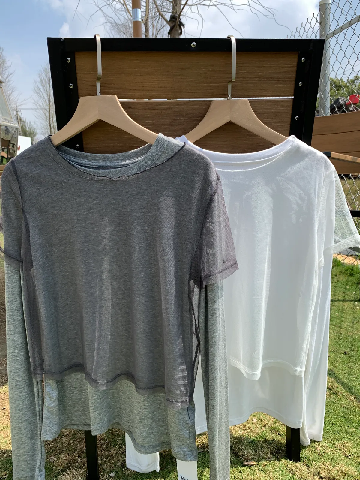 (透紗疊穿設計穿起來輕盈俏皮,層次感十足,短袖疊長袖的比例剛好)