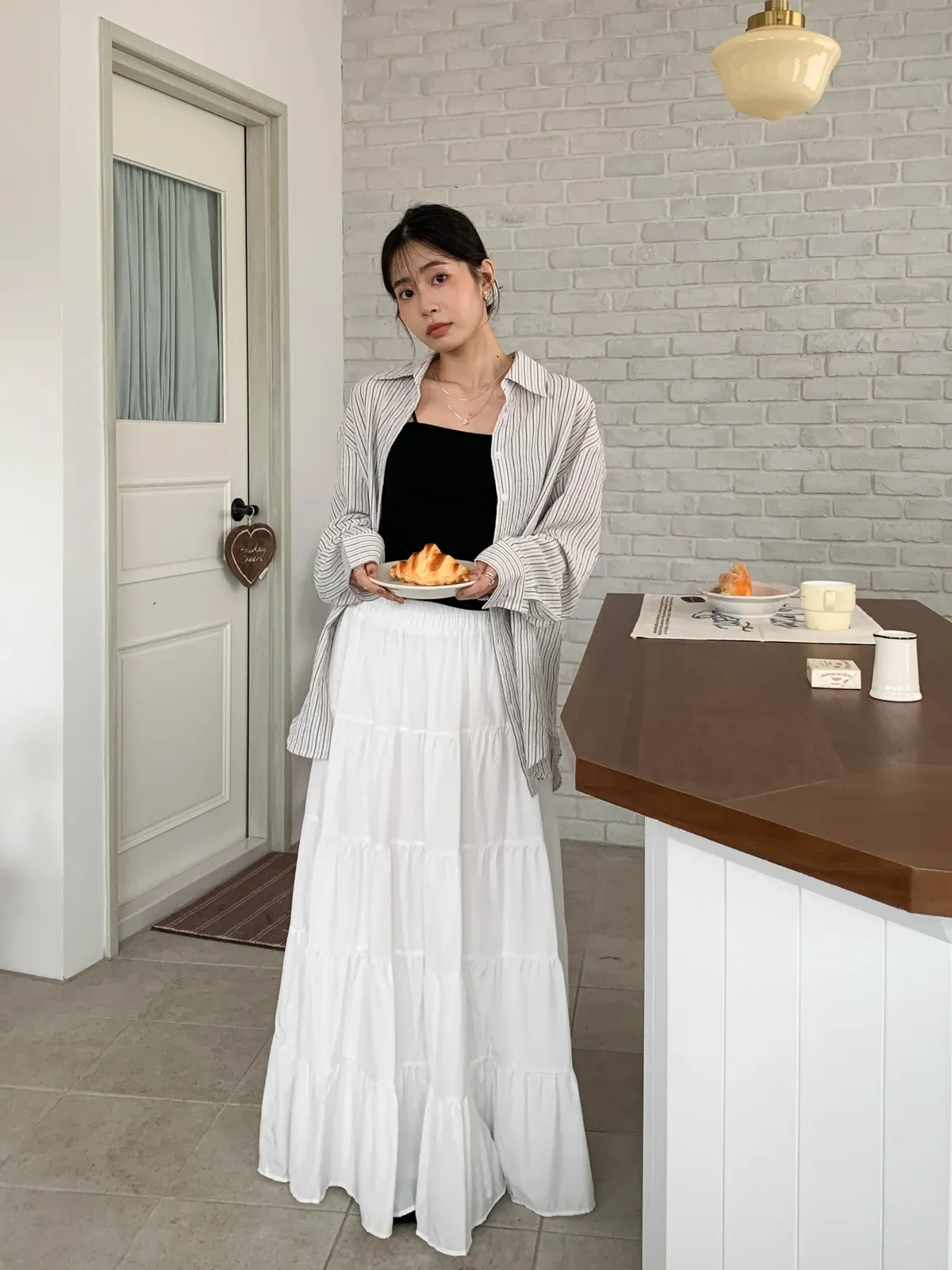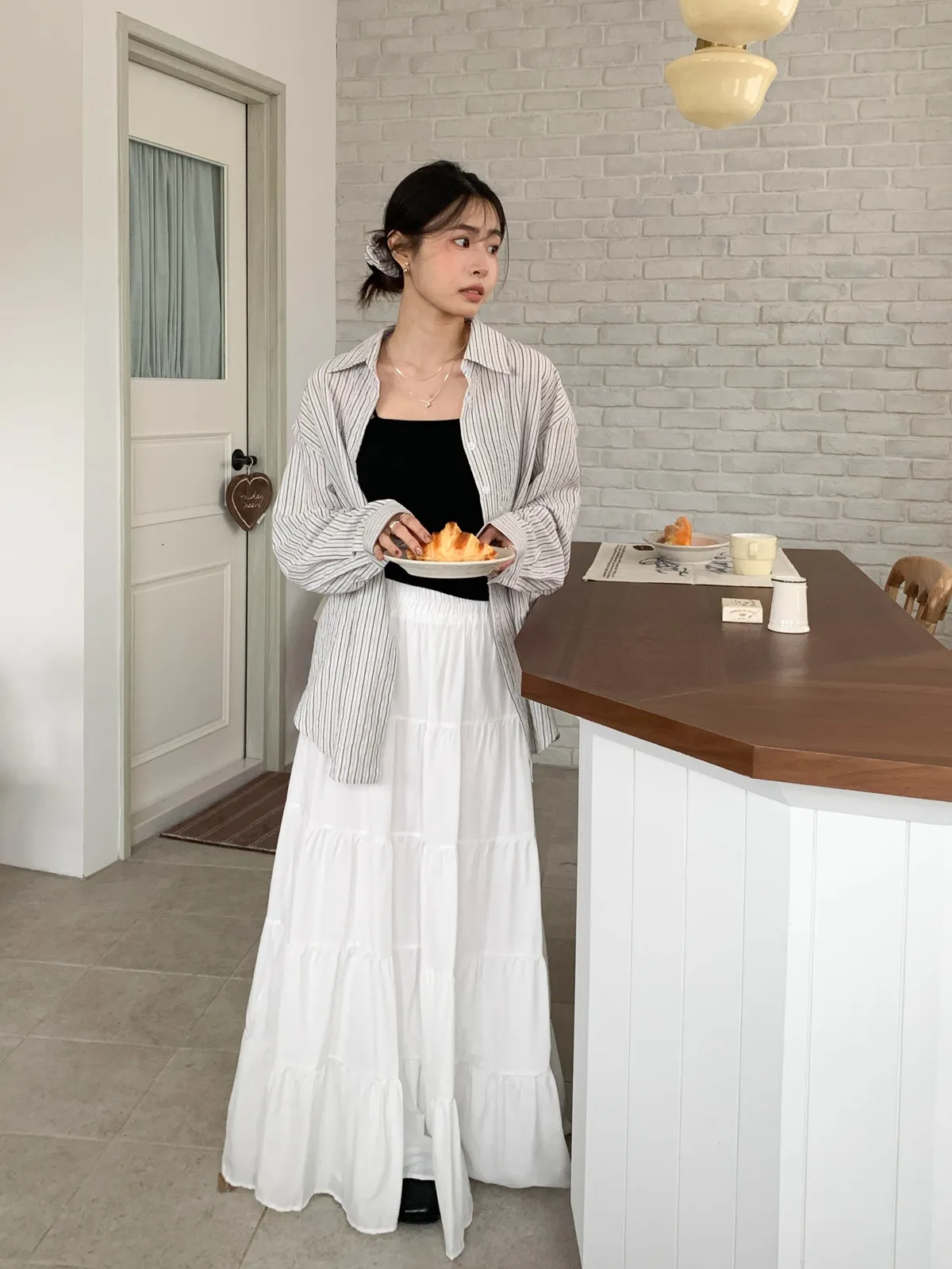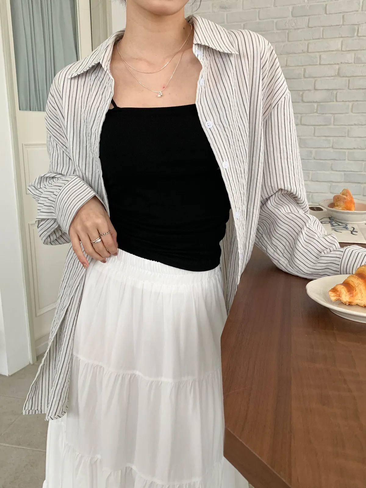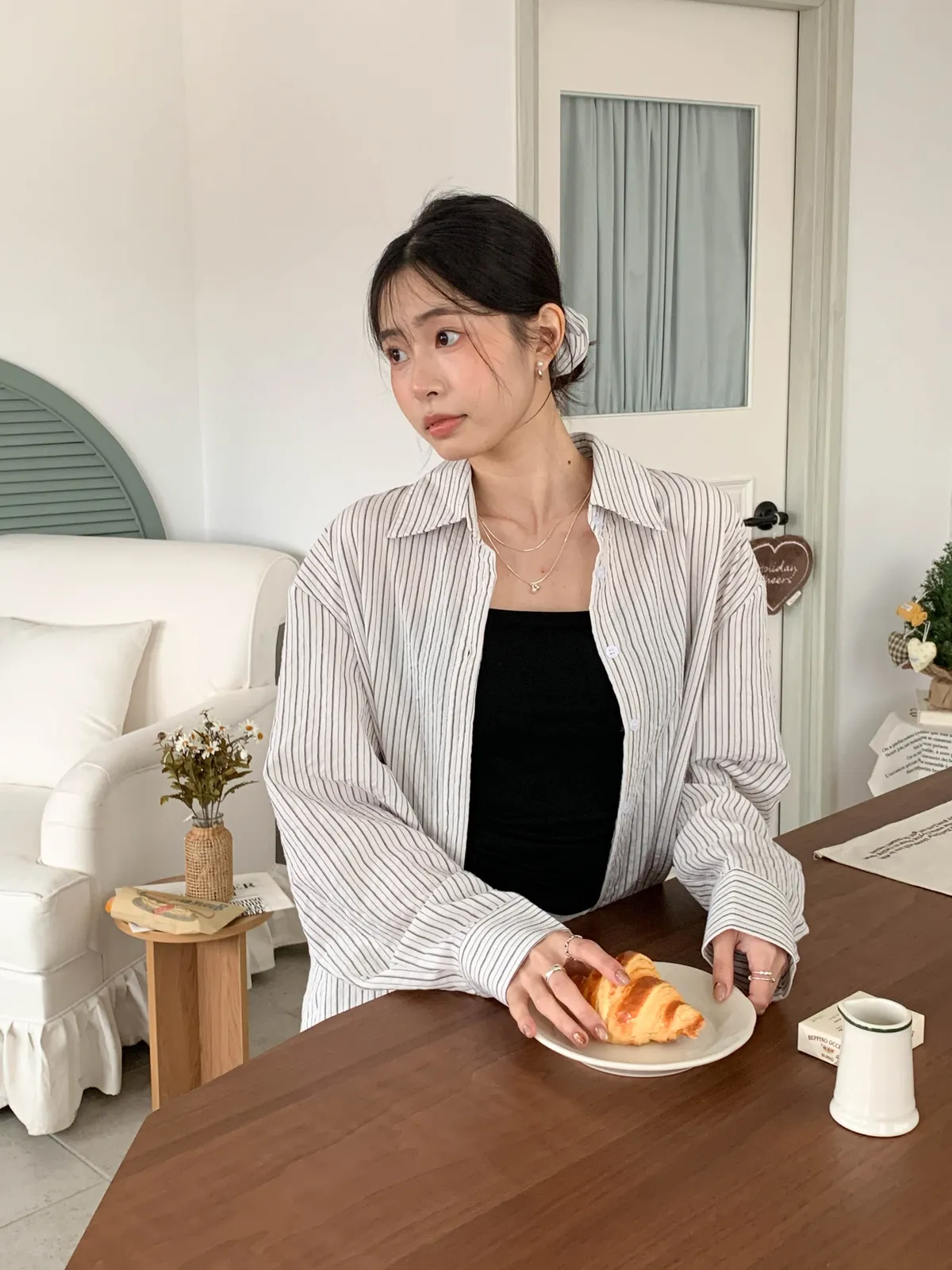 (穿起來舒適版型微寬鬆,透肌感條紋增加時尚感,日常穿搭或約會都適合)