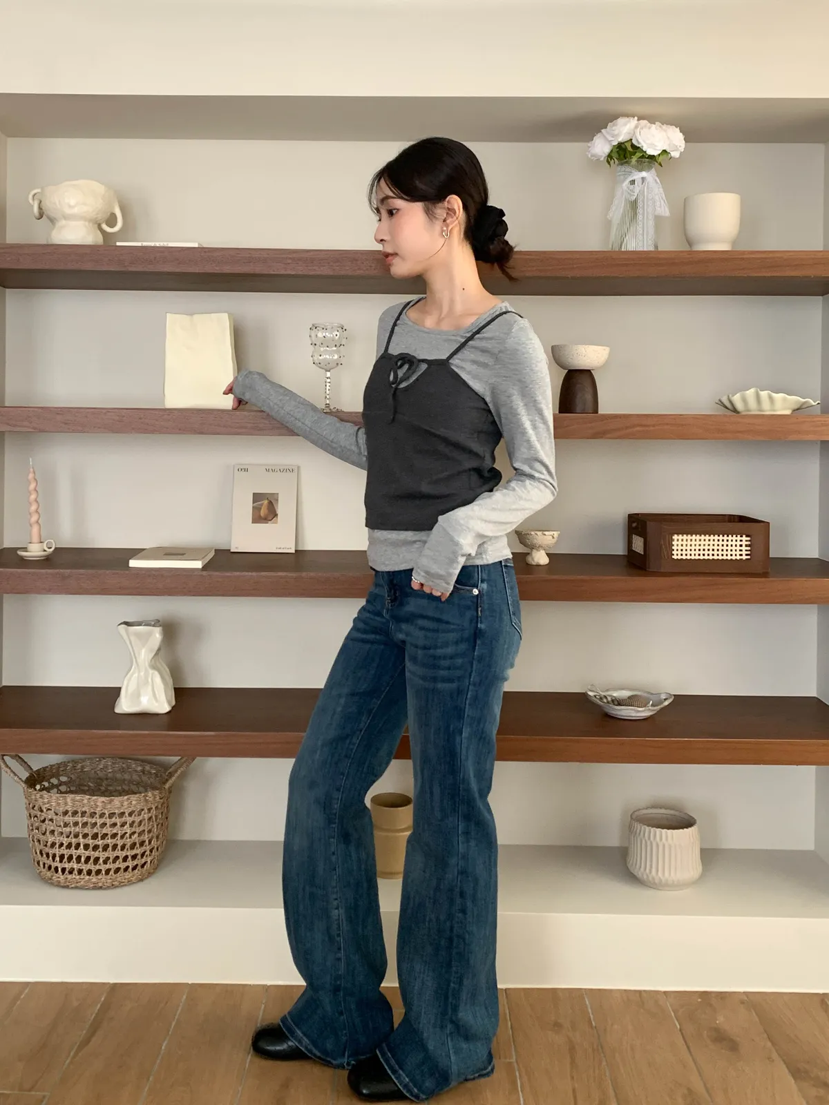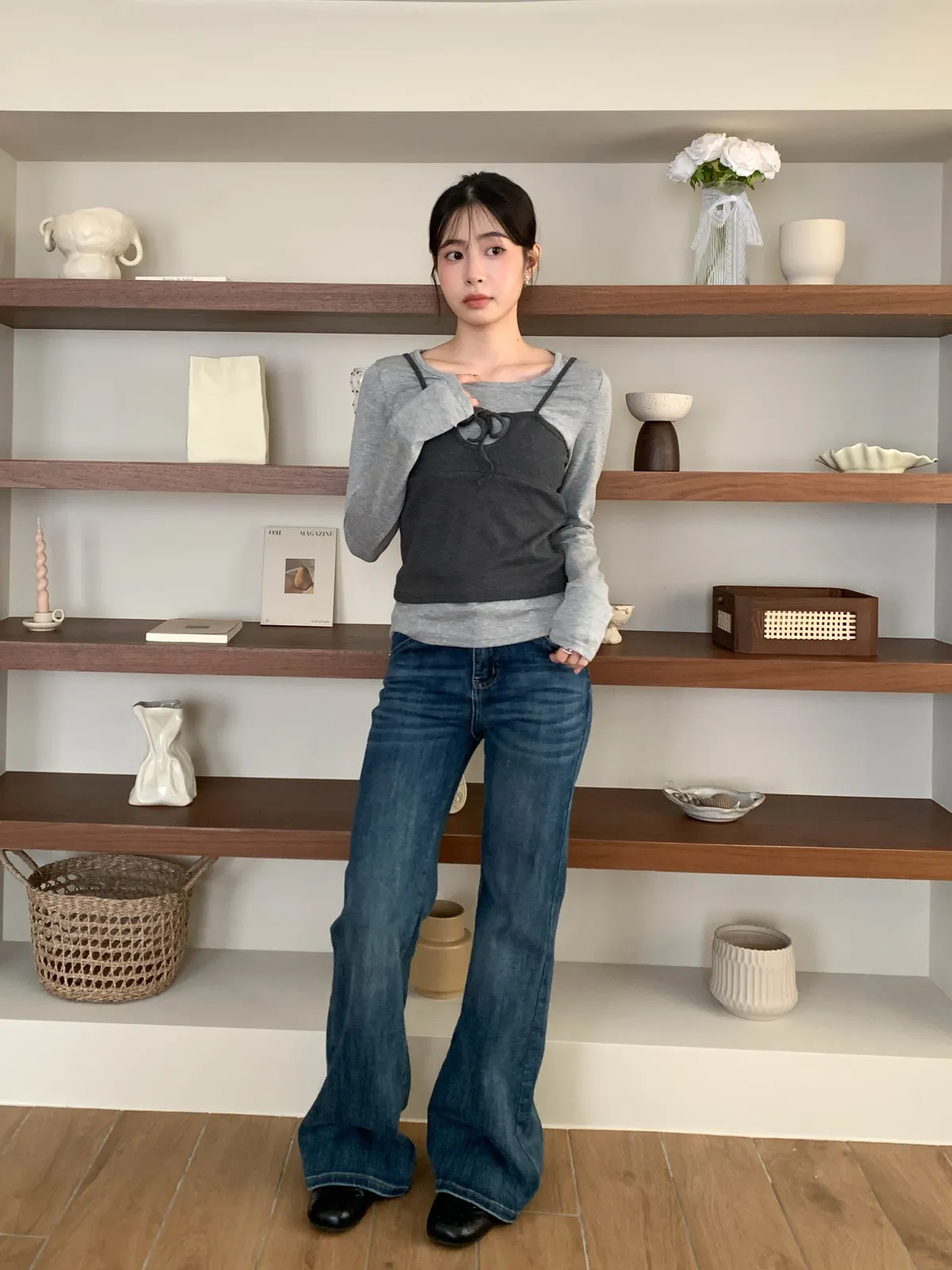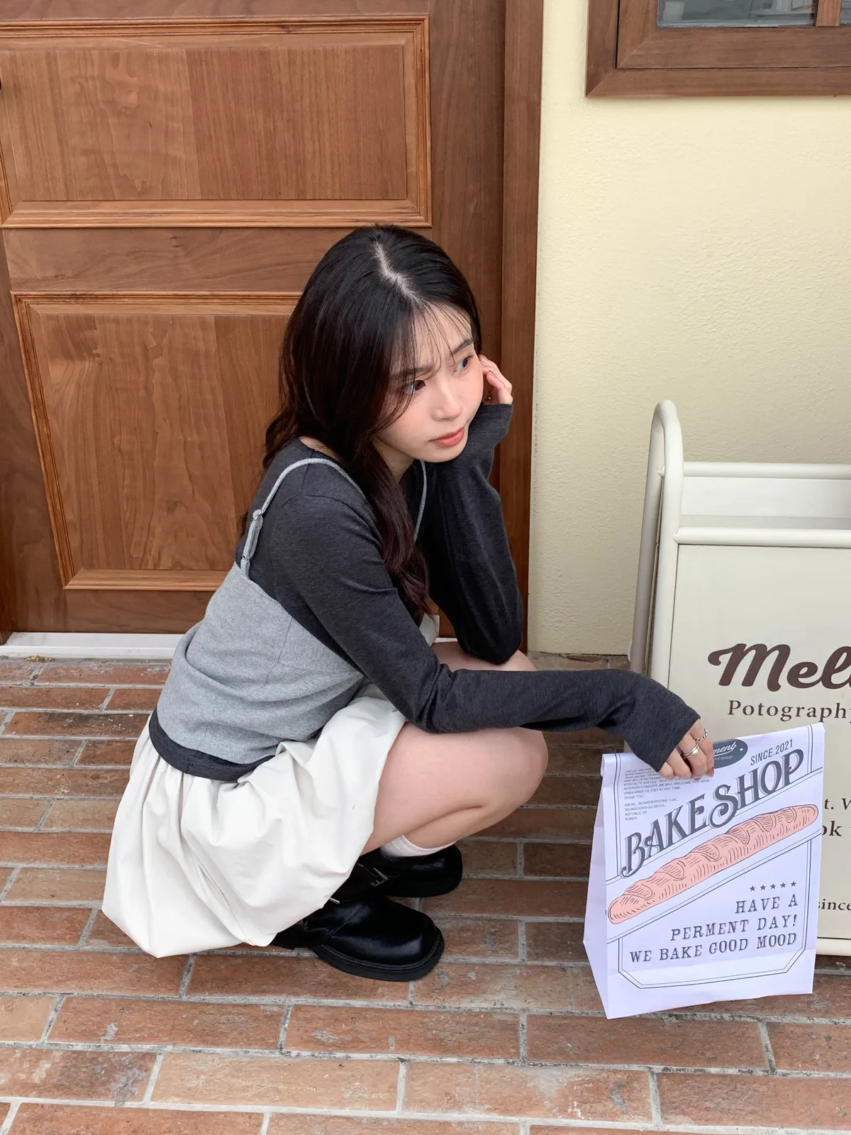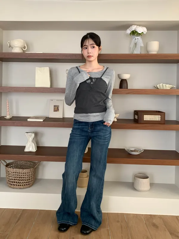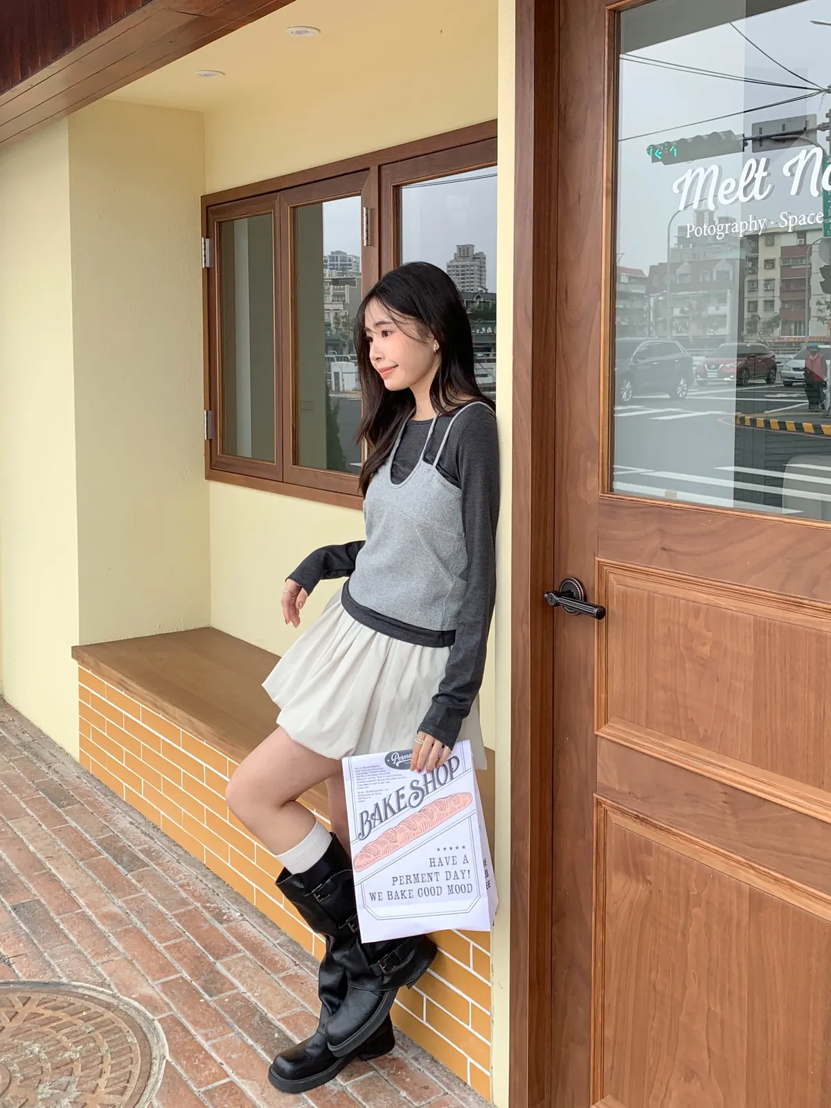 (內搭上衣版型剛好,吊帶背心搭配起來很有層次感,短版設計讓比例看起來更好!)