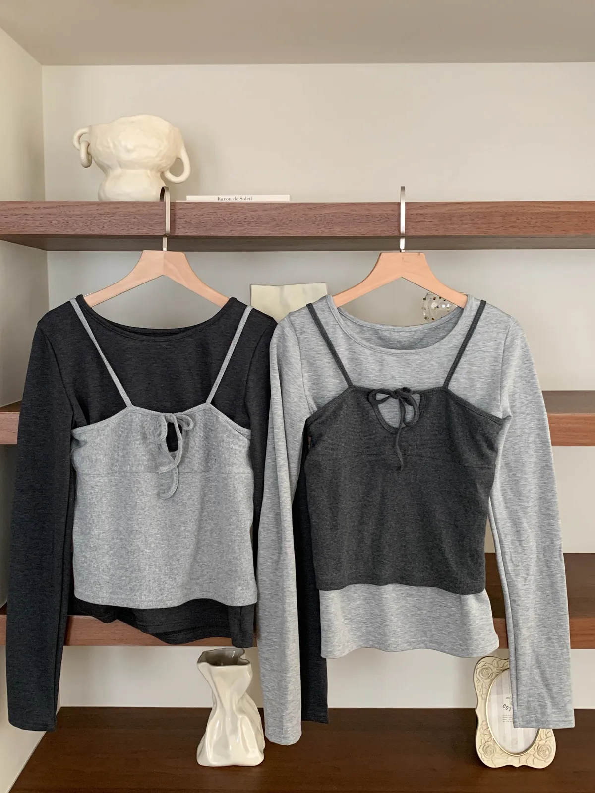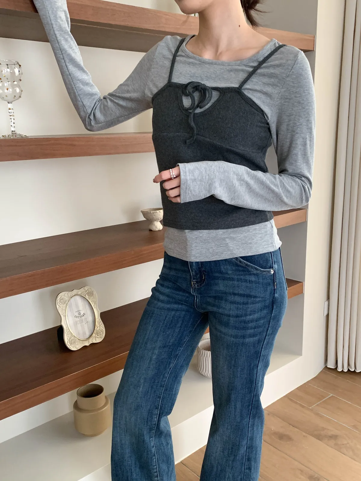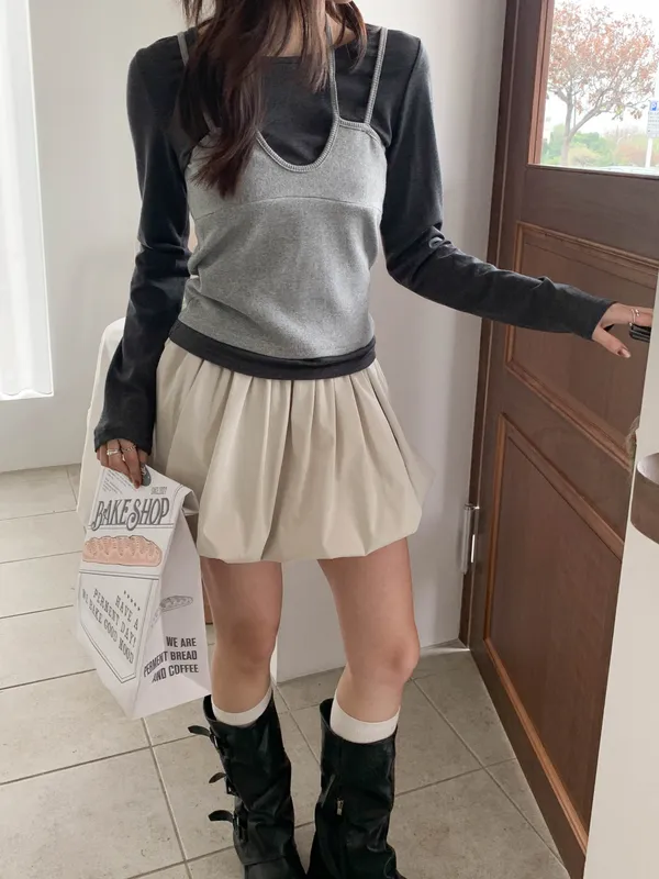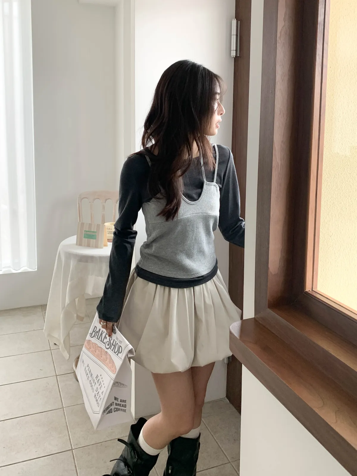 (上衣有彈性搭配吊帶背心讓整體穿搭更有層次感,分開搭配也很好看!)