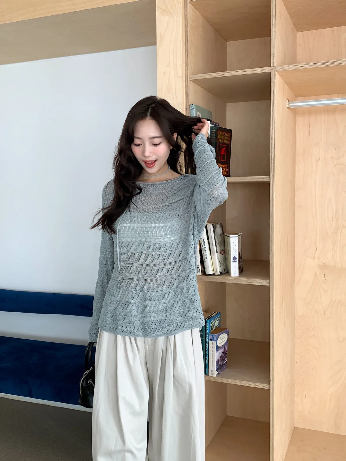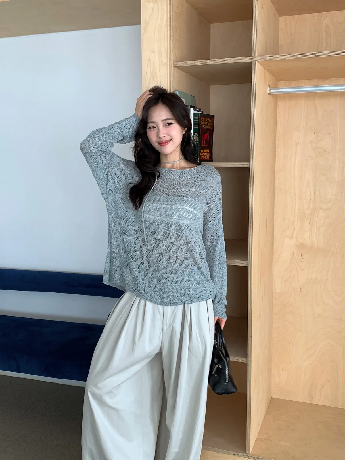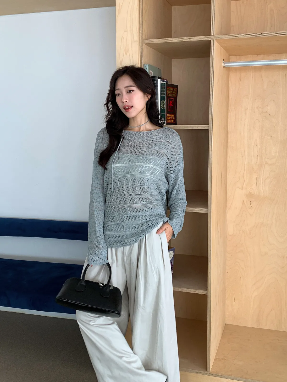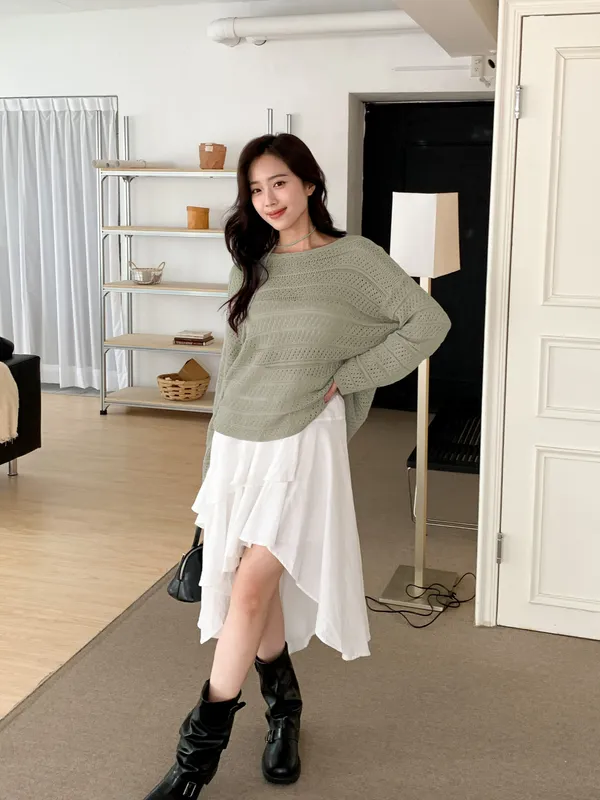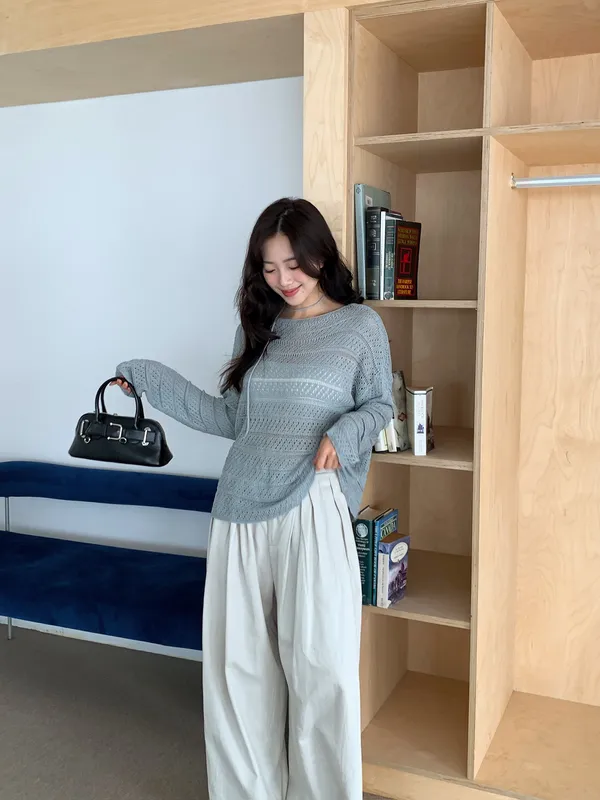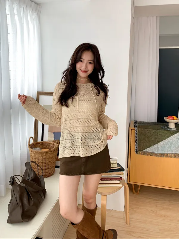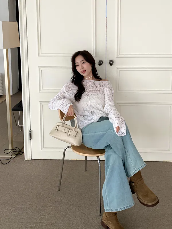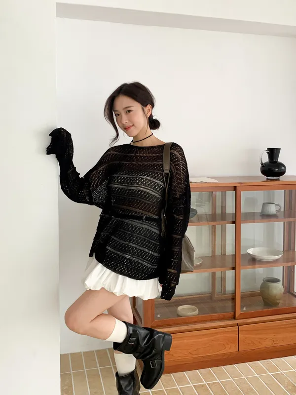 洞洞繞脖針織衫