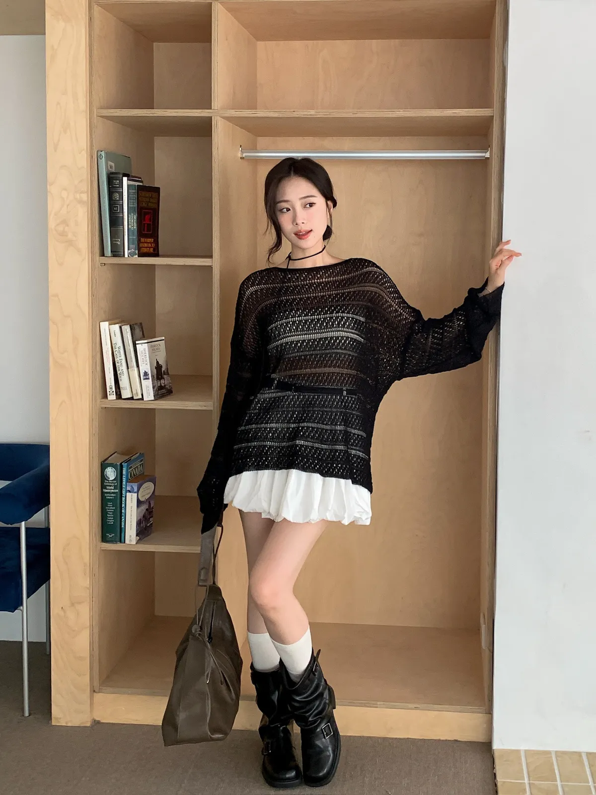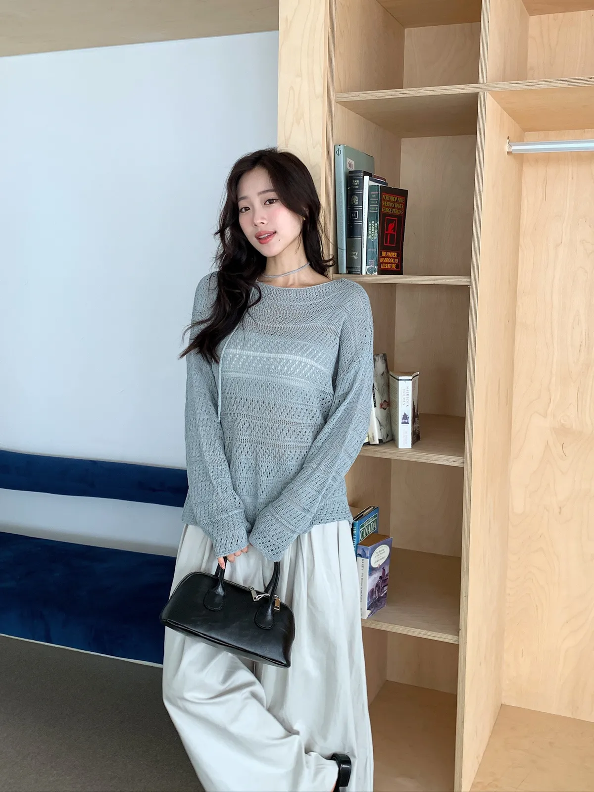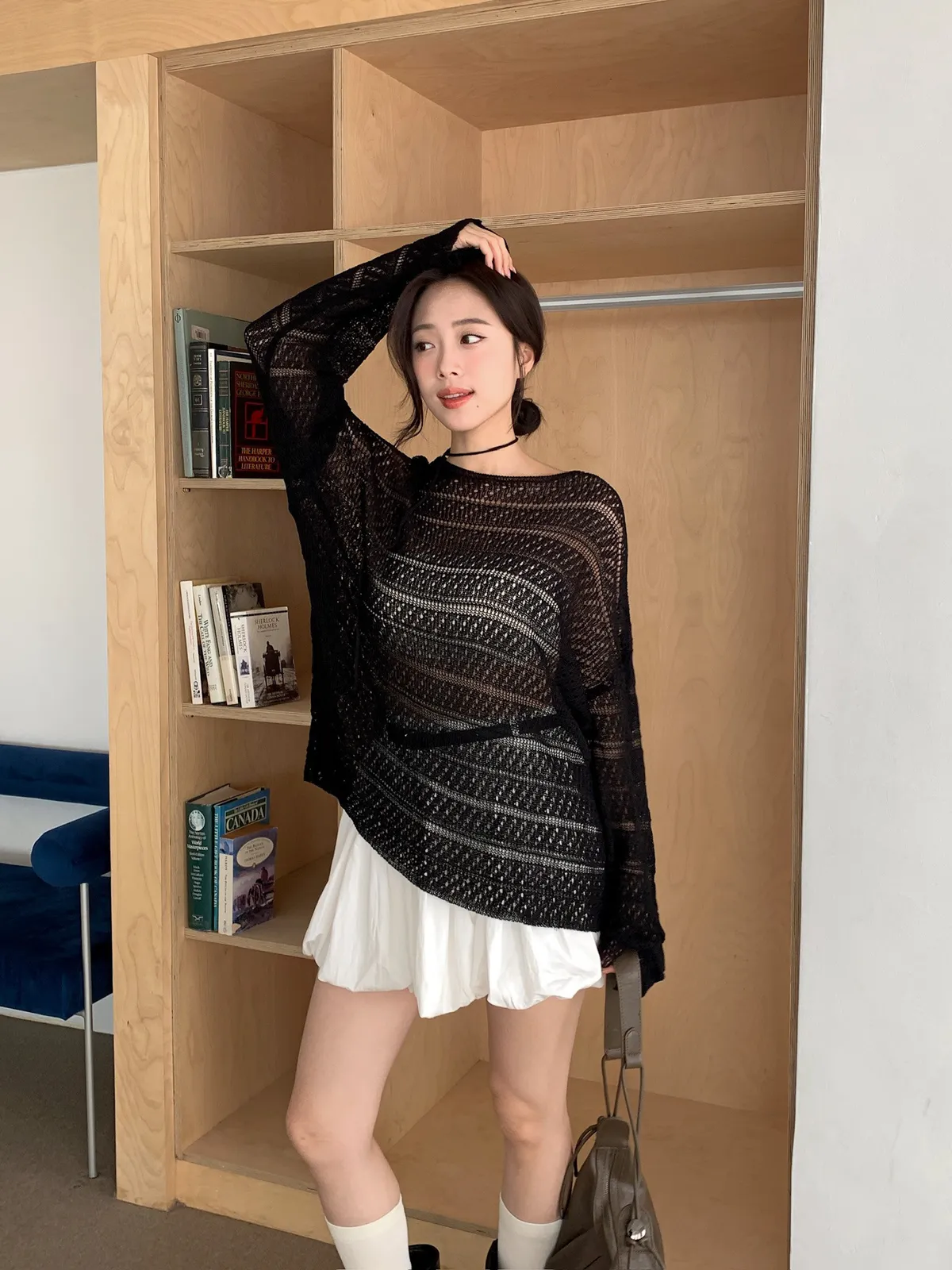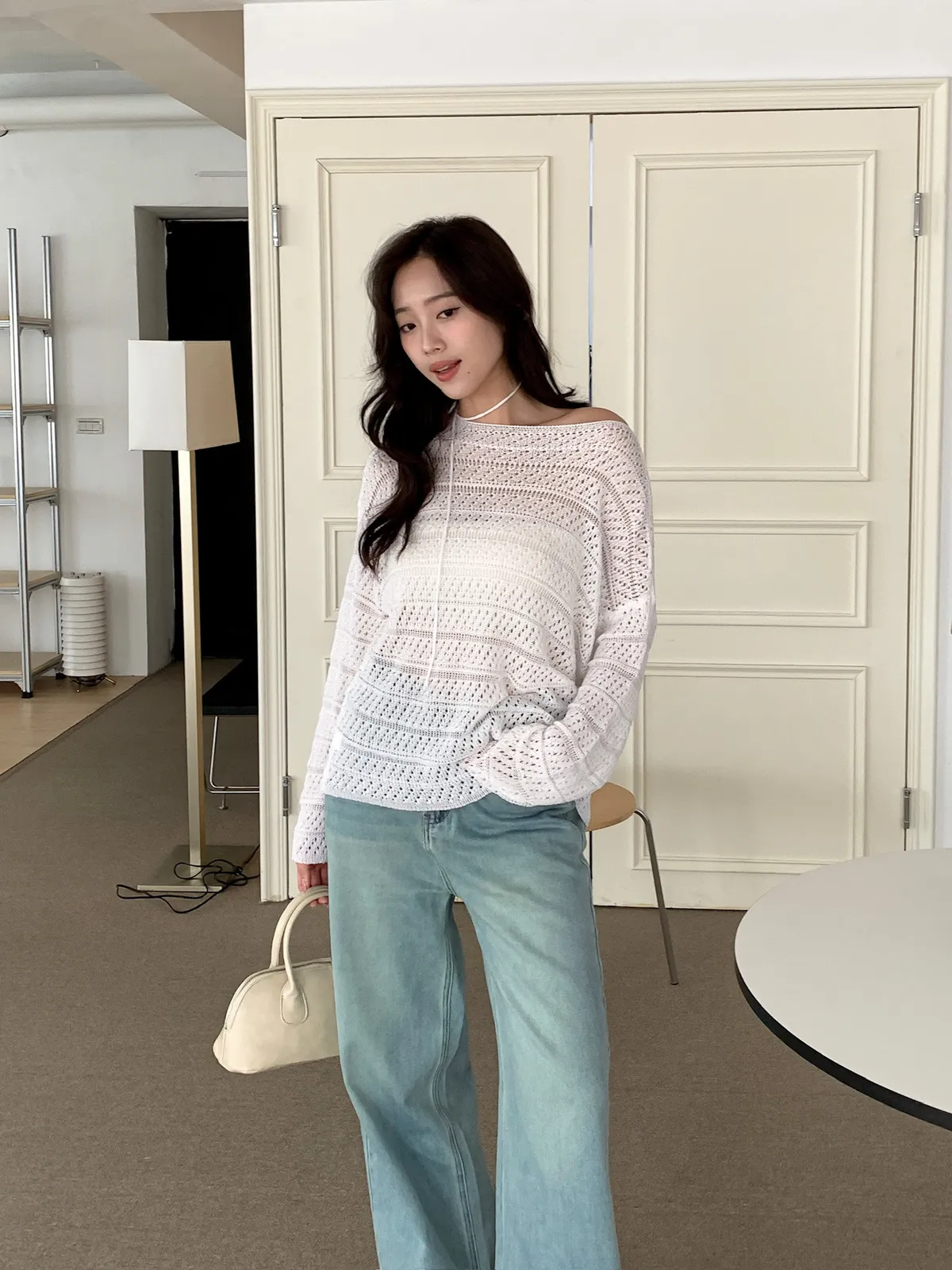 洞洞繞脖針織衫