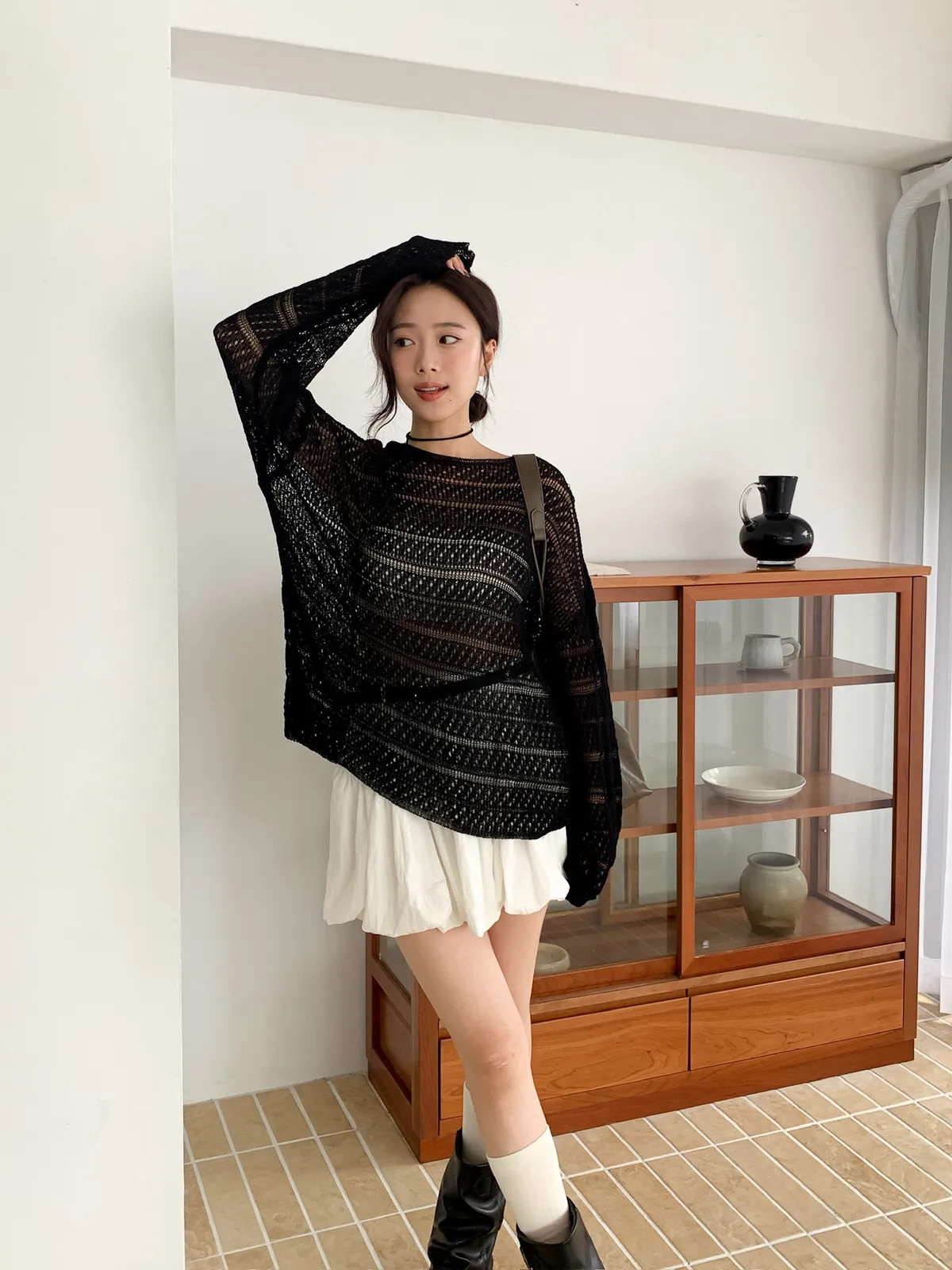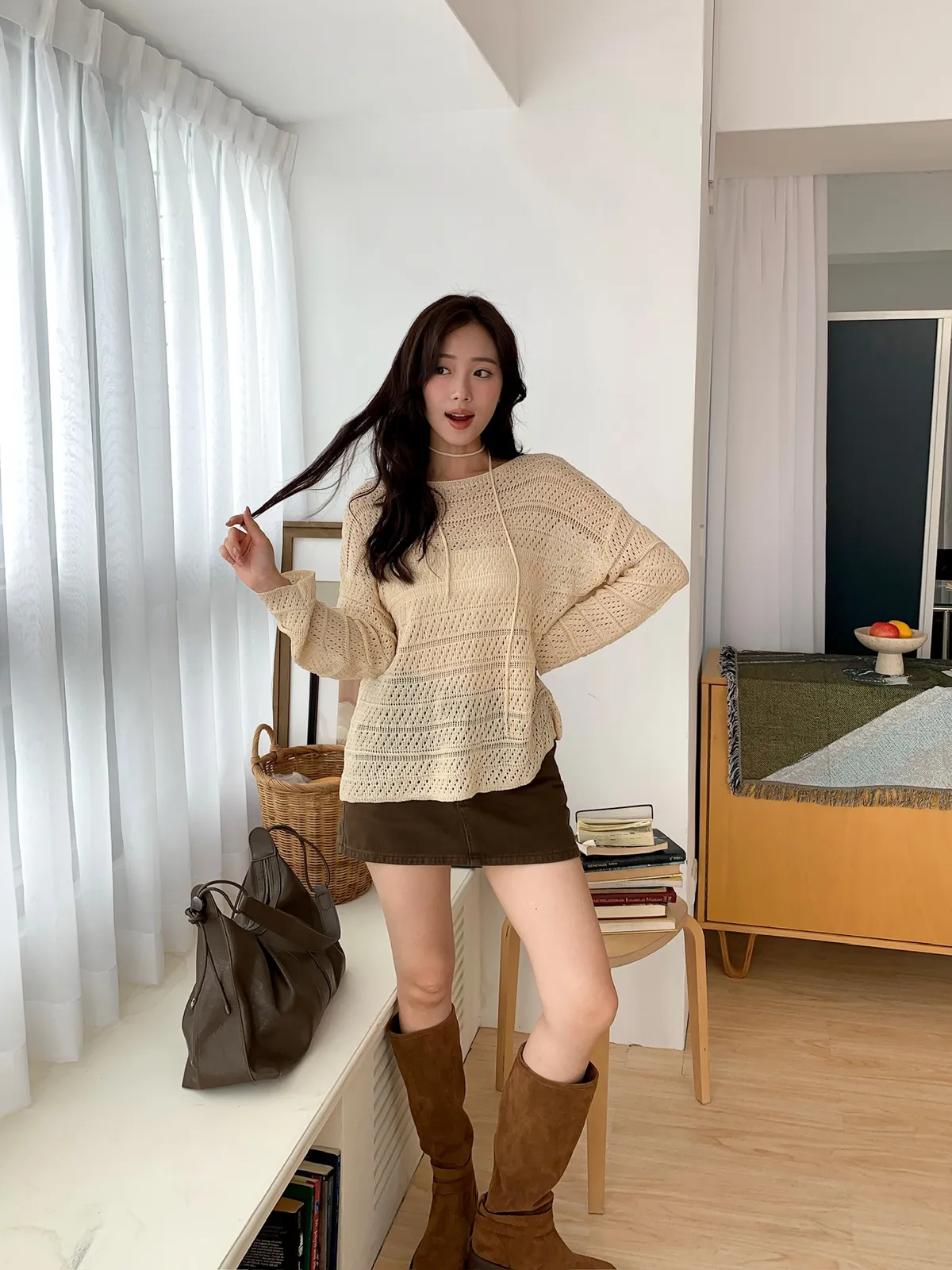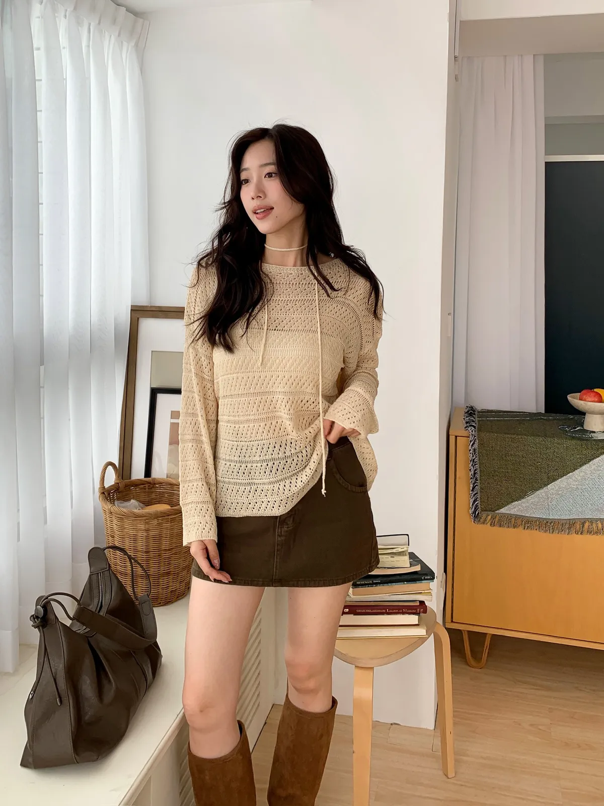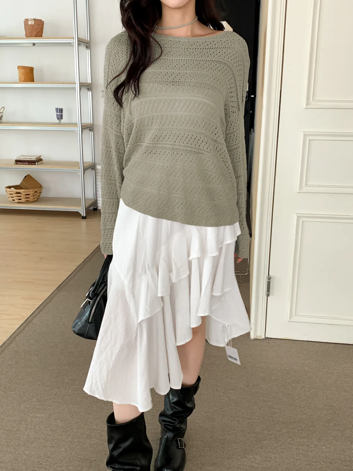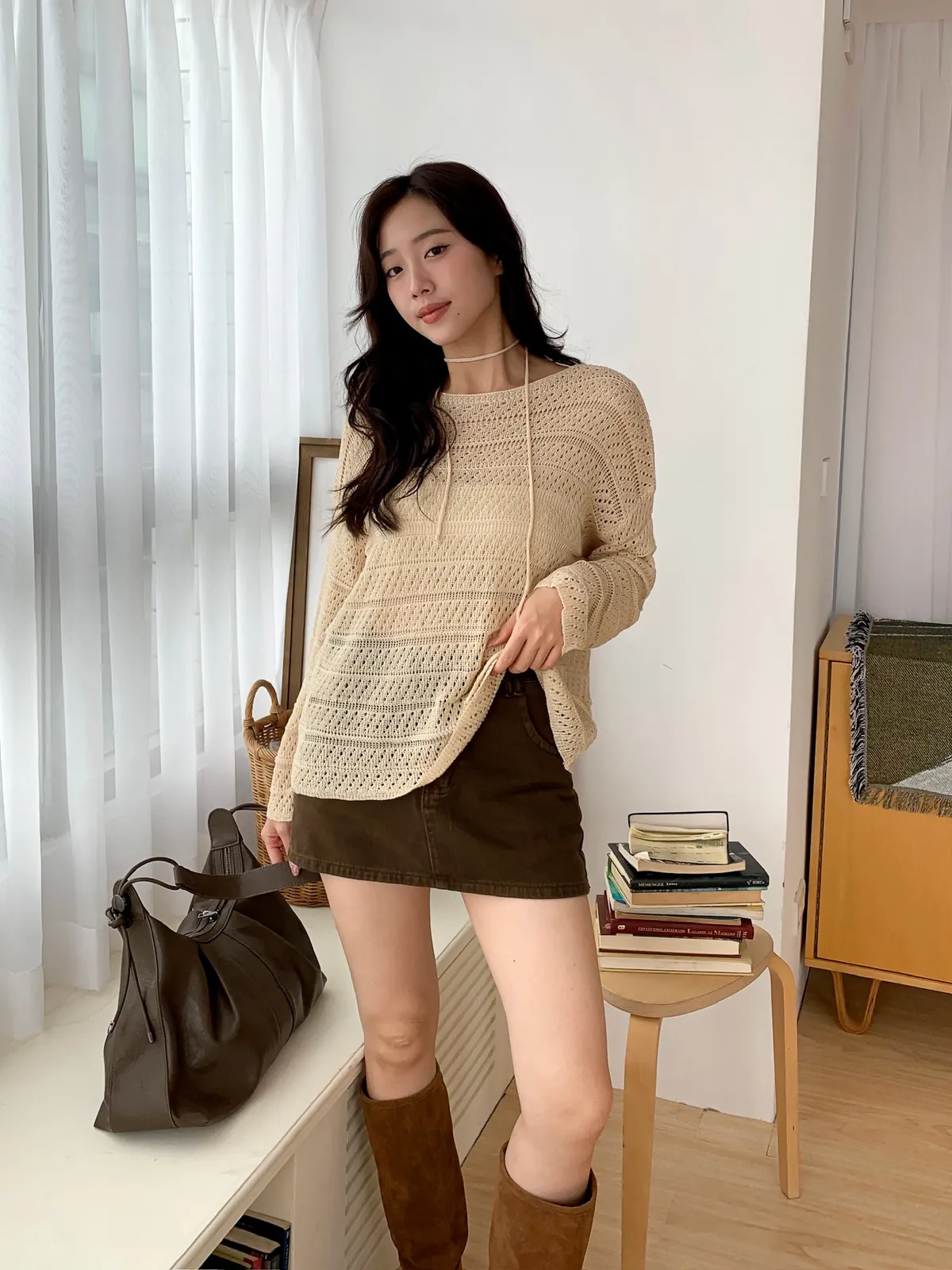 洞洞繞脖針織衫