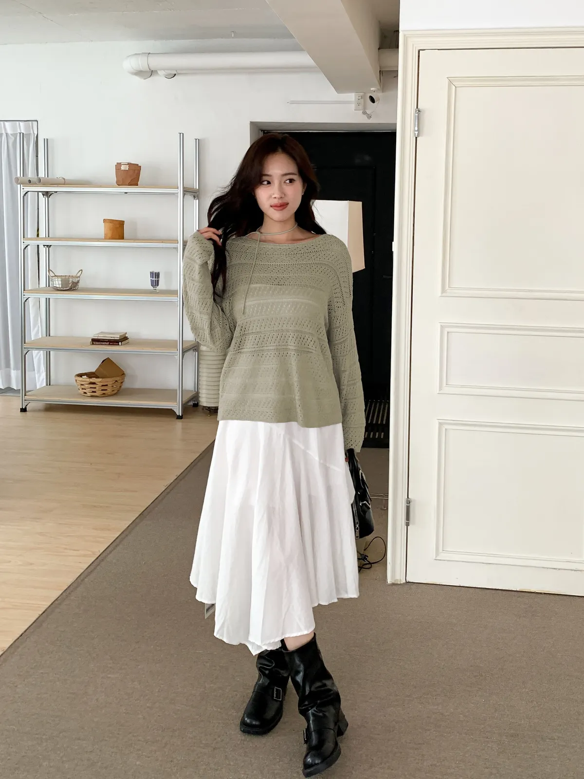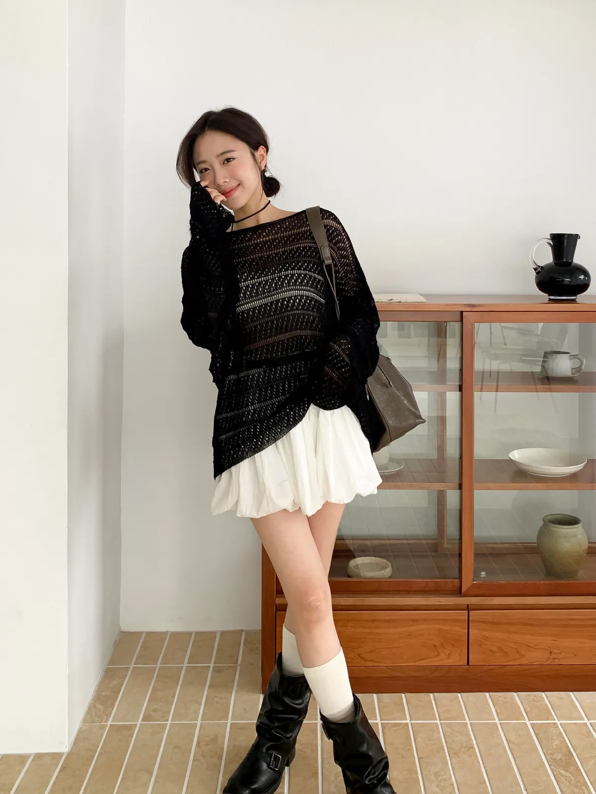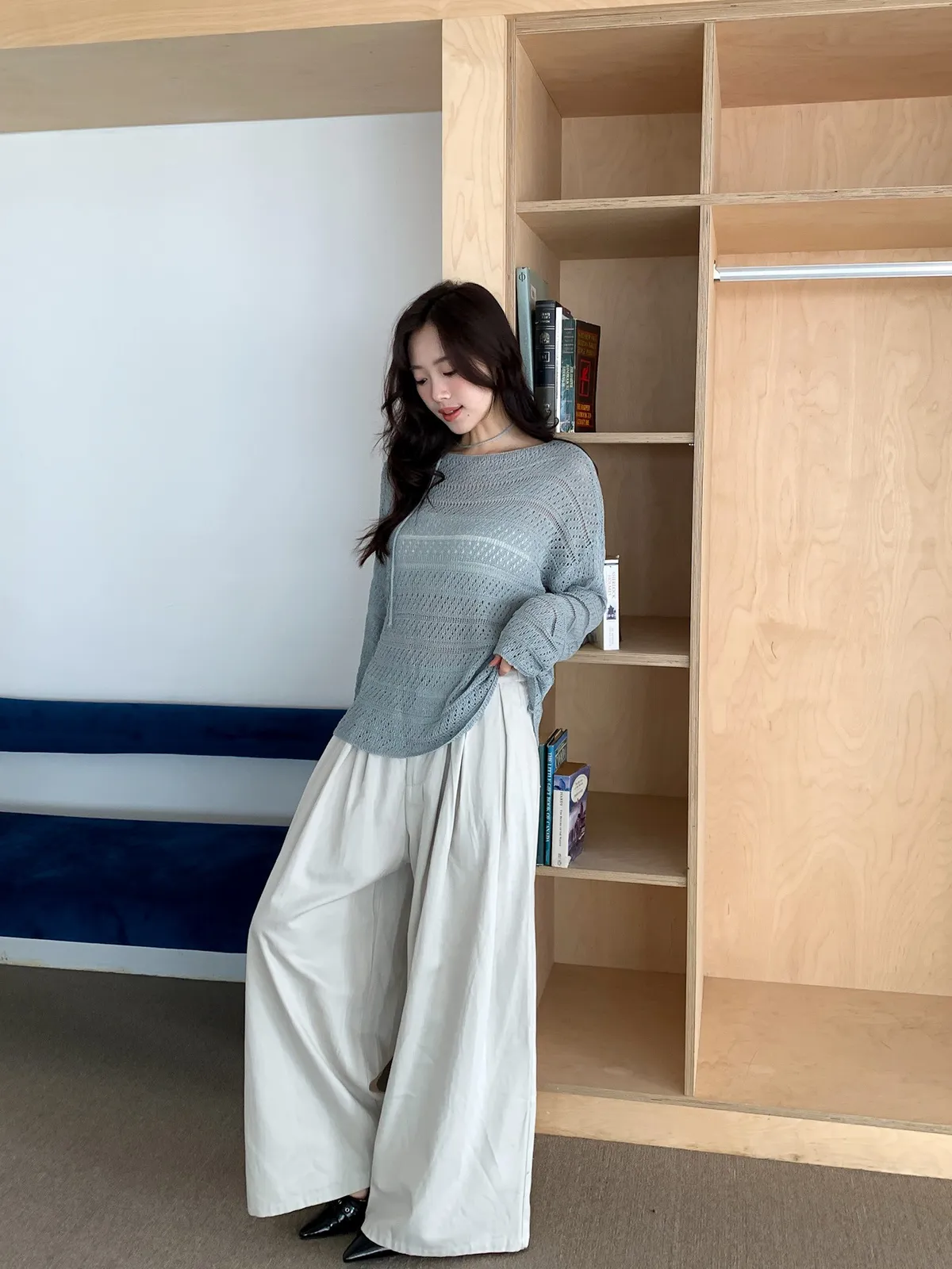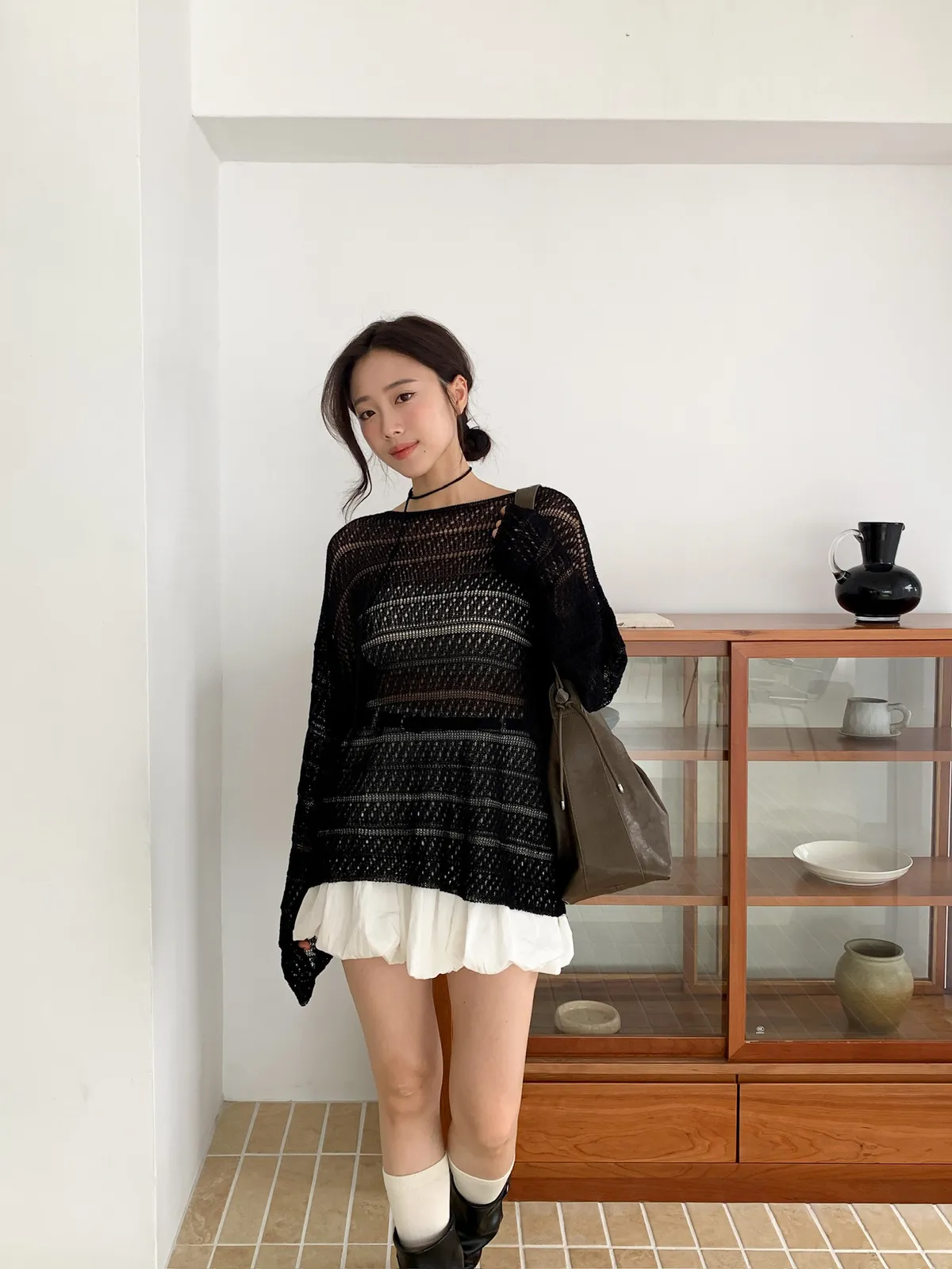 洞洞繞脖針織衫