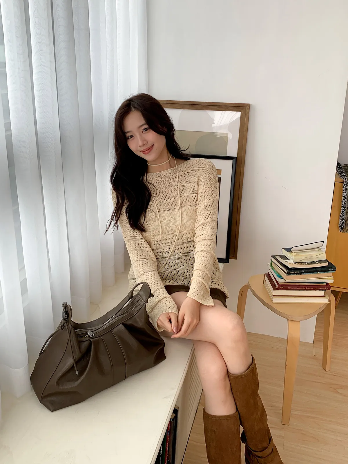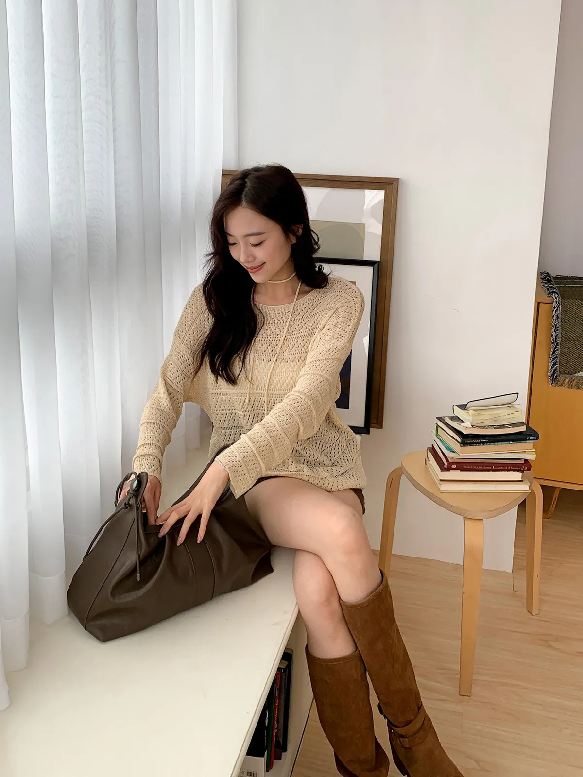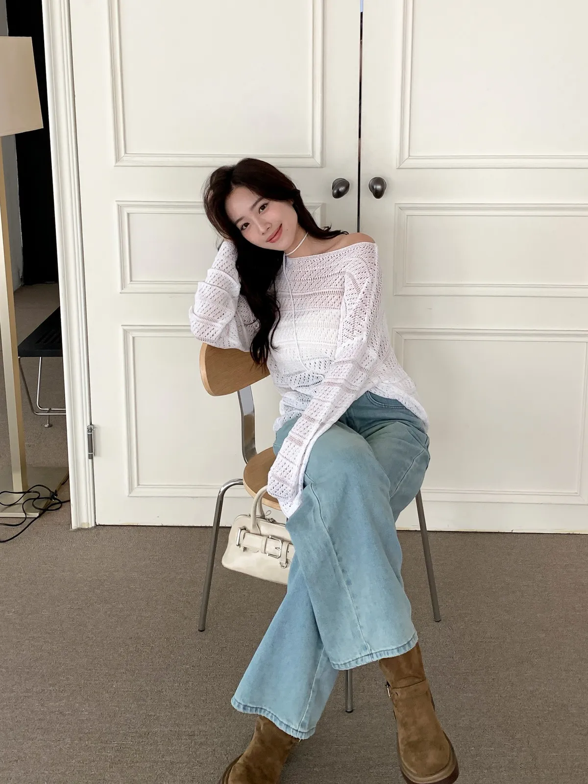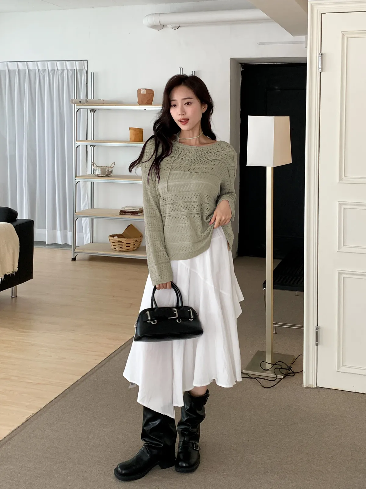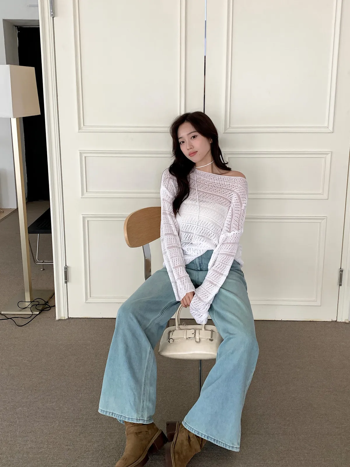洞洞繞脖針織衫