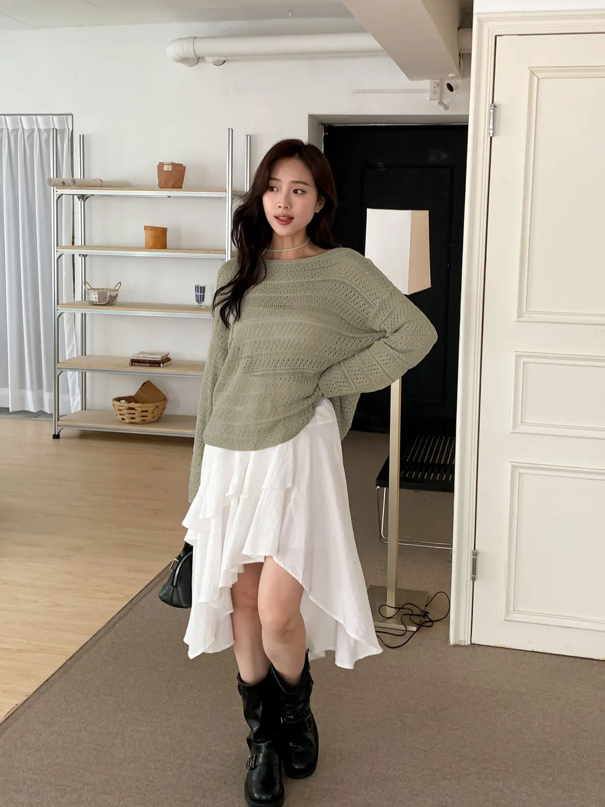 帶點垂墜度提升慵懶感 附綁帶繞脖或綁腰都是不一樣的風格