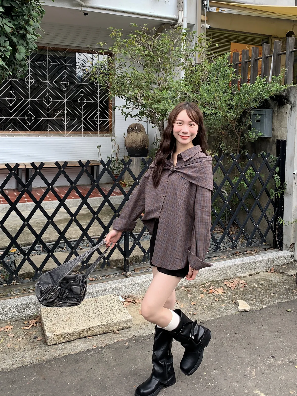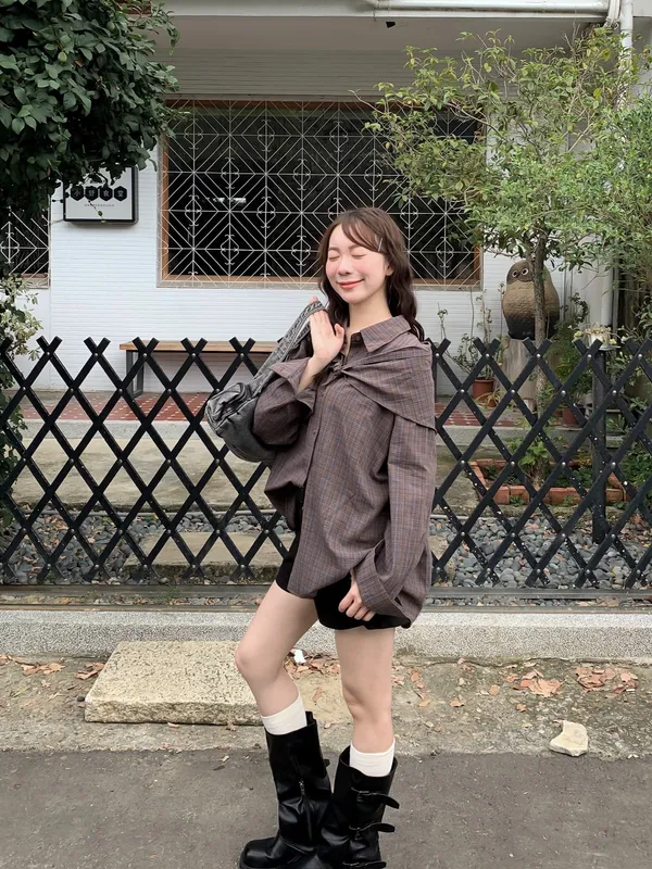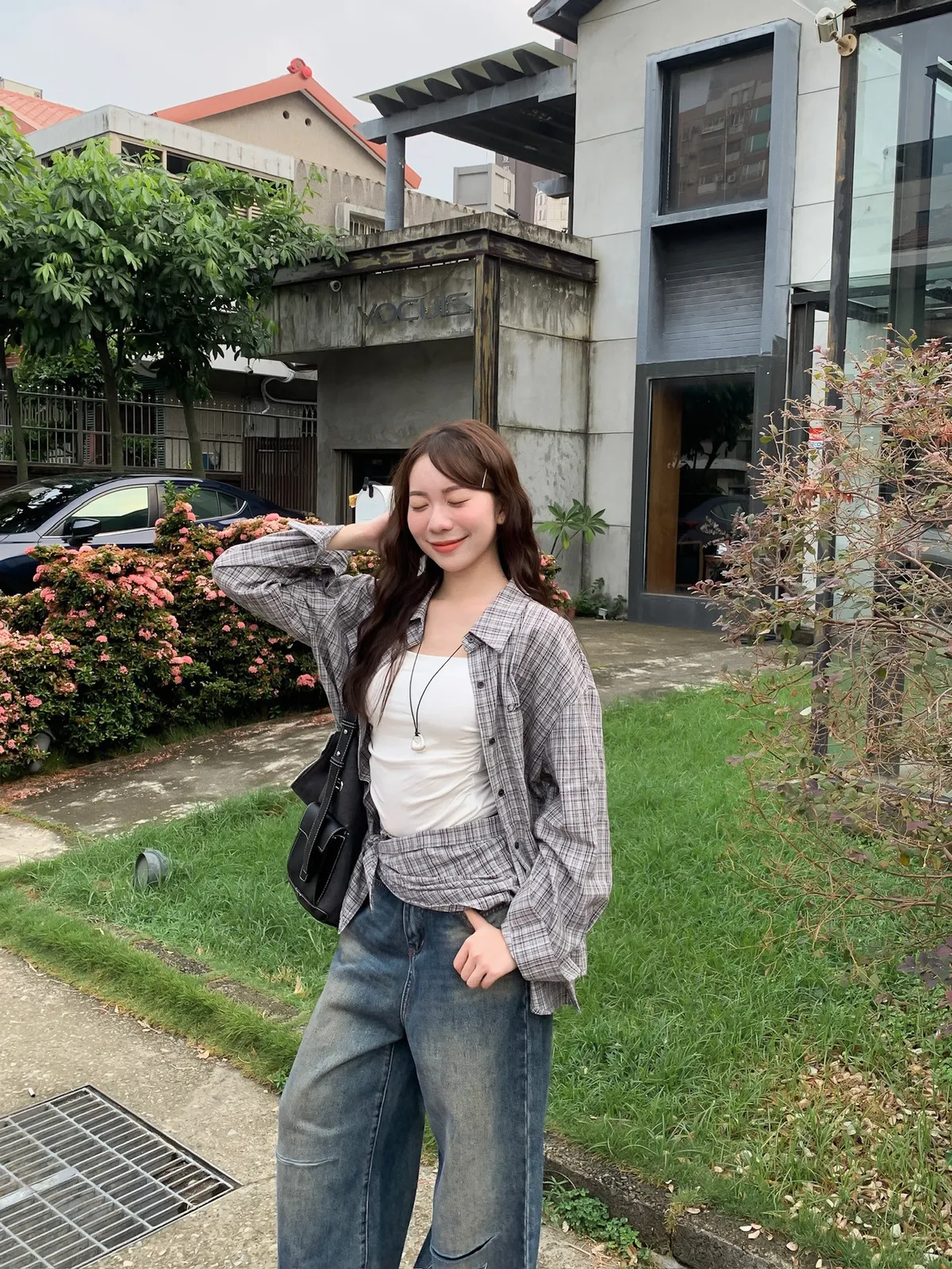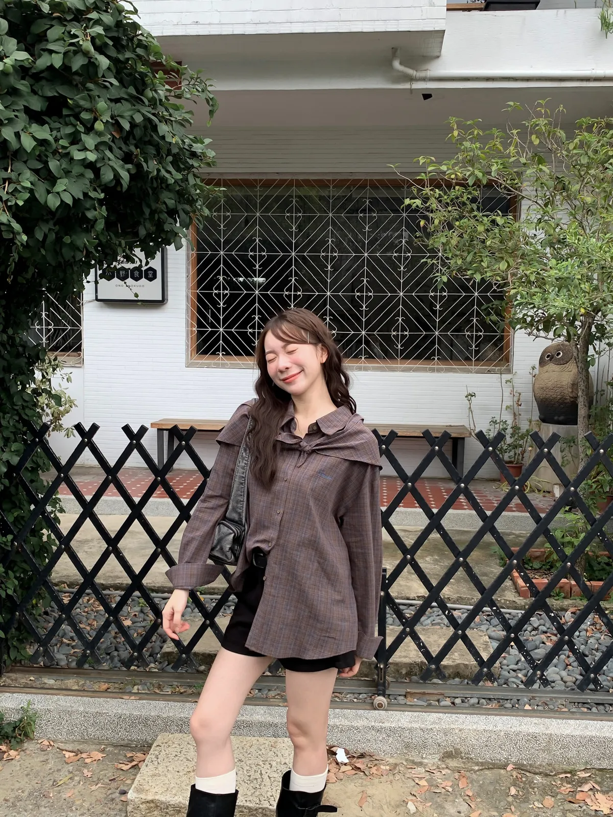 小格紋設計寬鬆版型 搭配同款批肩兩件套