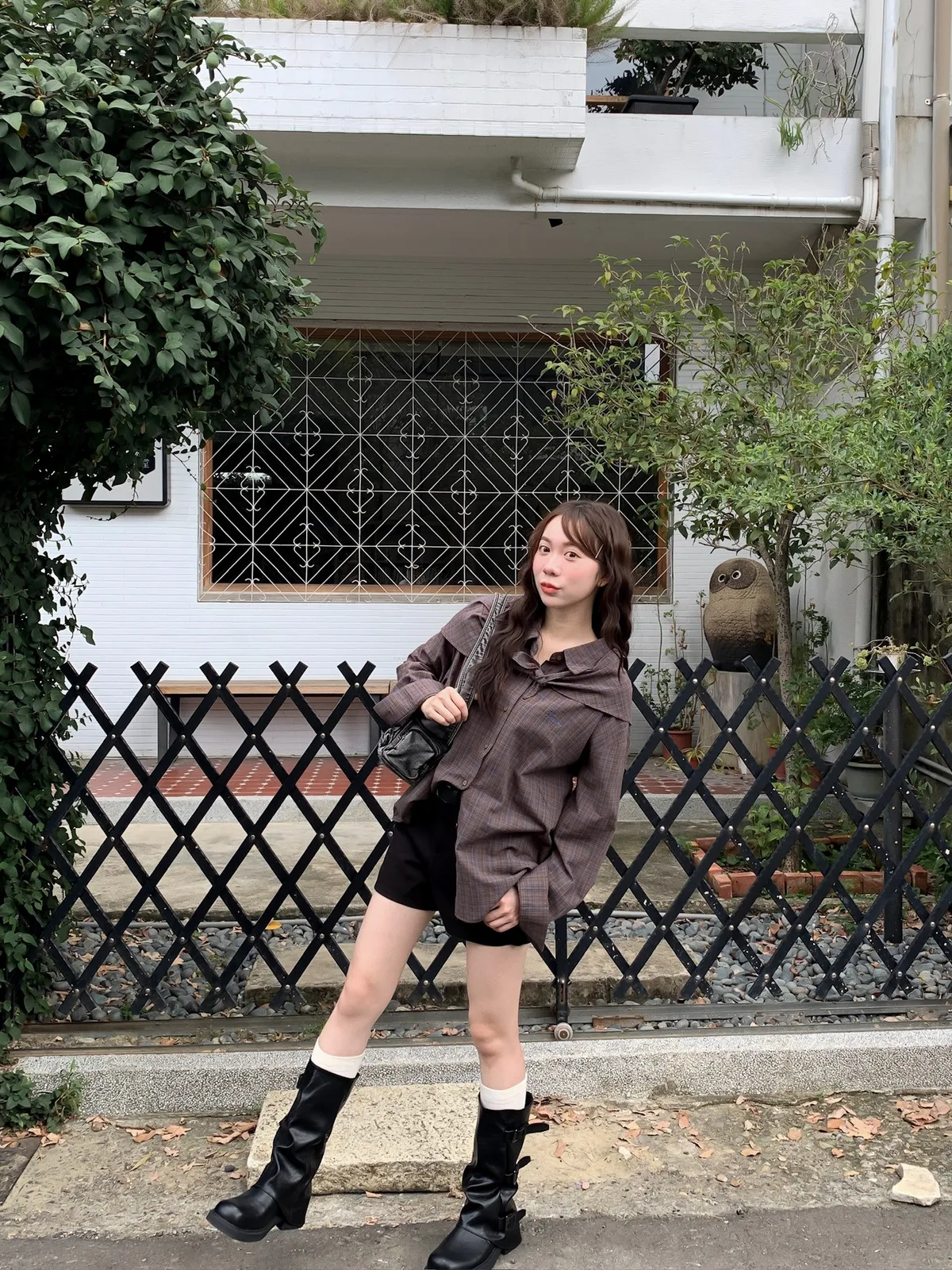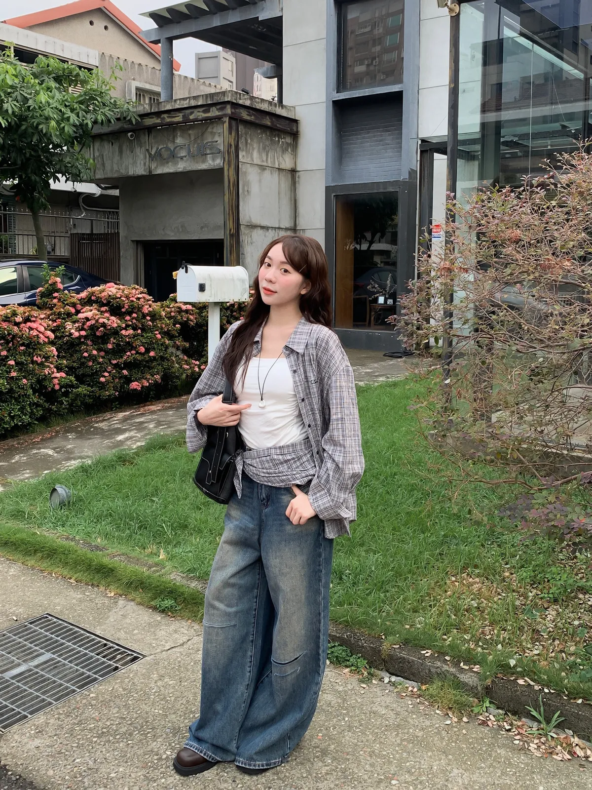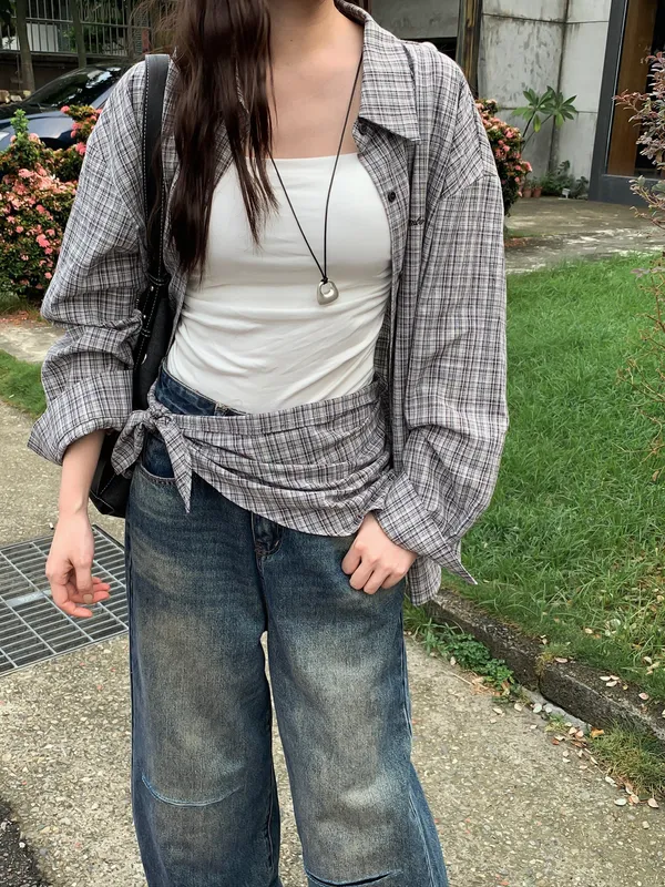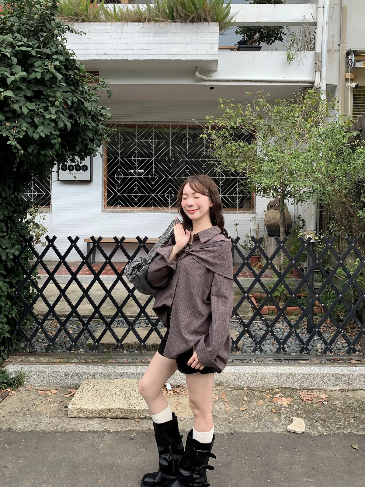 小格紋設計寬鬆版型 搭配同款批肩兩件套