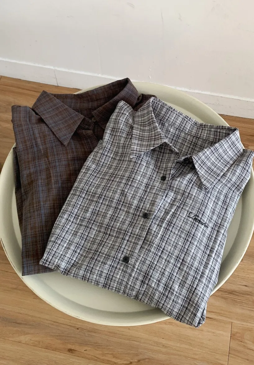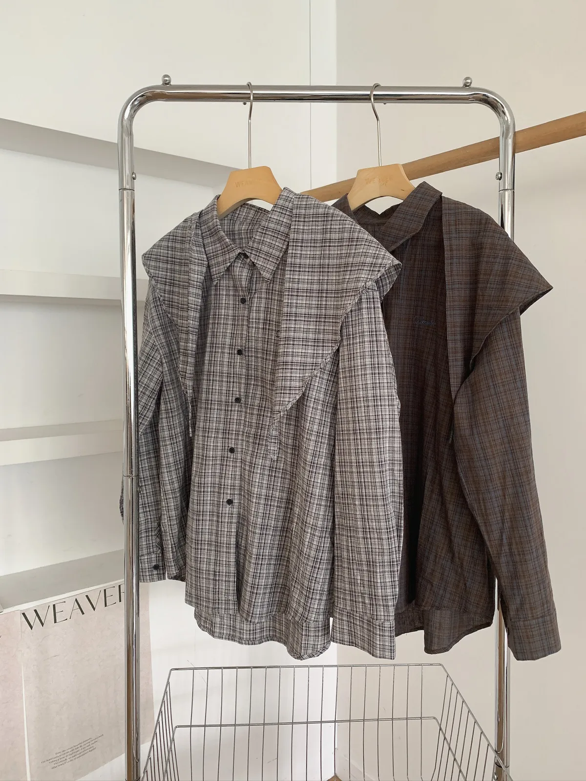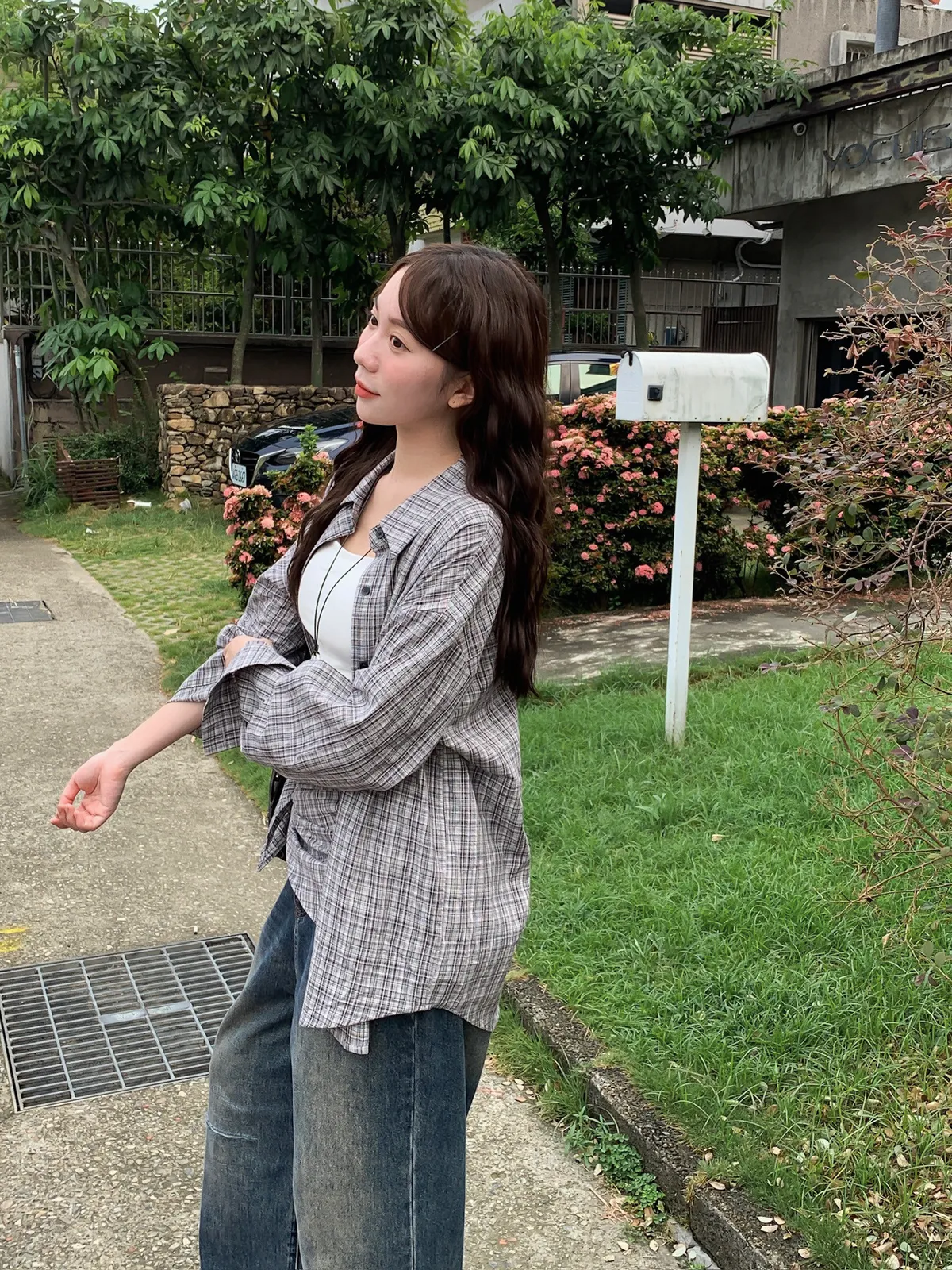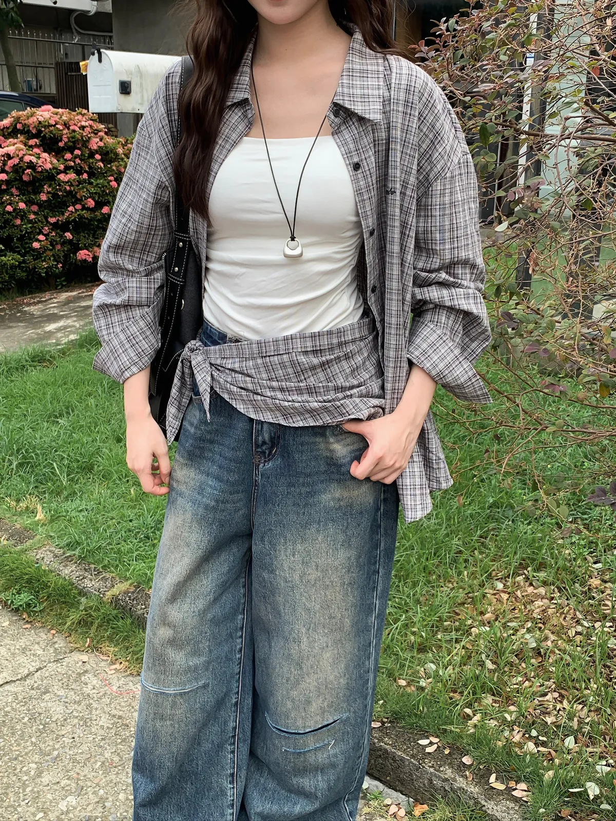 小格紋設計寬鬆版型 搭配同款批肩兩件套