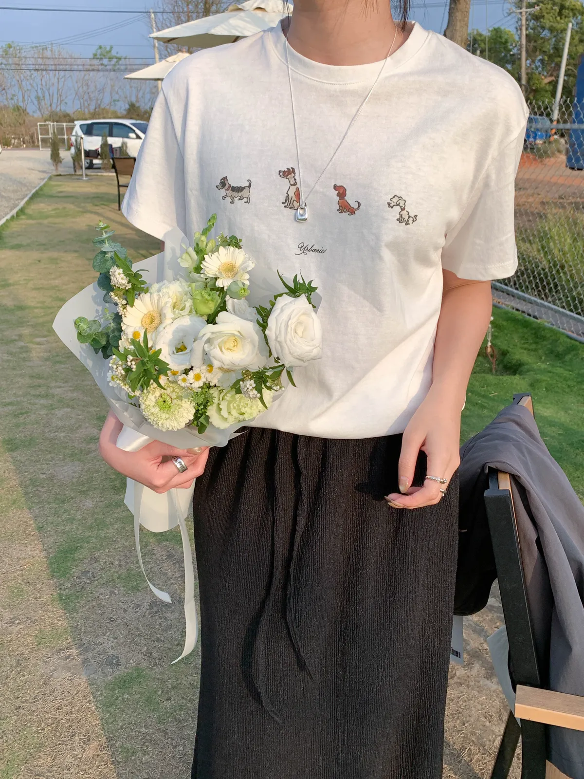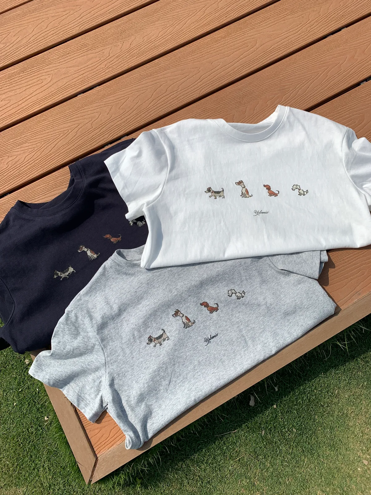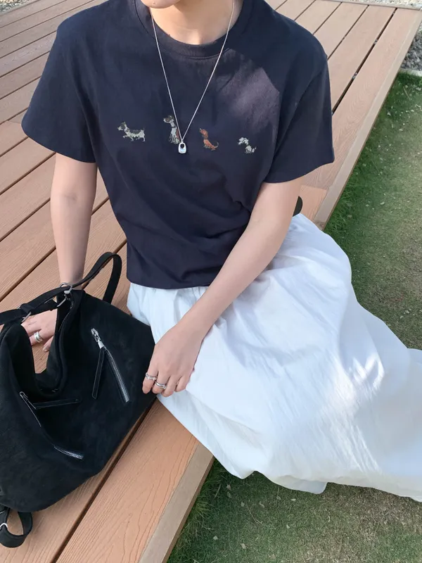 (你穿上這件排隊小狗狗Tee,搭配牛仔褲 有趣的小狗圖案讓路過的人都忍不住多看一眼)