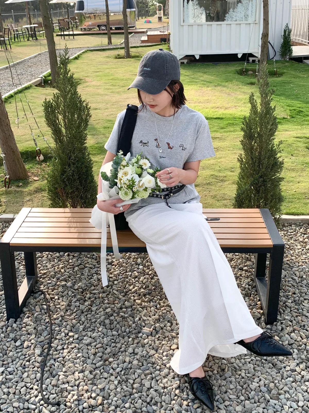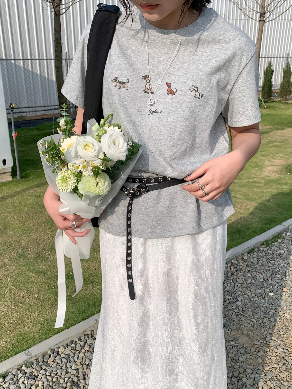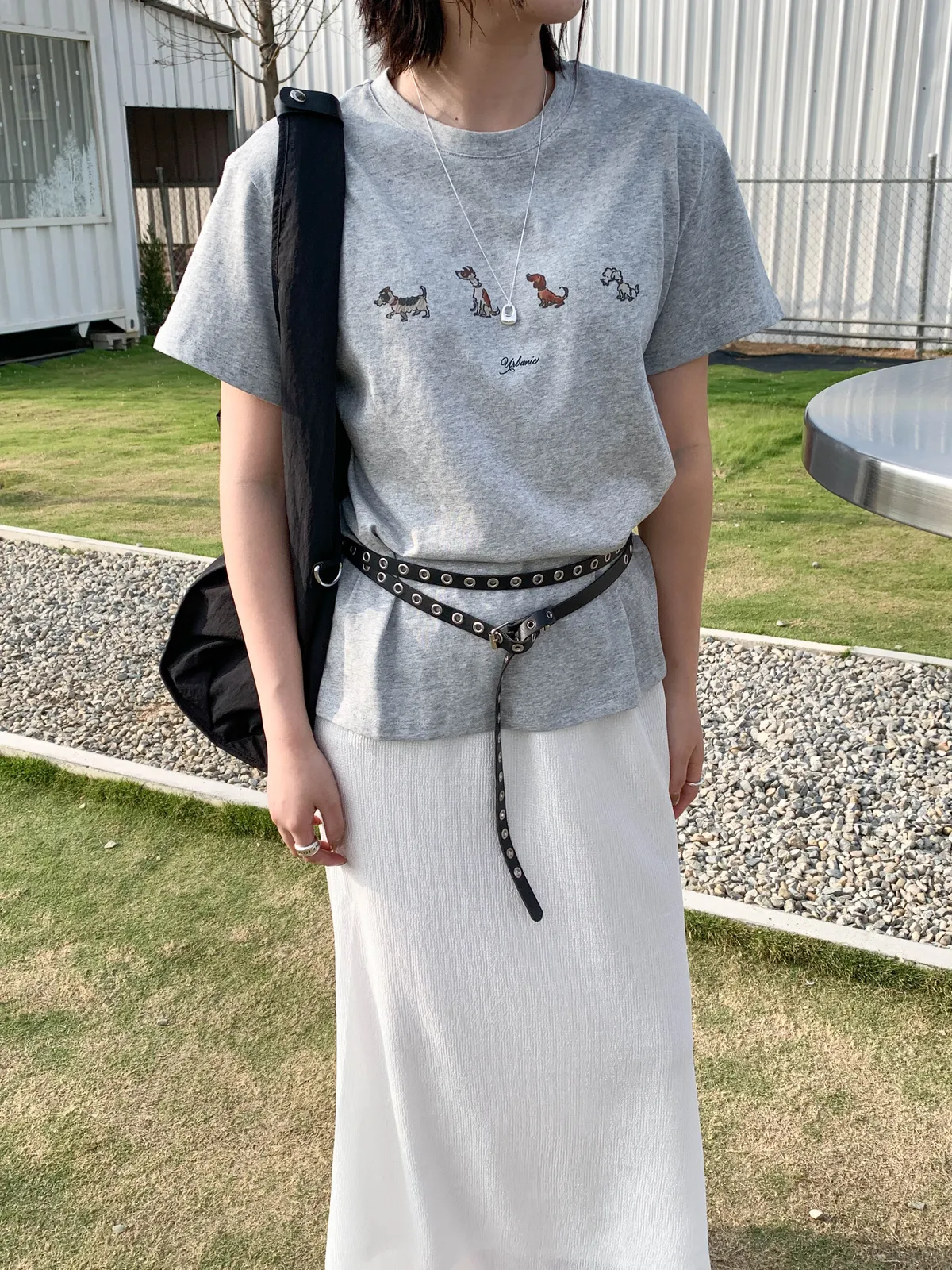 (你穿上這件排隊小狗狗Tee,搭配牛仔褲 有趣的小狗圖案讓路過的人都忍不住多看一眼)