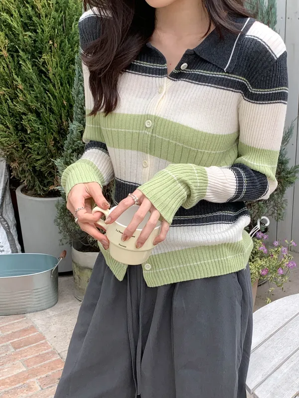(翻領設計增添文青感,針織材質柔軟,搭配裙子或牛仔褲都很適合,整體甜美又休閒~)