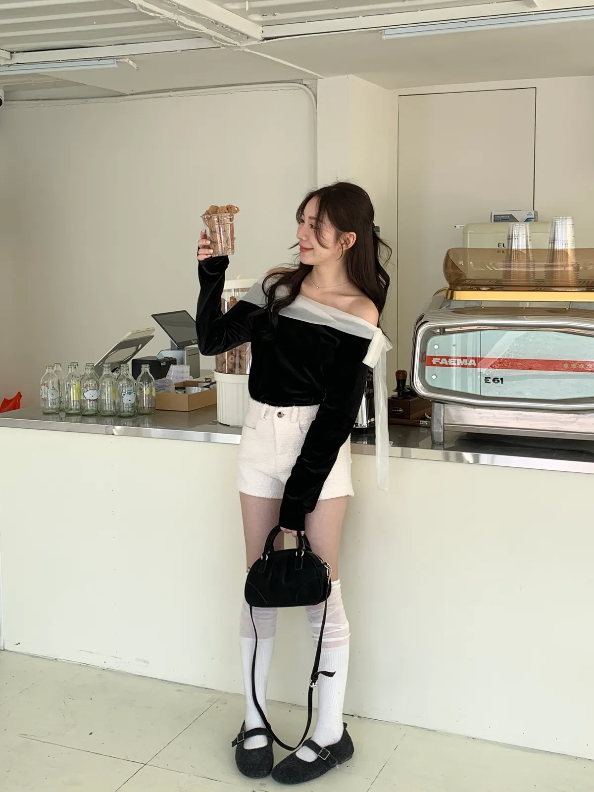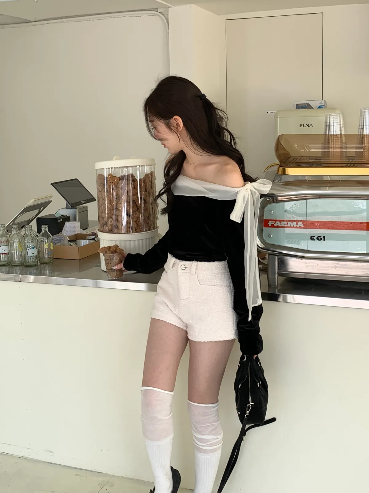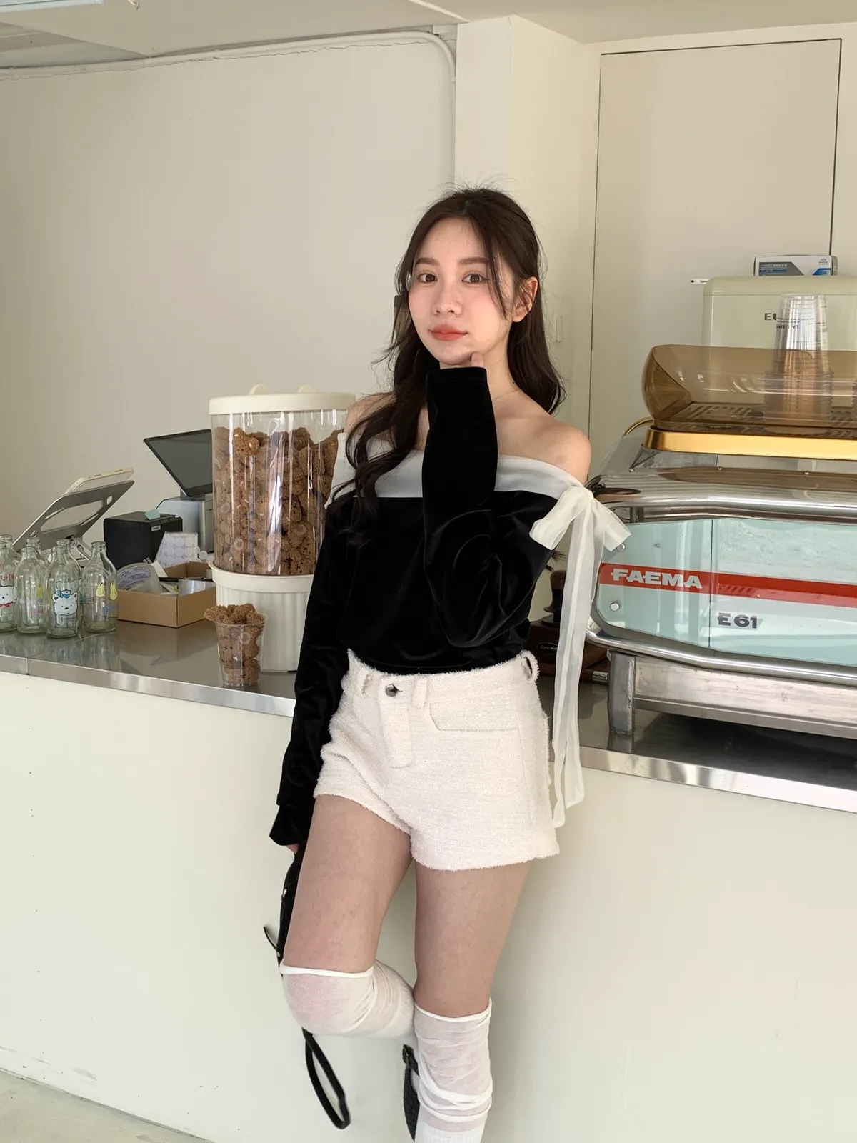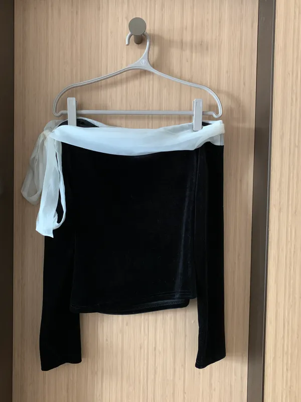 赫本光芒!優雅琉璃光綁帶拼接上衣