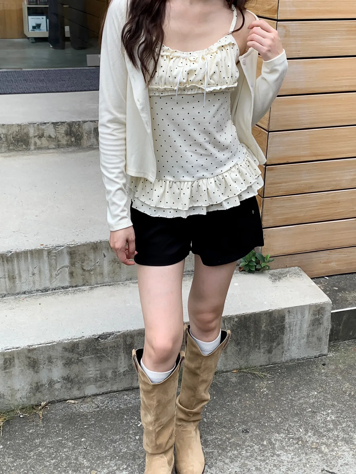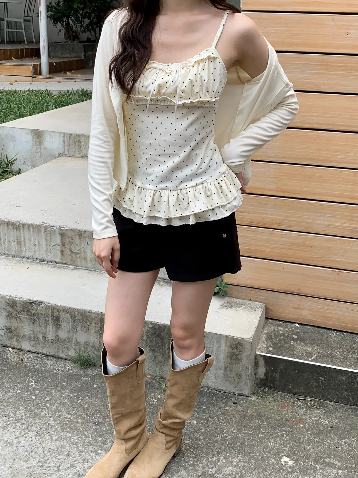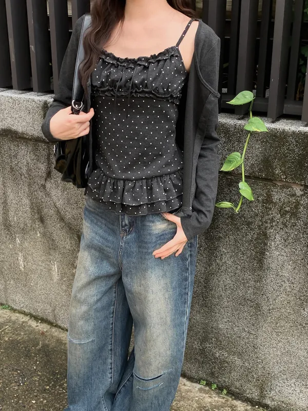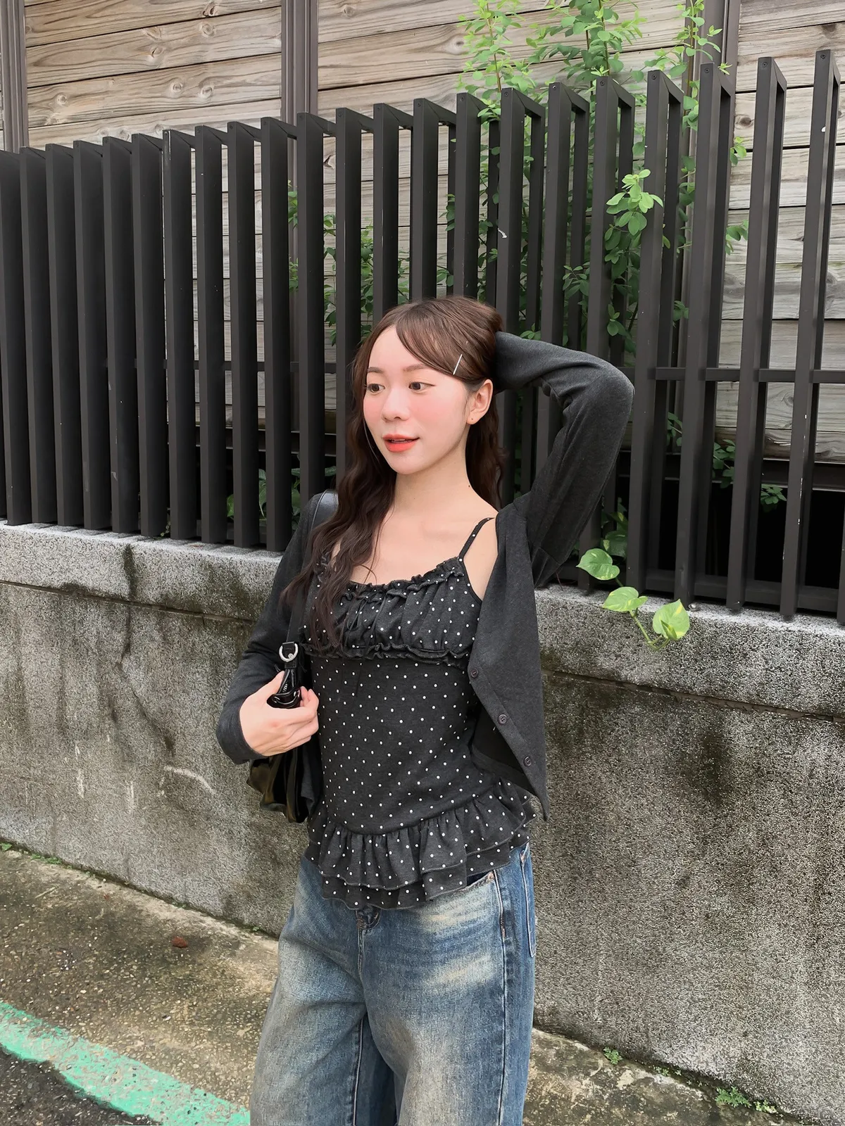 成為目光焦點!波點荷葉邊背心罩衫兩件套