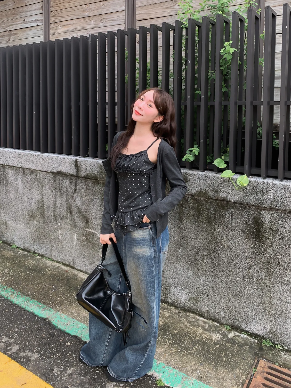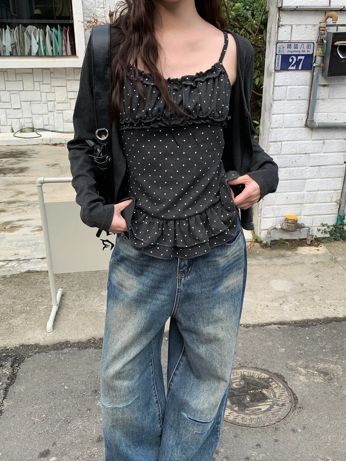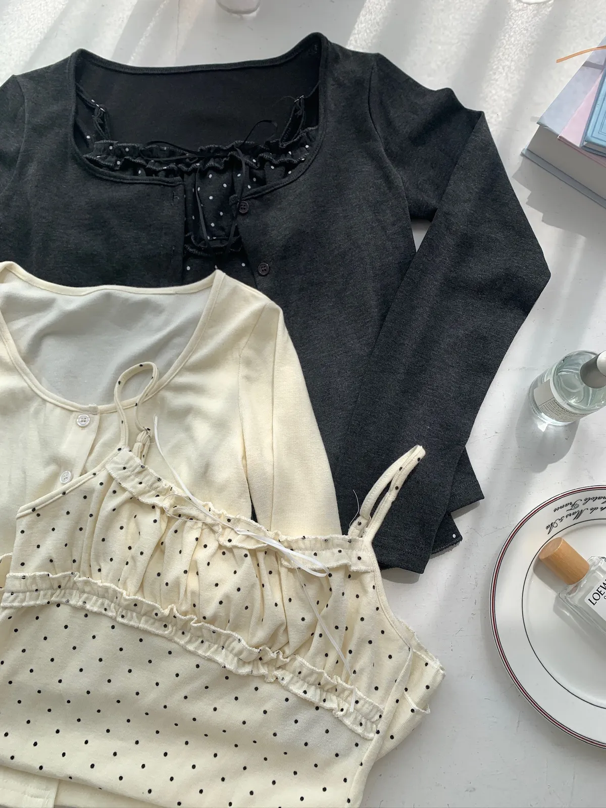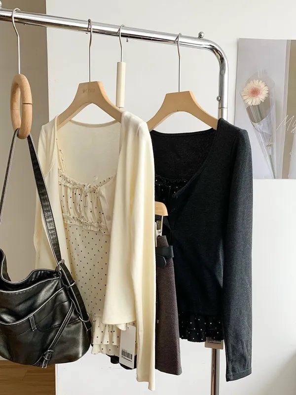 成為目光焦點!波點荷葉邊背心罩衫兩件套