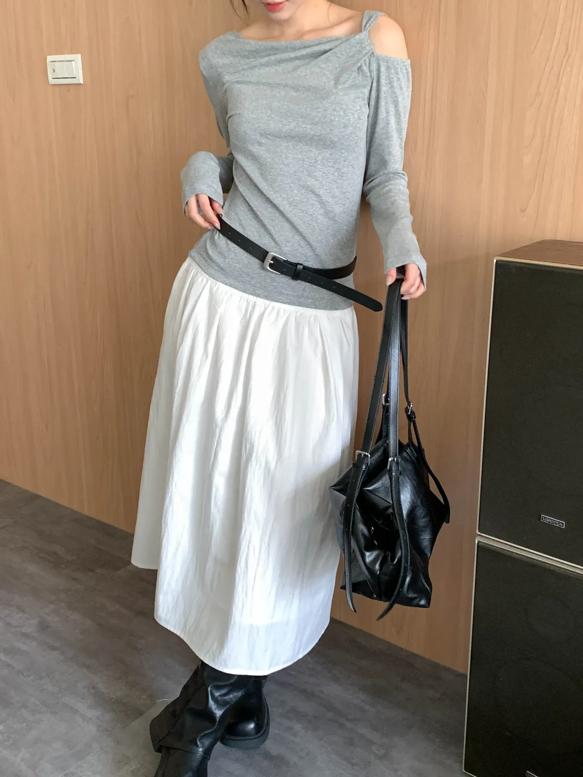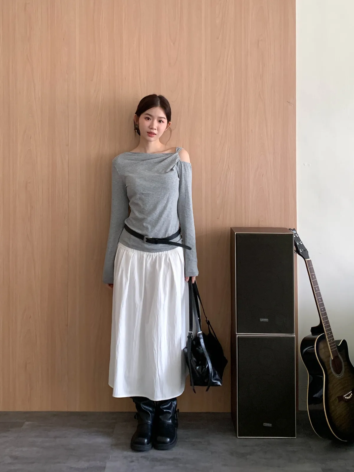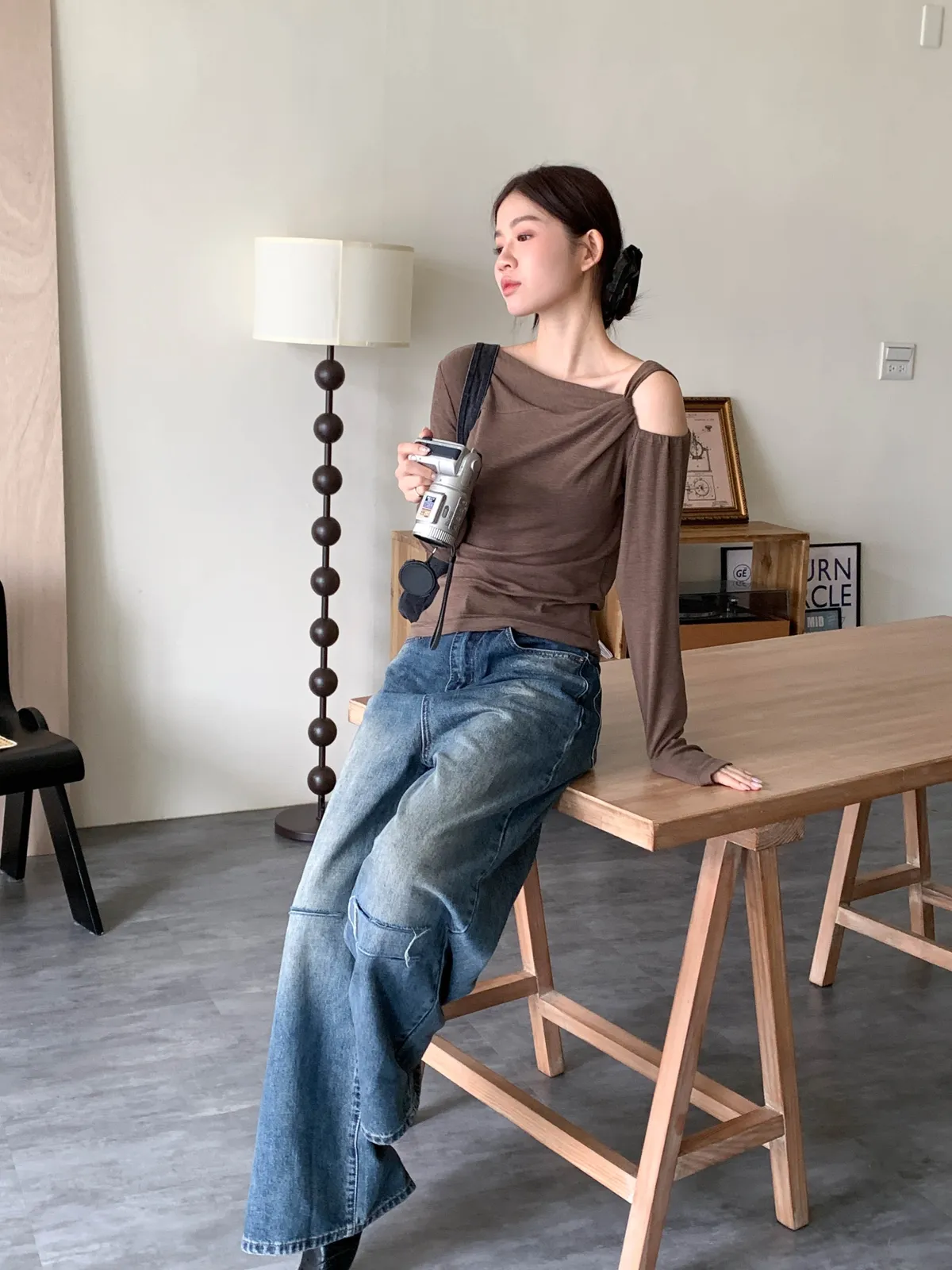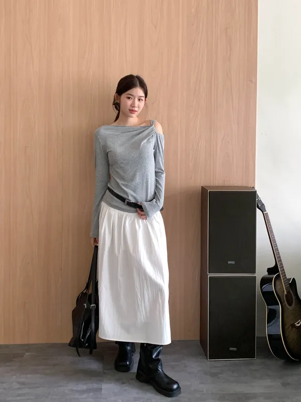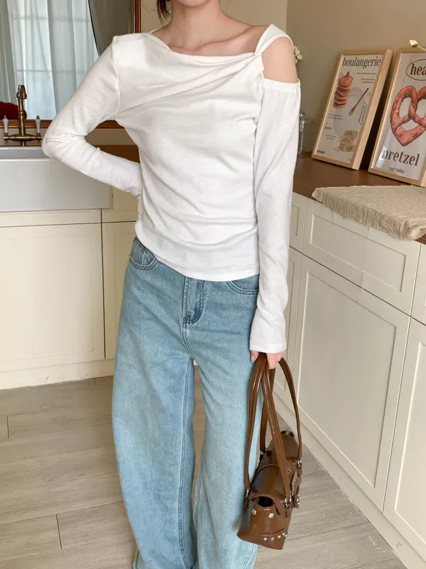隨性斜裁挖肩上衣