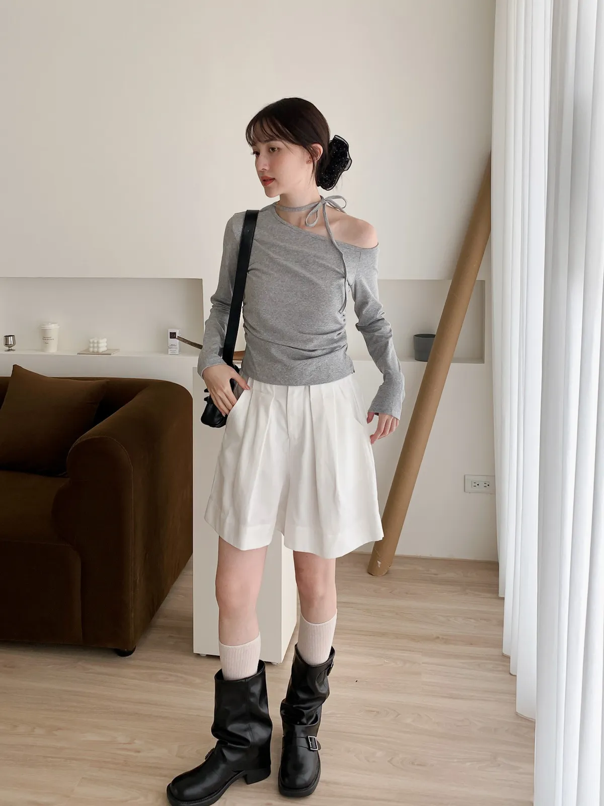 整件面料舒適親膚 側抓皺設計很顯腰身