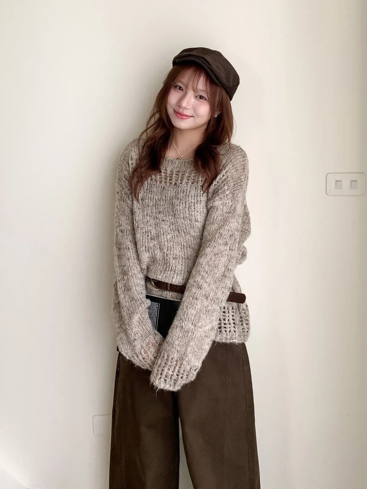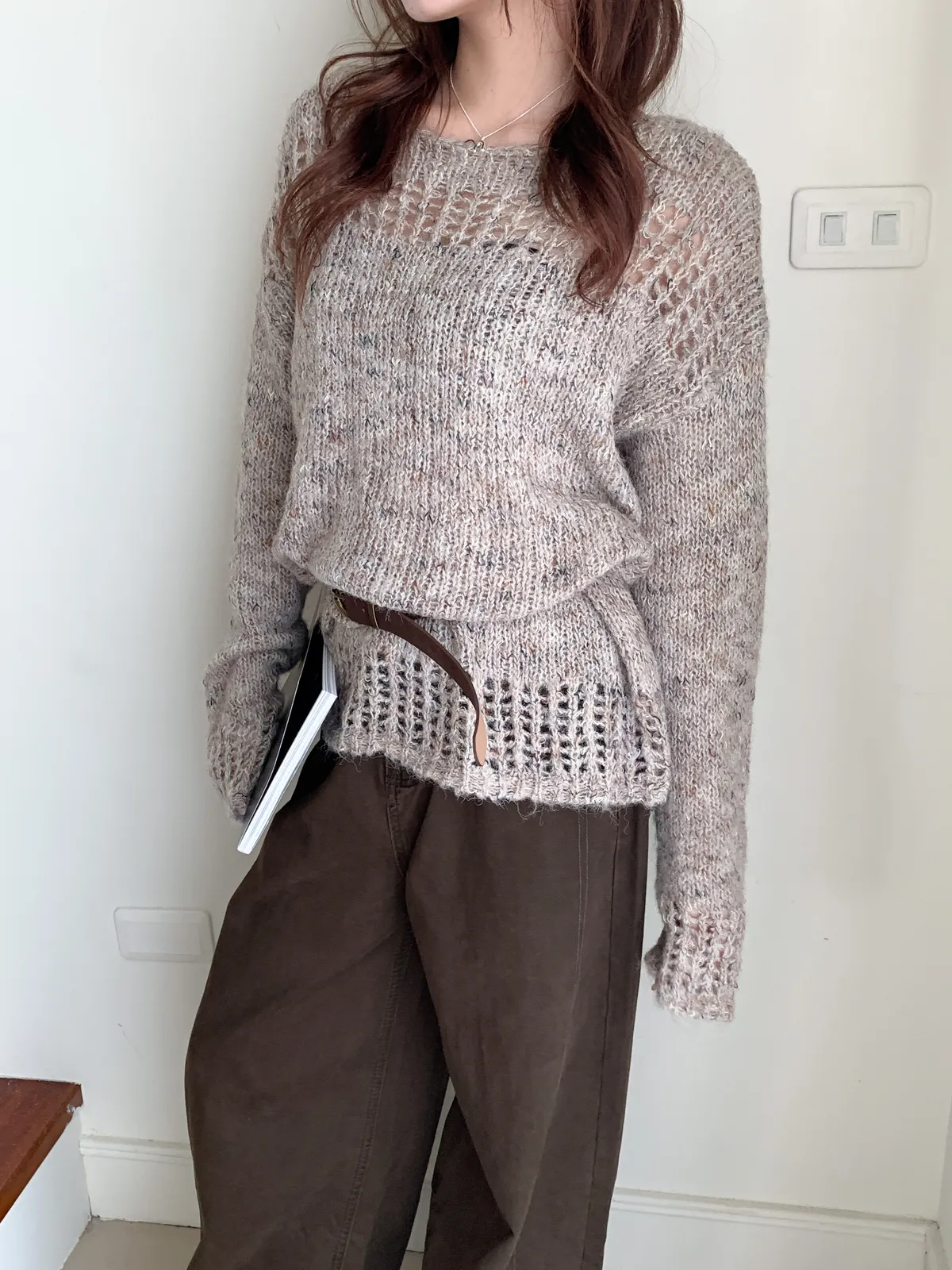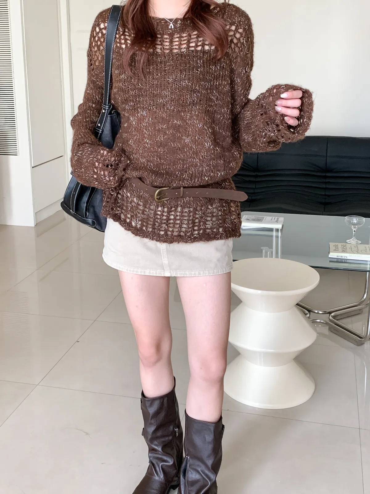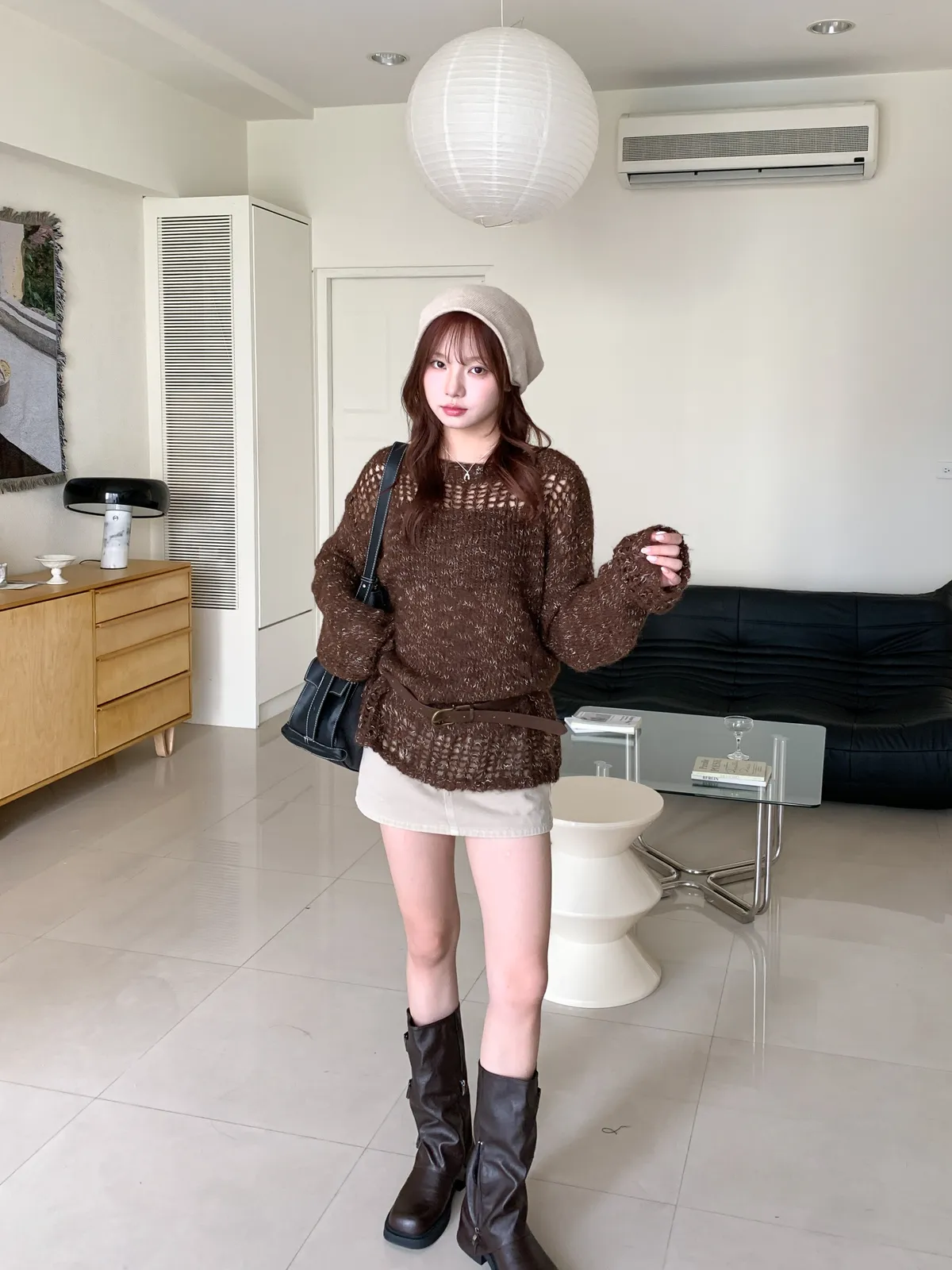 掉進針織夢境|休閒簍空毛線上衣(附皮帶)