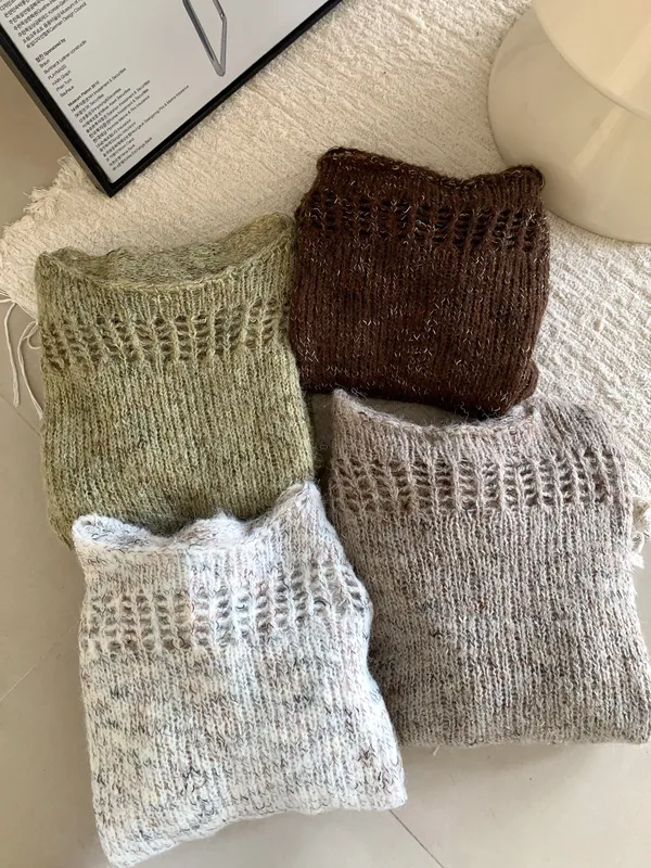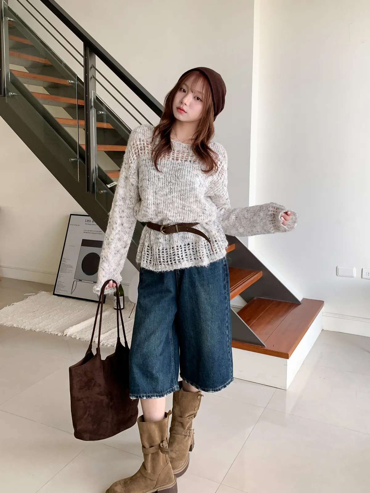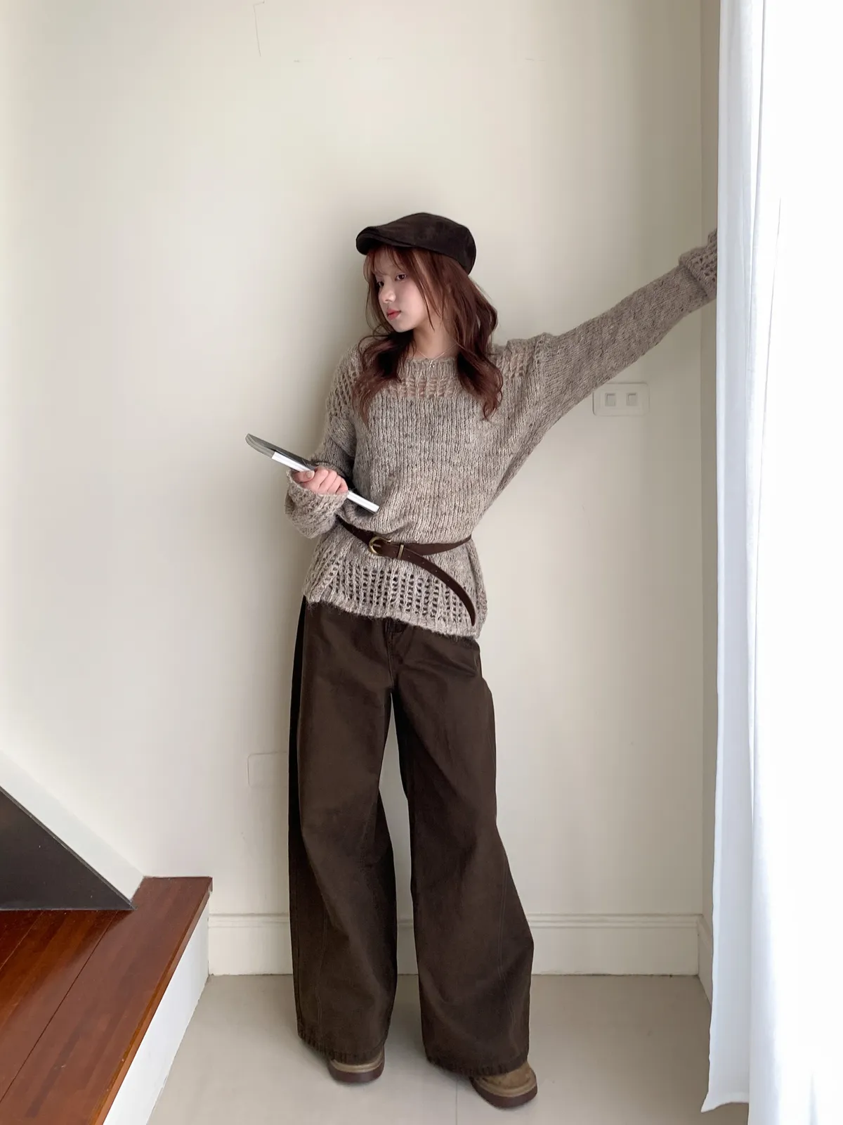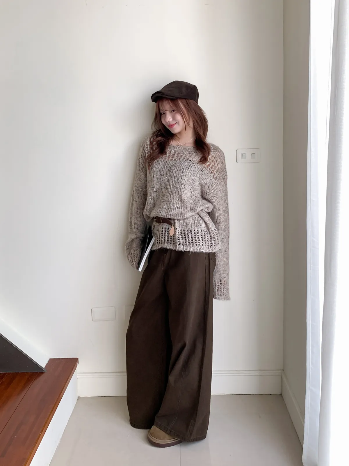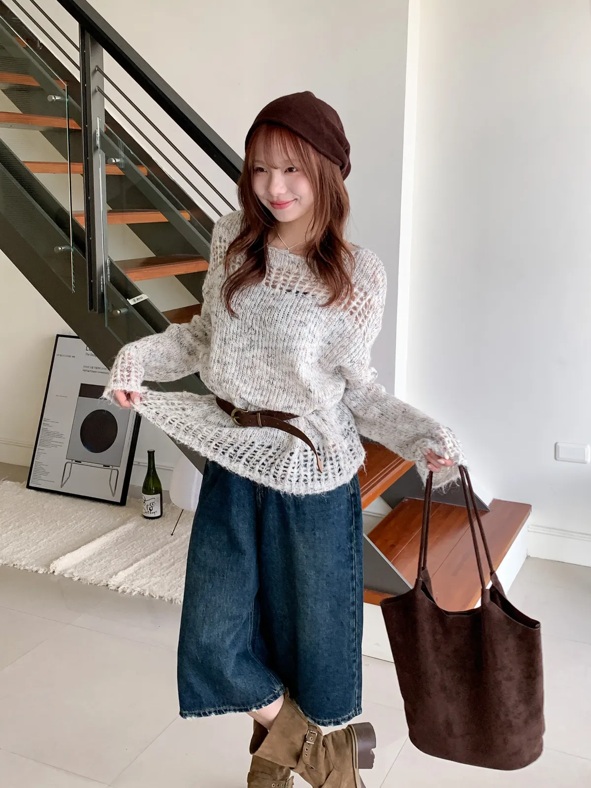 掉進針織夢境|休閒簍空毛線上衣(附皮帶)