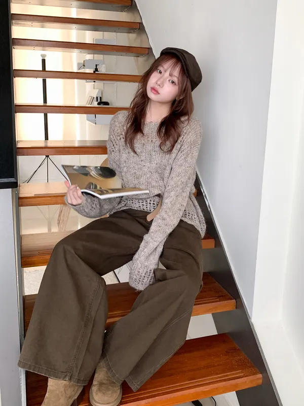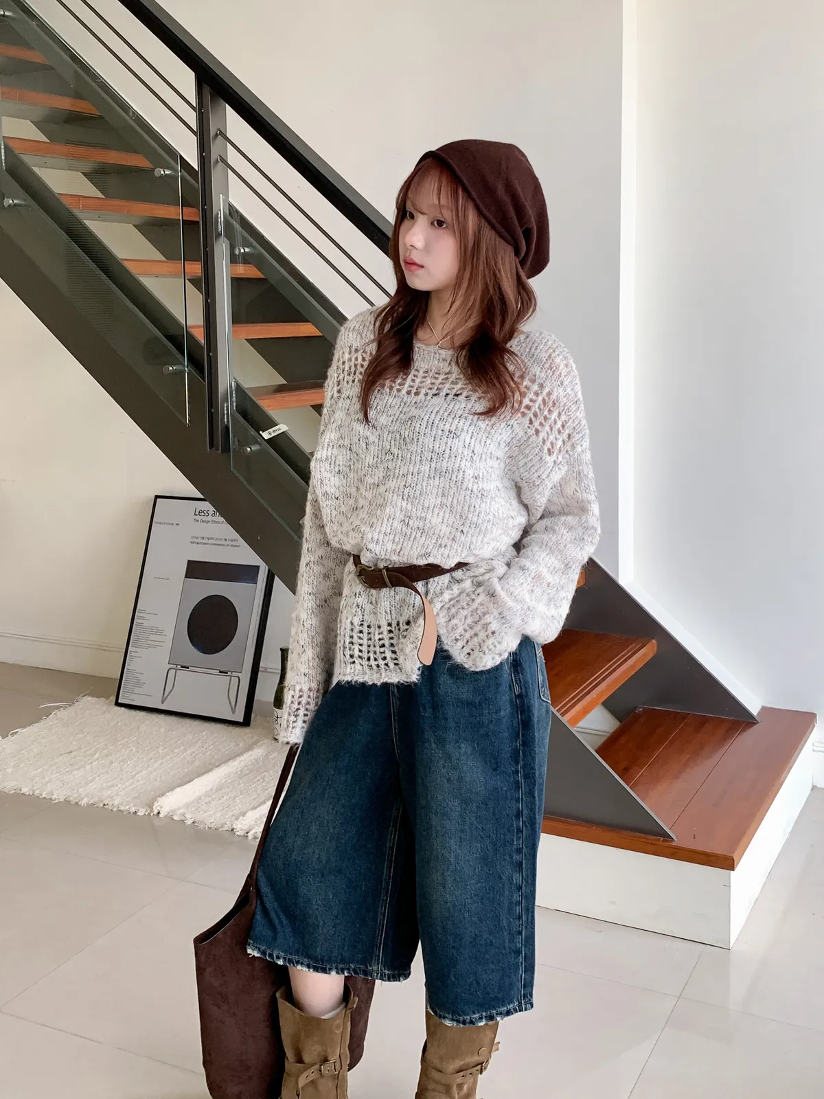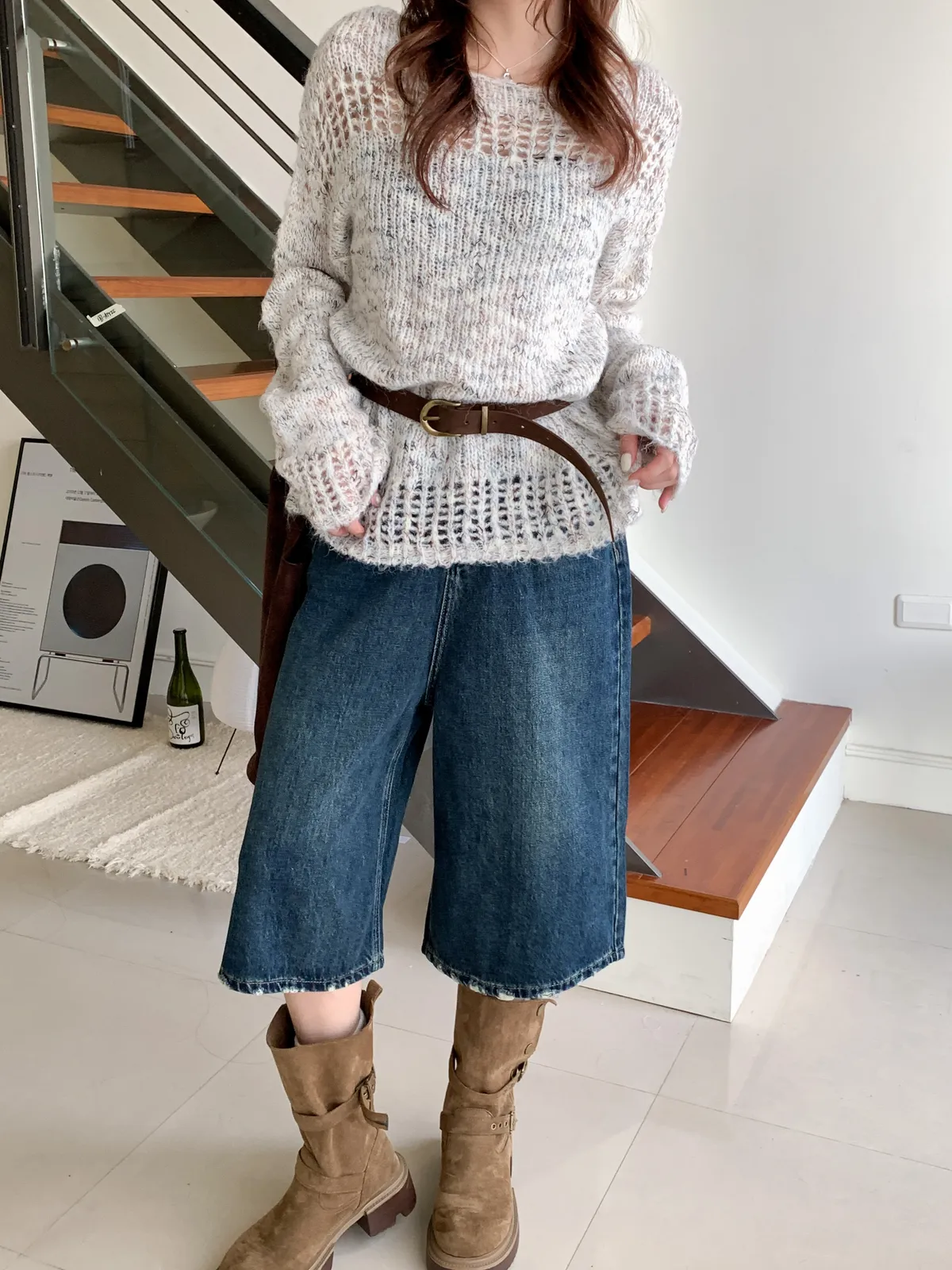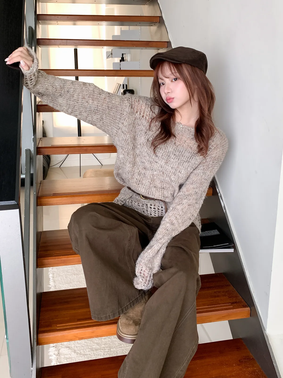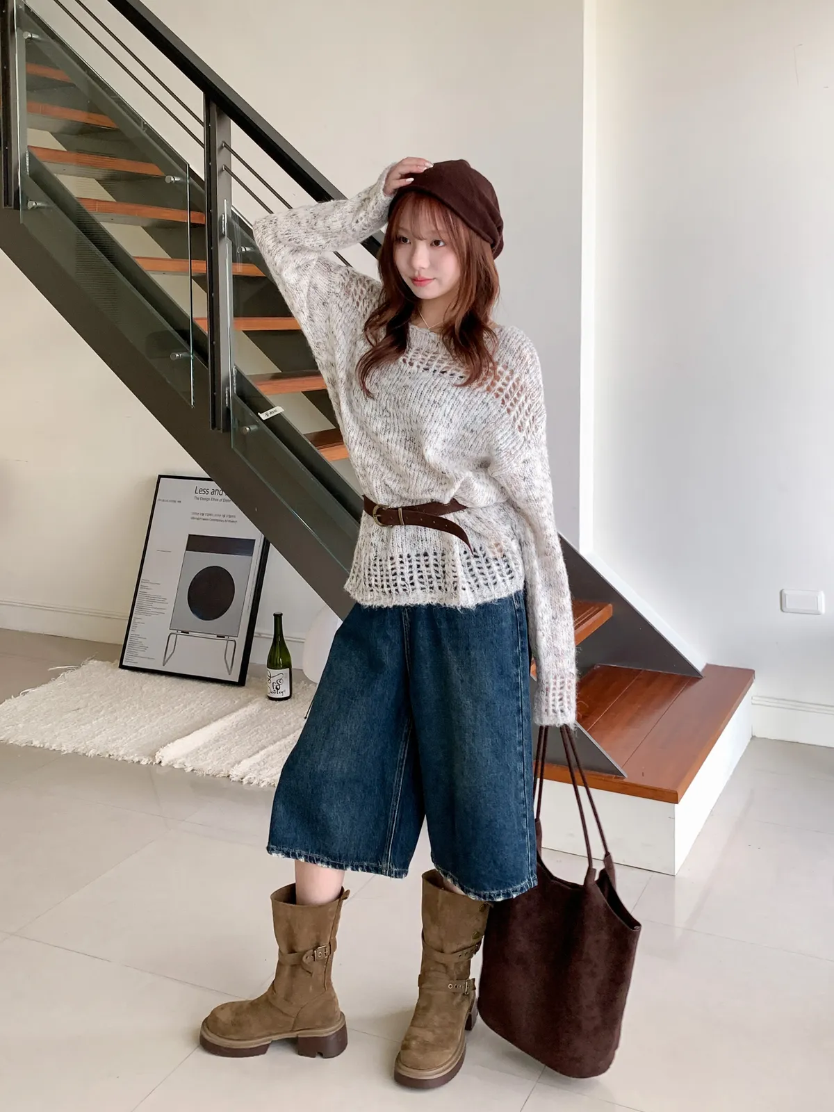 掉進針織夢境|休閒簍空毛線上衣(附皮帶)