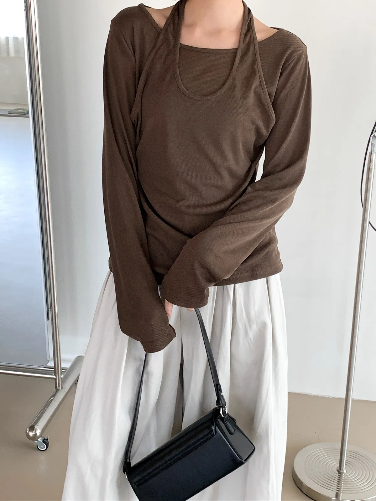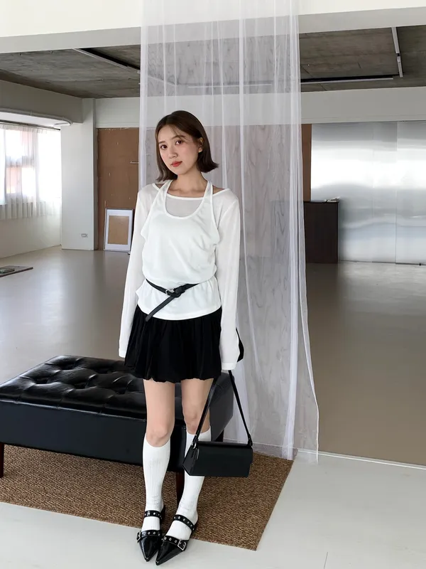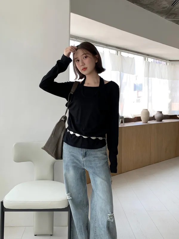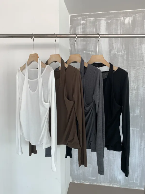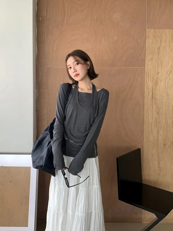 繞脖假兩件設計薄上衣