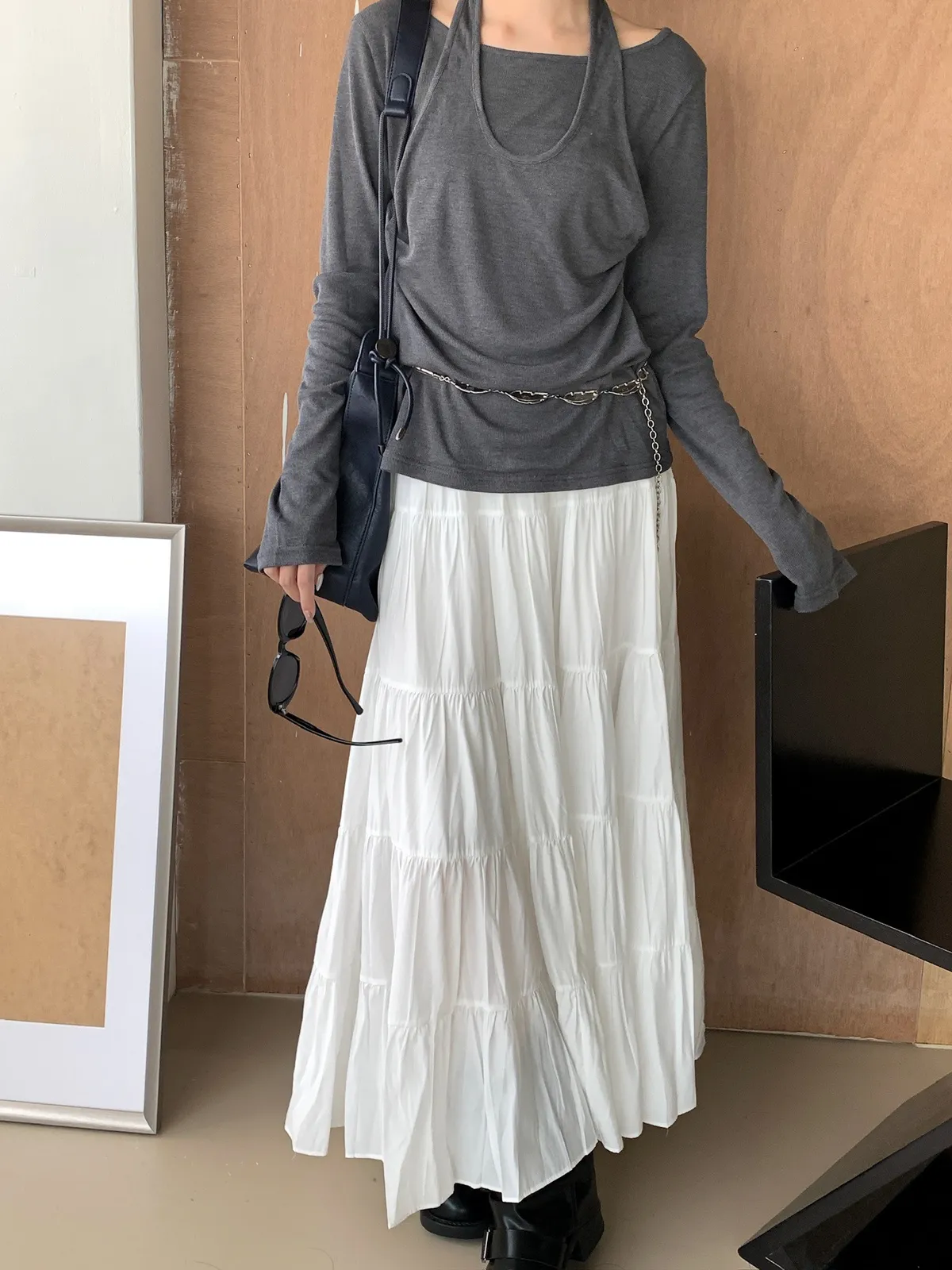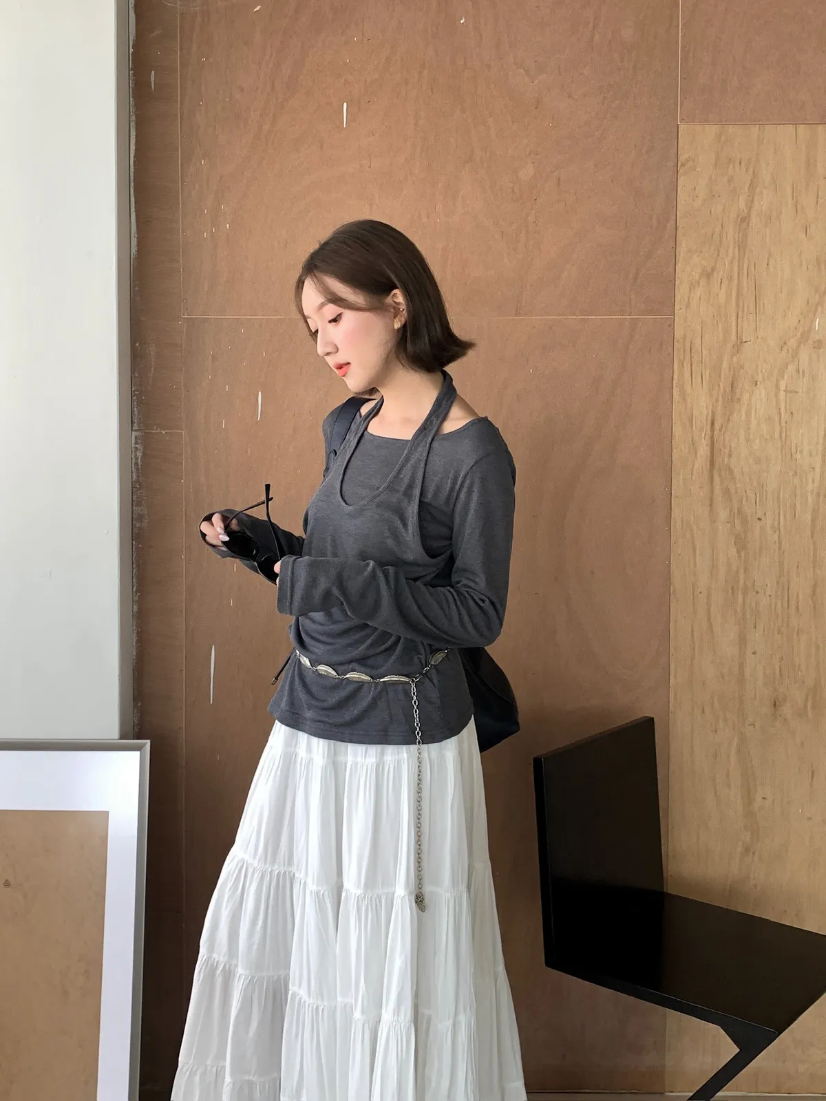 慵懶日常/繞脖假兩件設計薄上衣