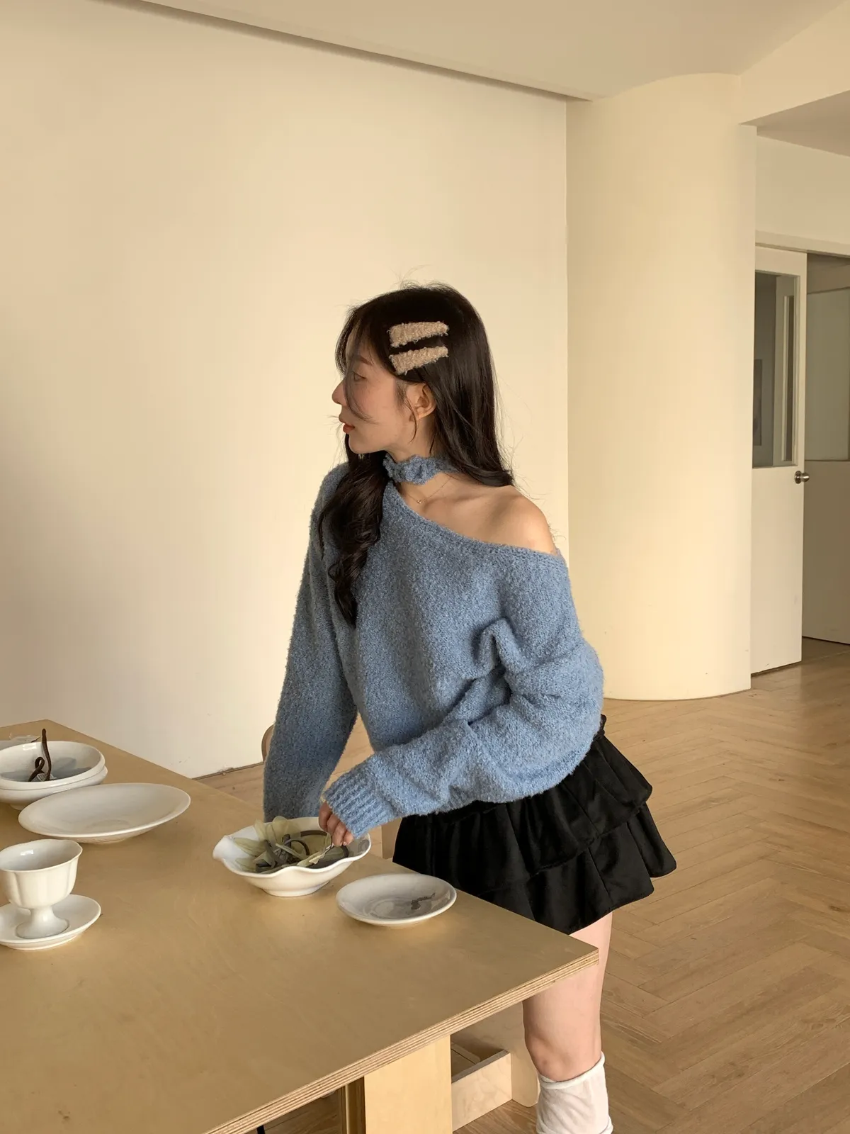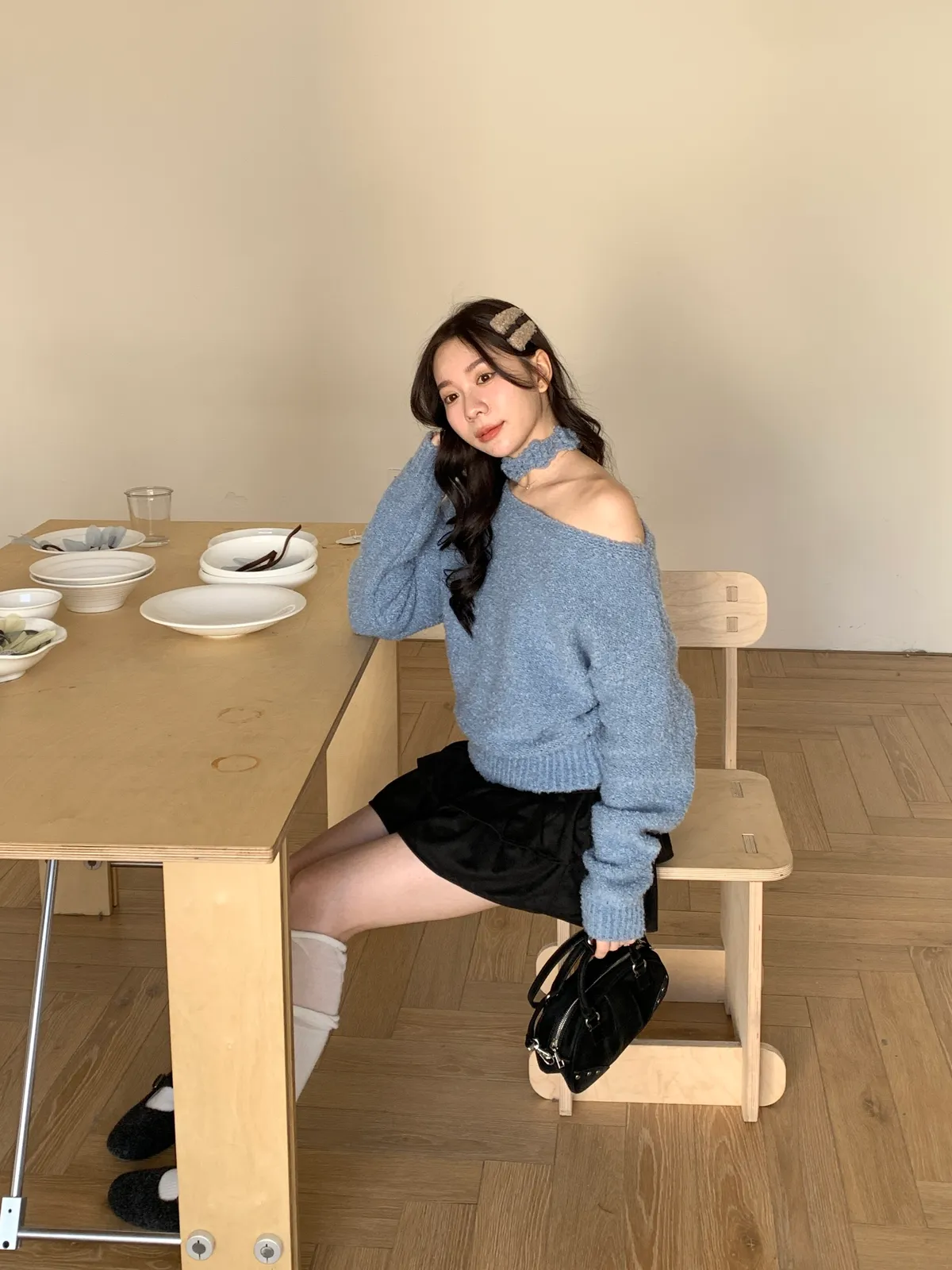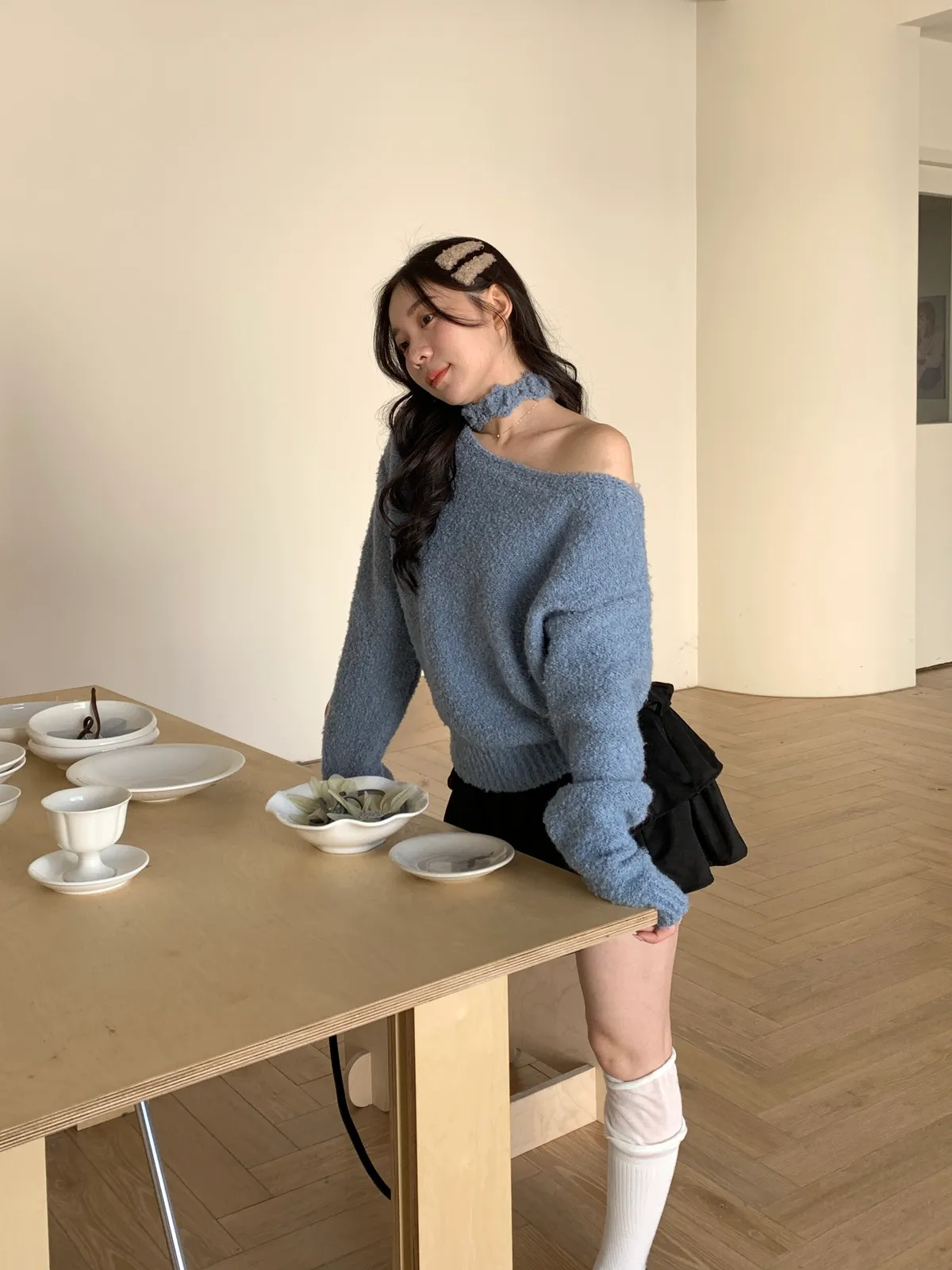 本命毛茸茸/立體毛感繡花繞脖毛衣
