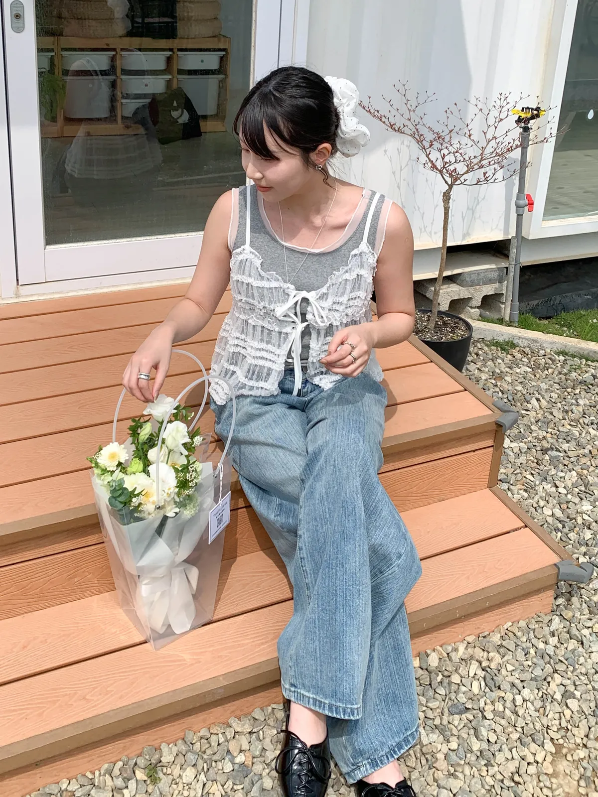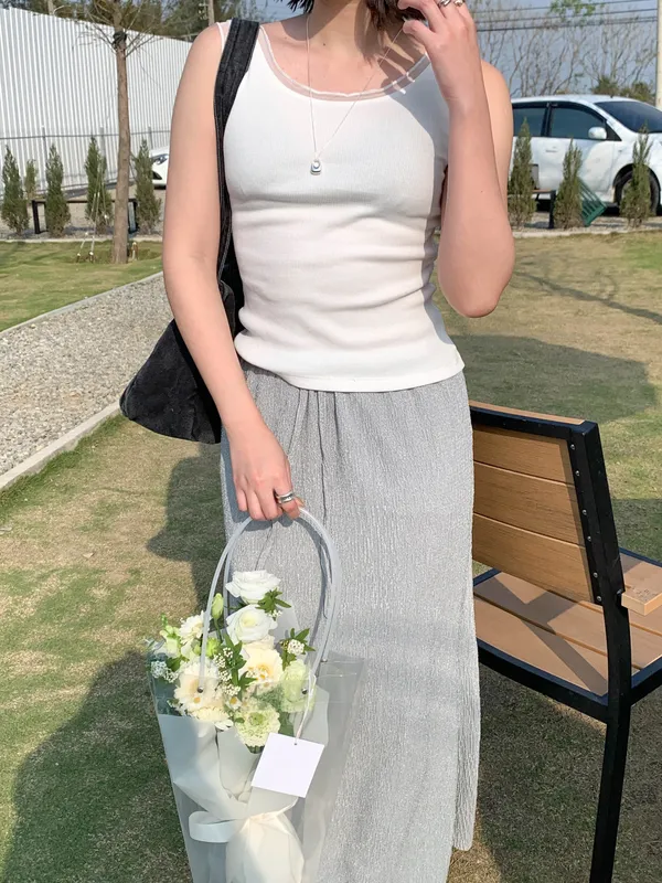 (透紗材質有彈性,上身貼身不緊繃,單穿疊搭都很好看)