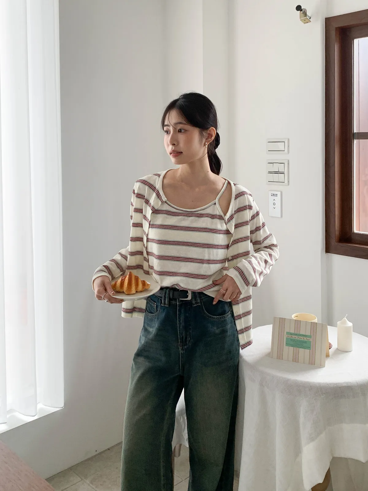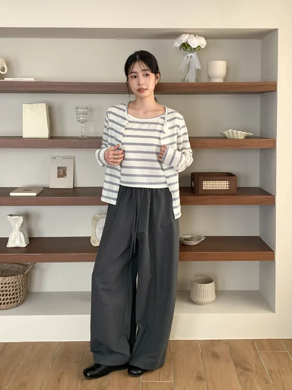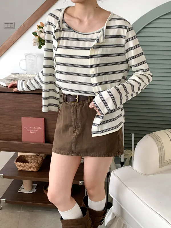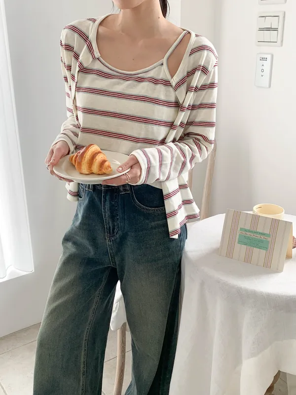 溫柔復刻・條紋背心罩衫兩件套