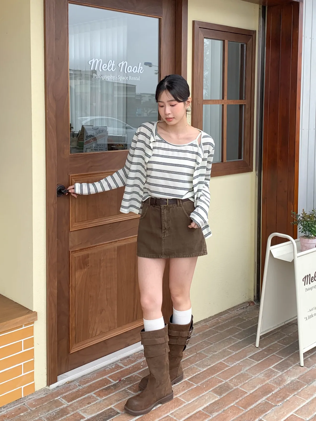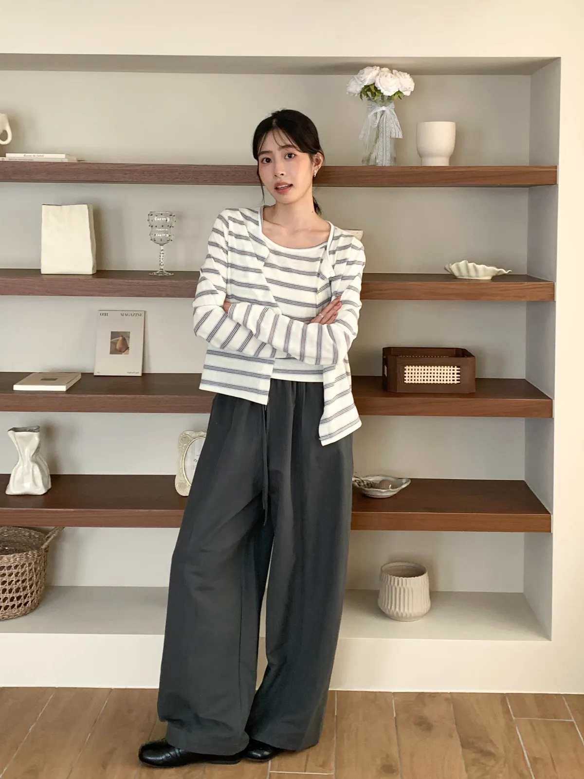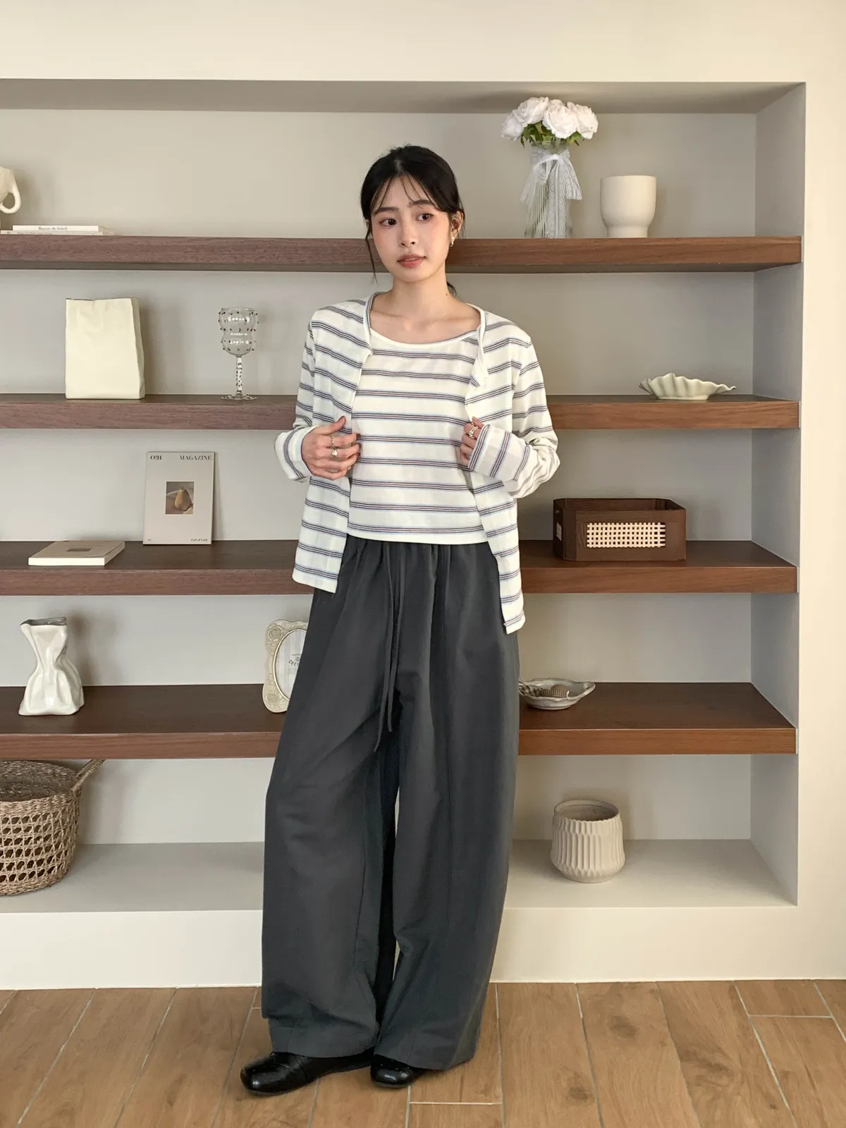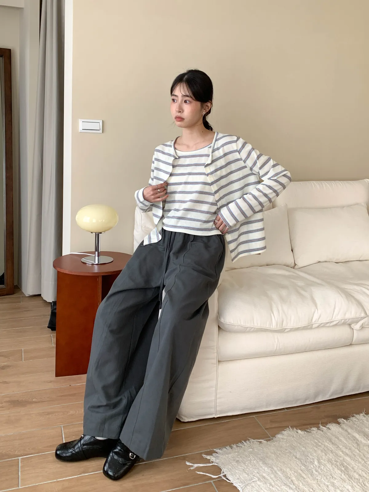 (外罩衫袖長對小個子來說會稍微長一點,但穿起來有慵懶感)
