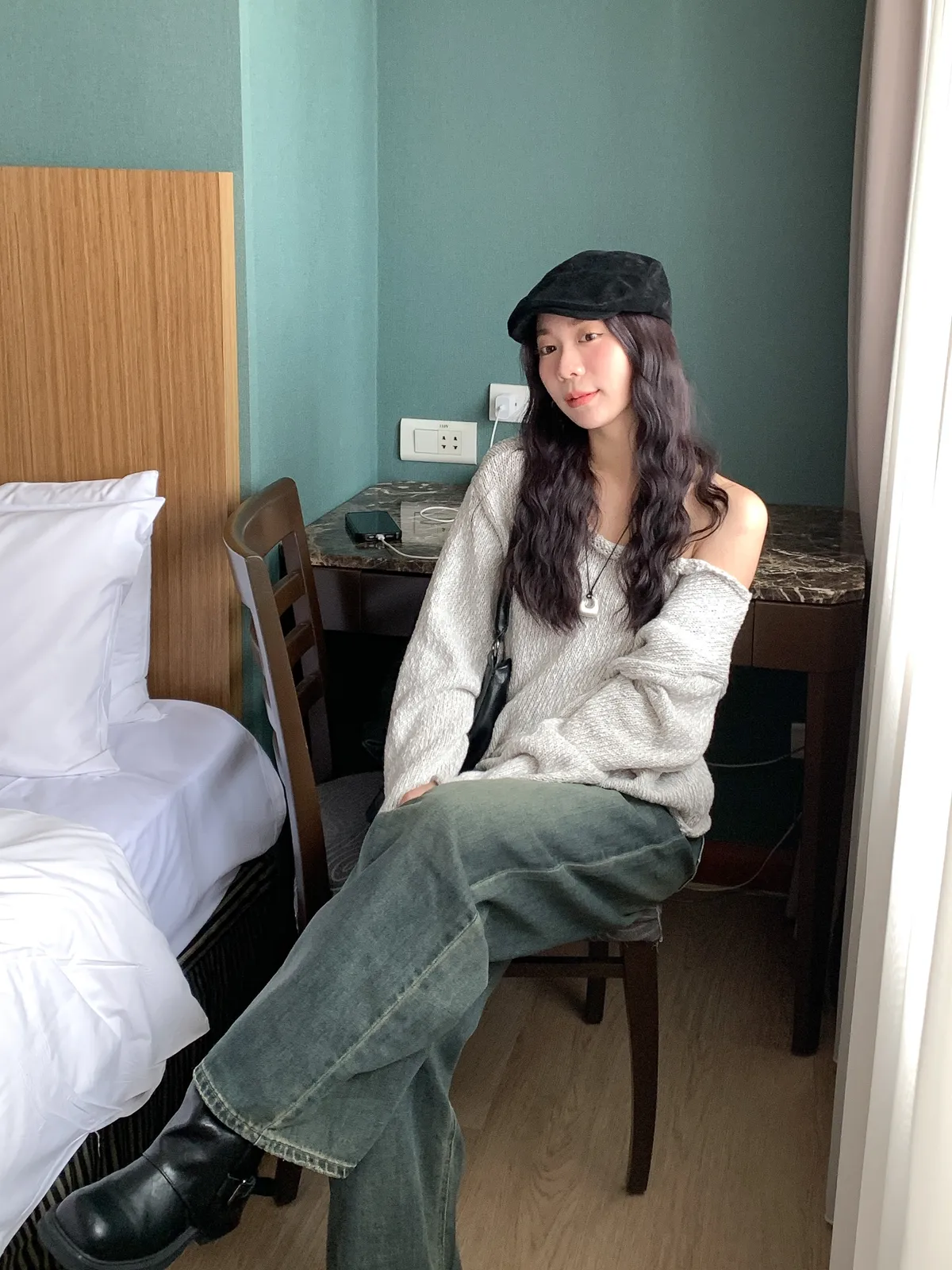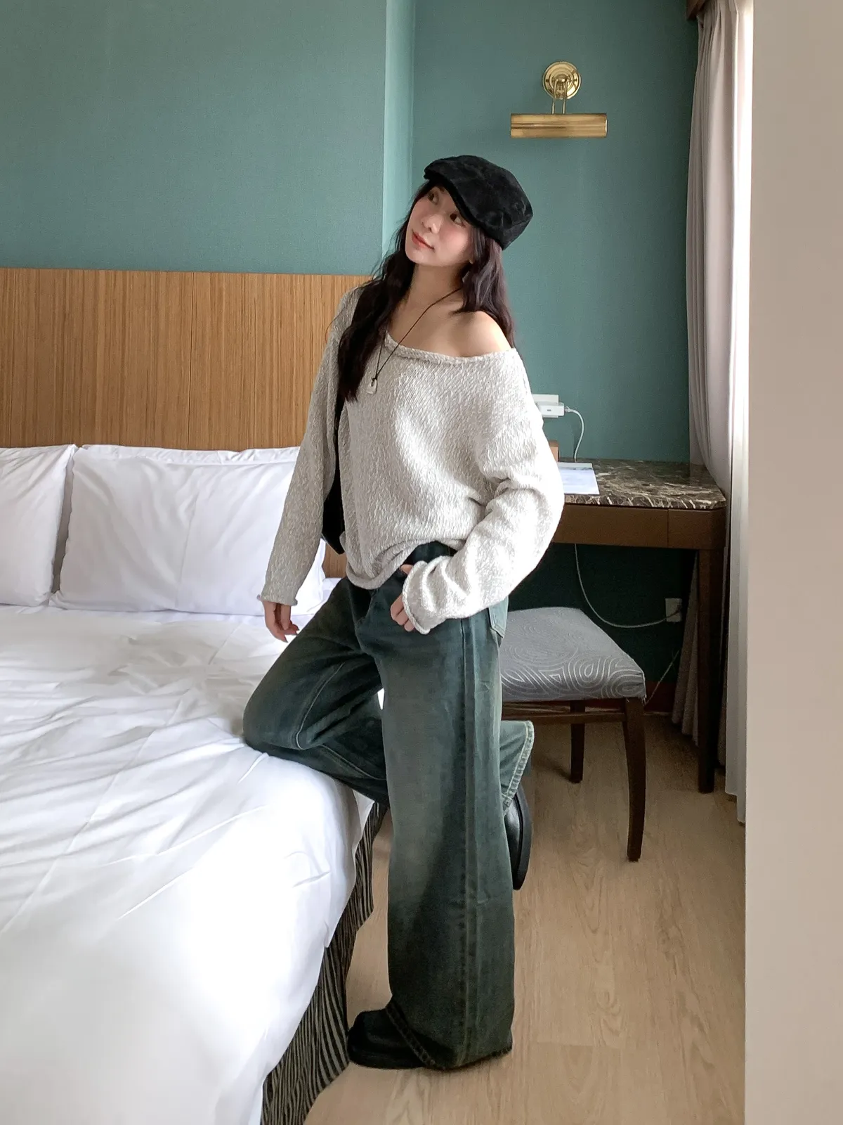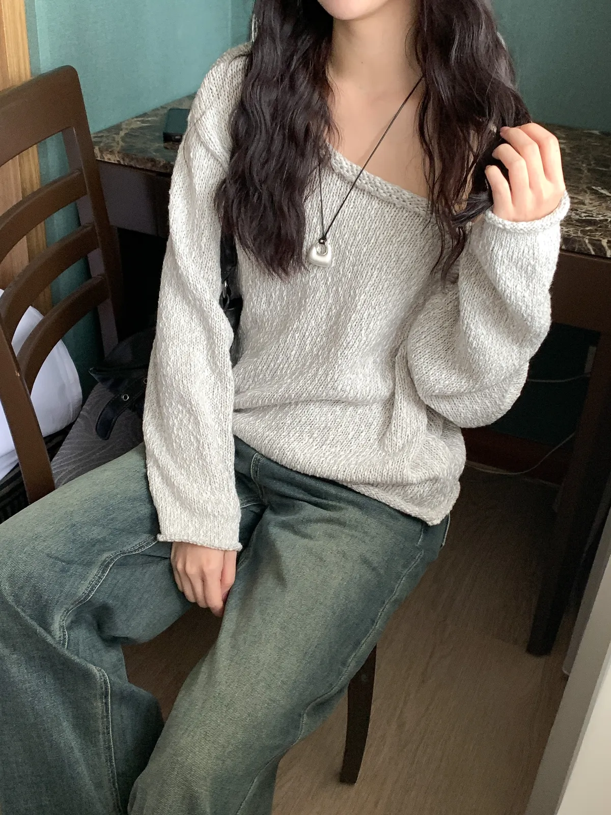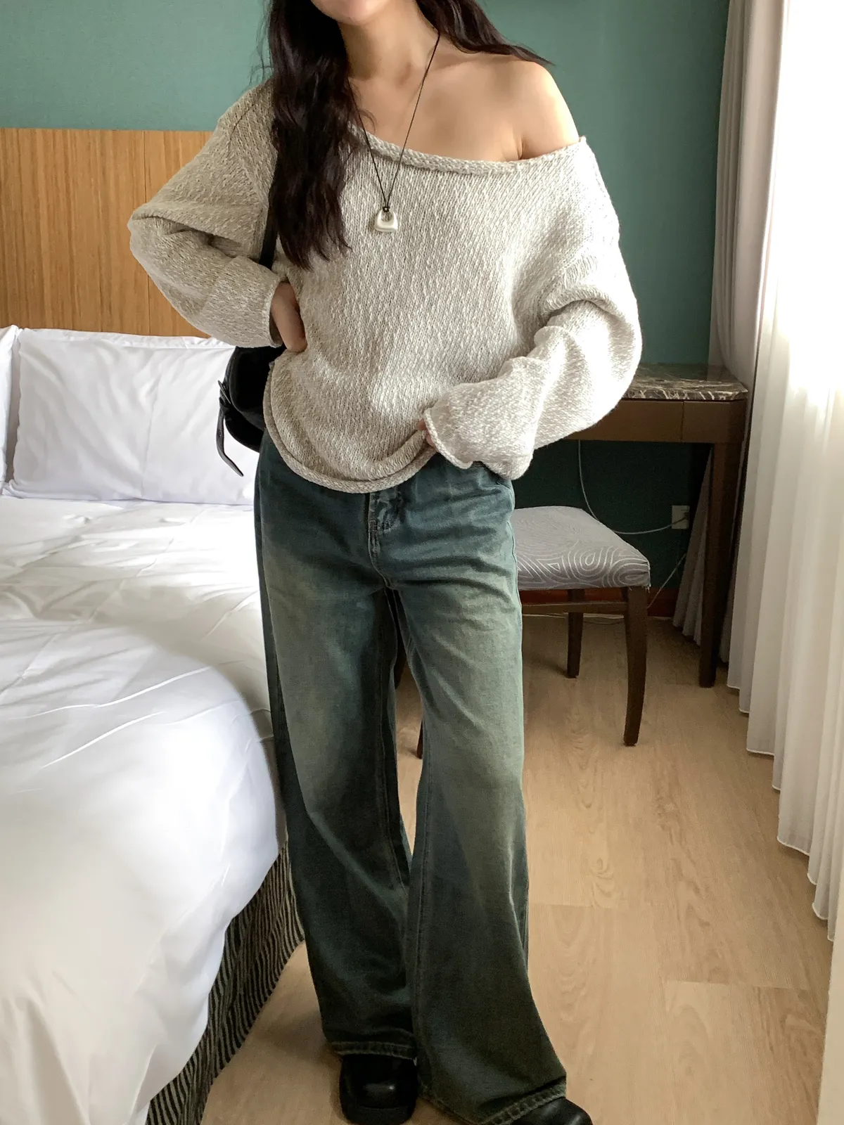 毛線針織船領毛衣