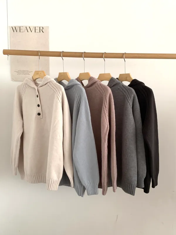 軟糯感排釦連帽針織上衣