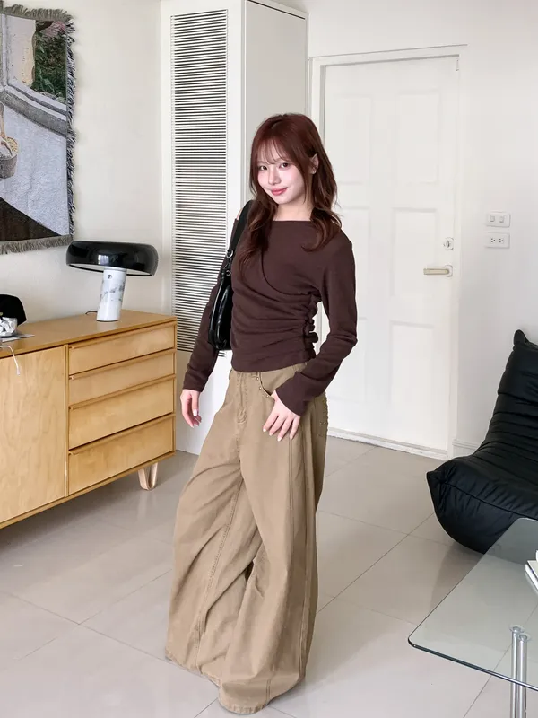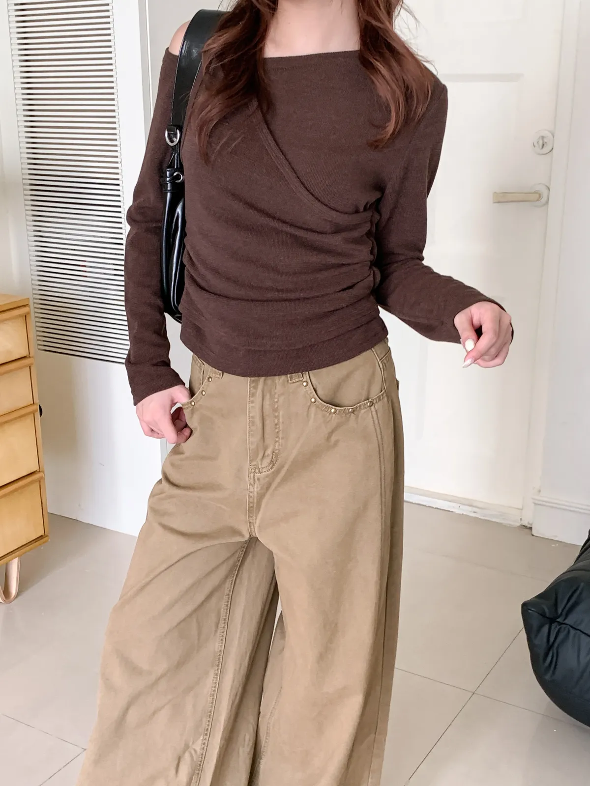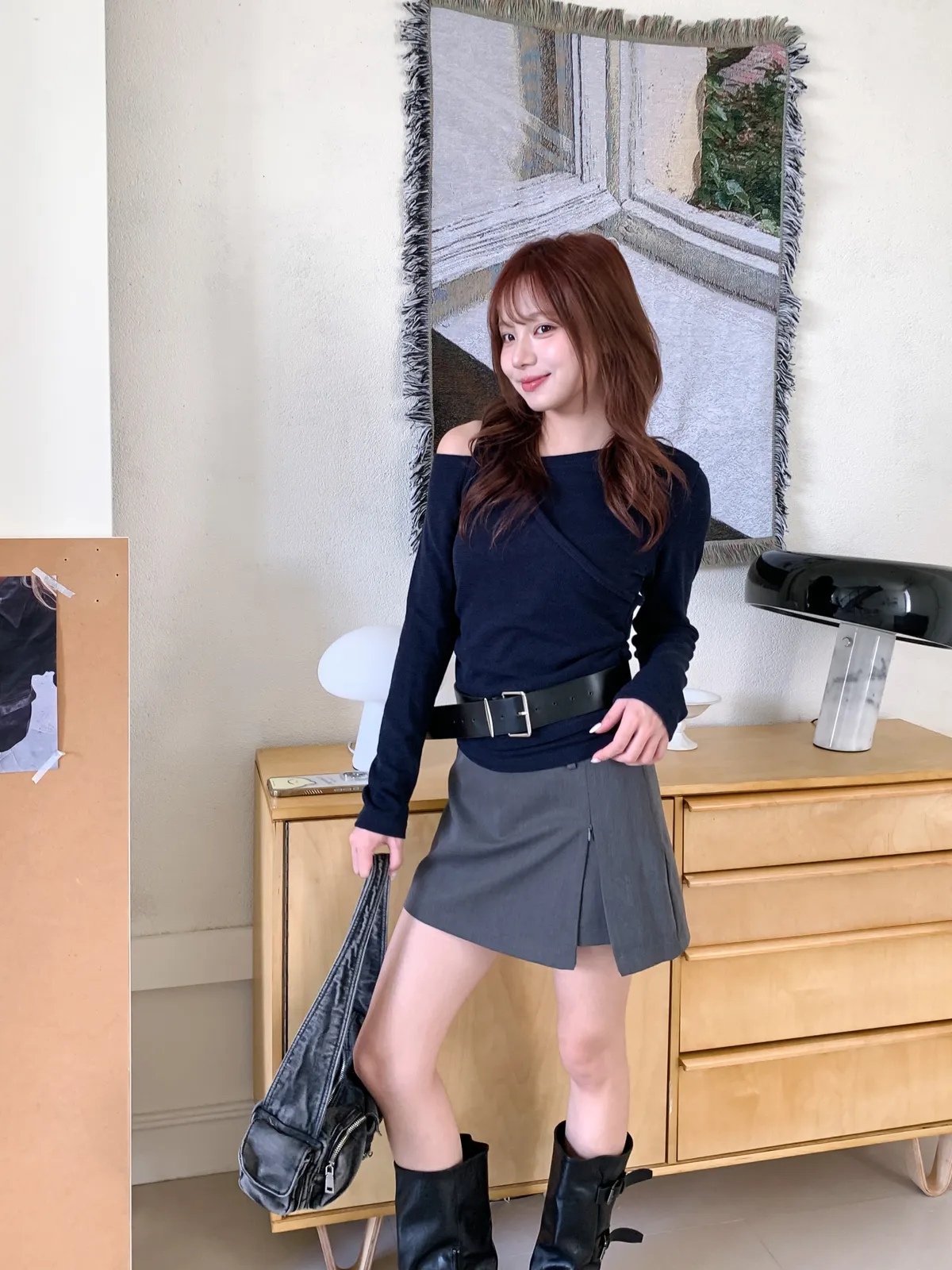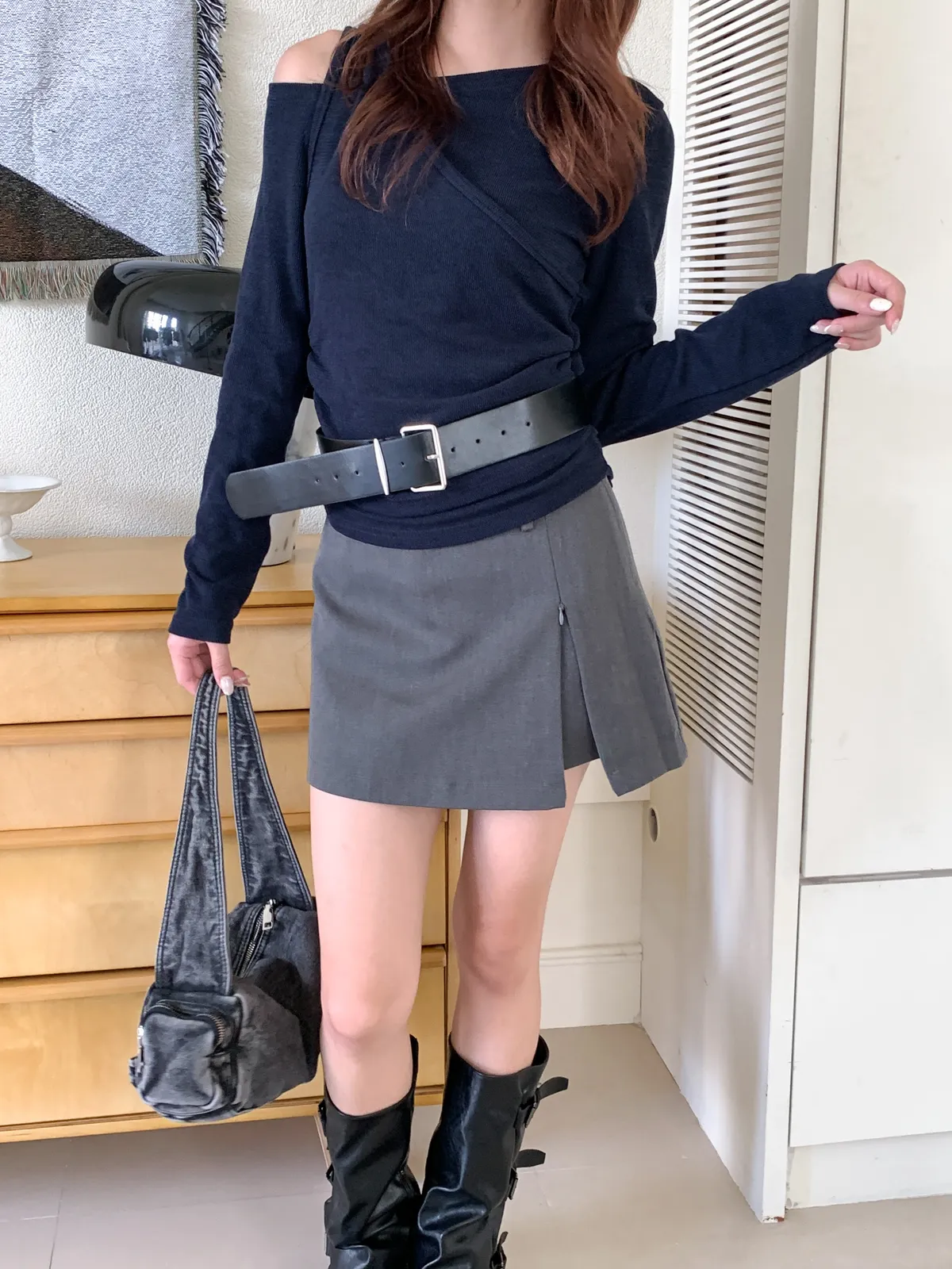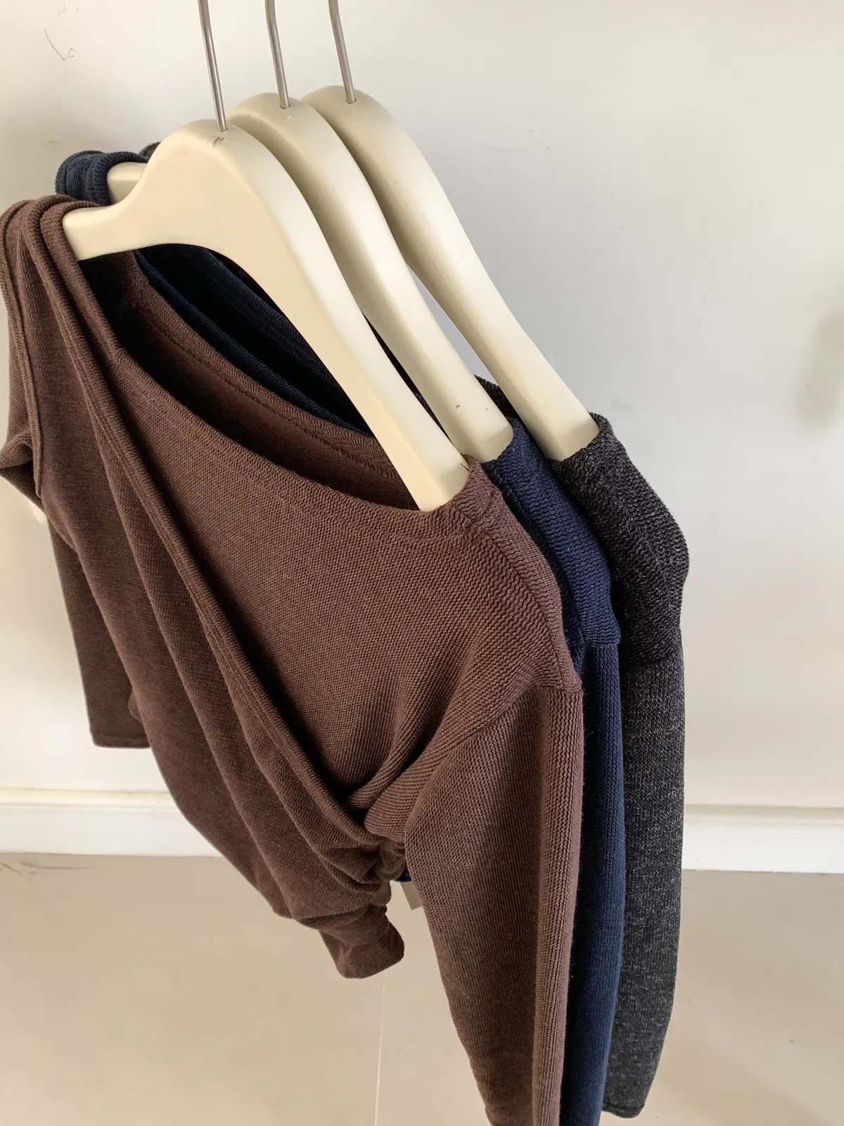 假兩件斜肩造型上衣 雙側邊都有抓皺設計