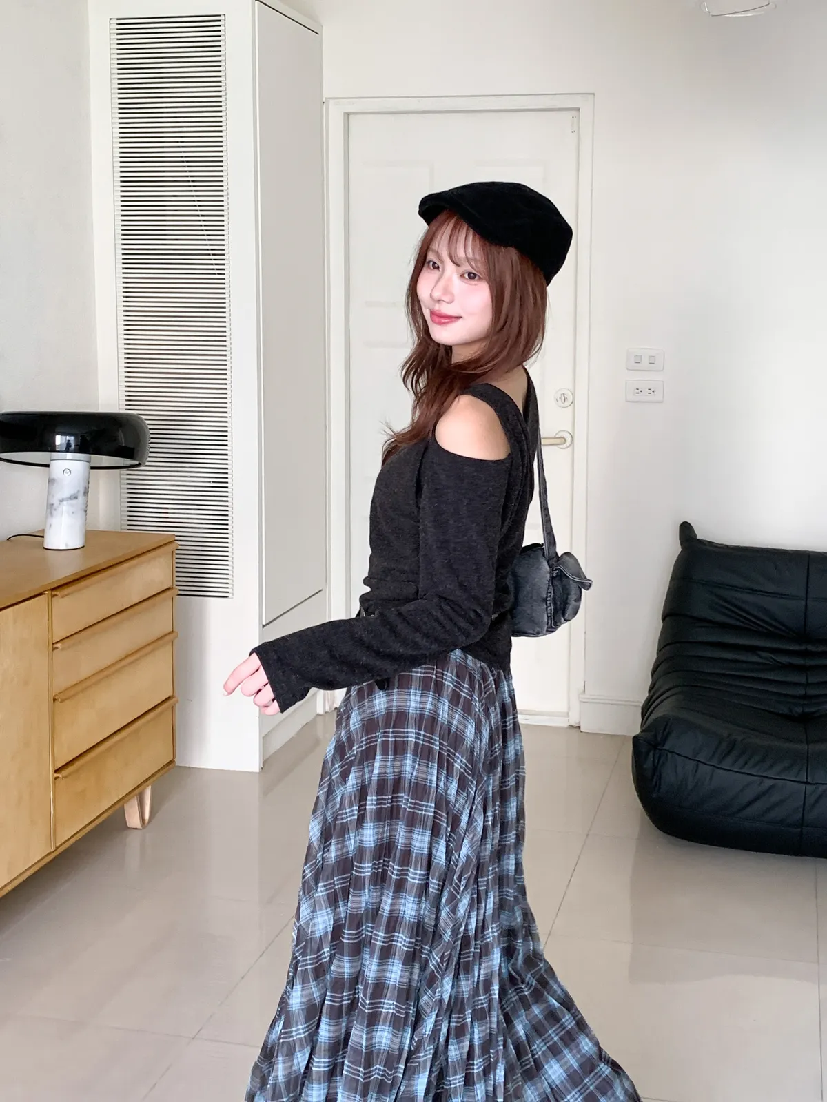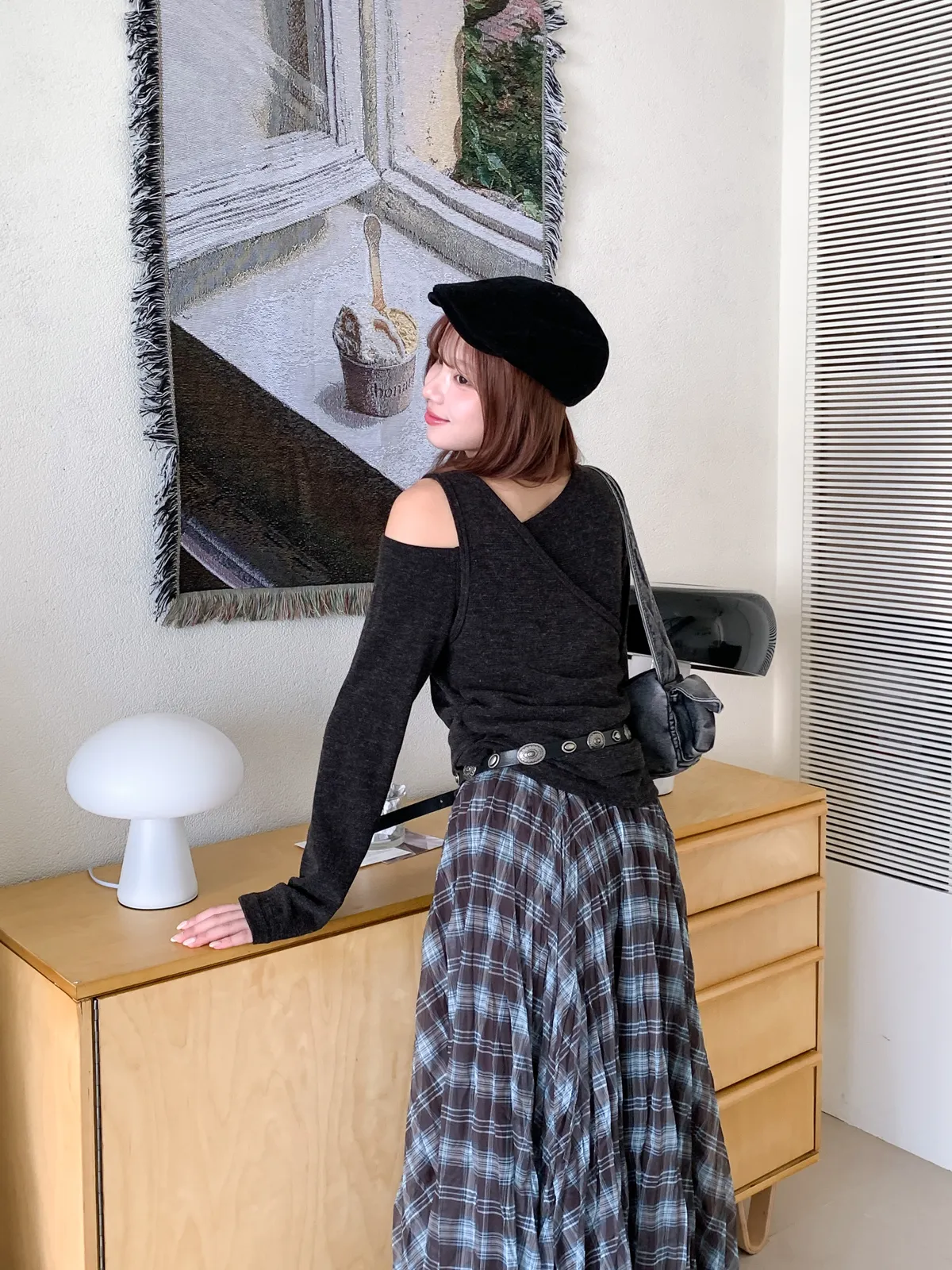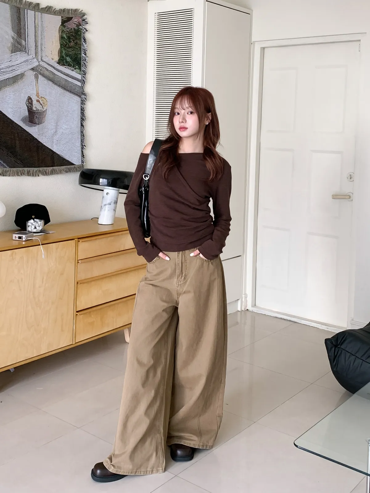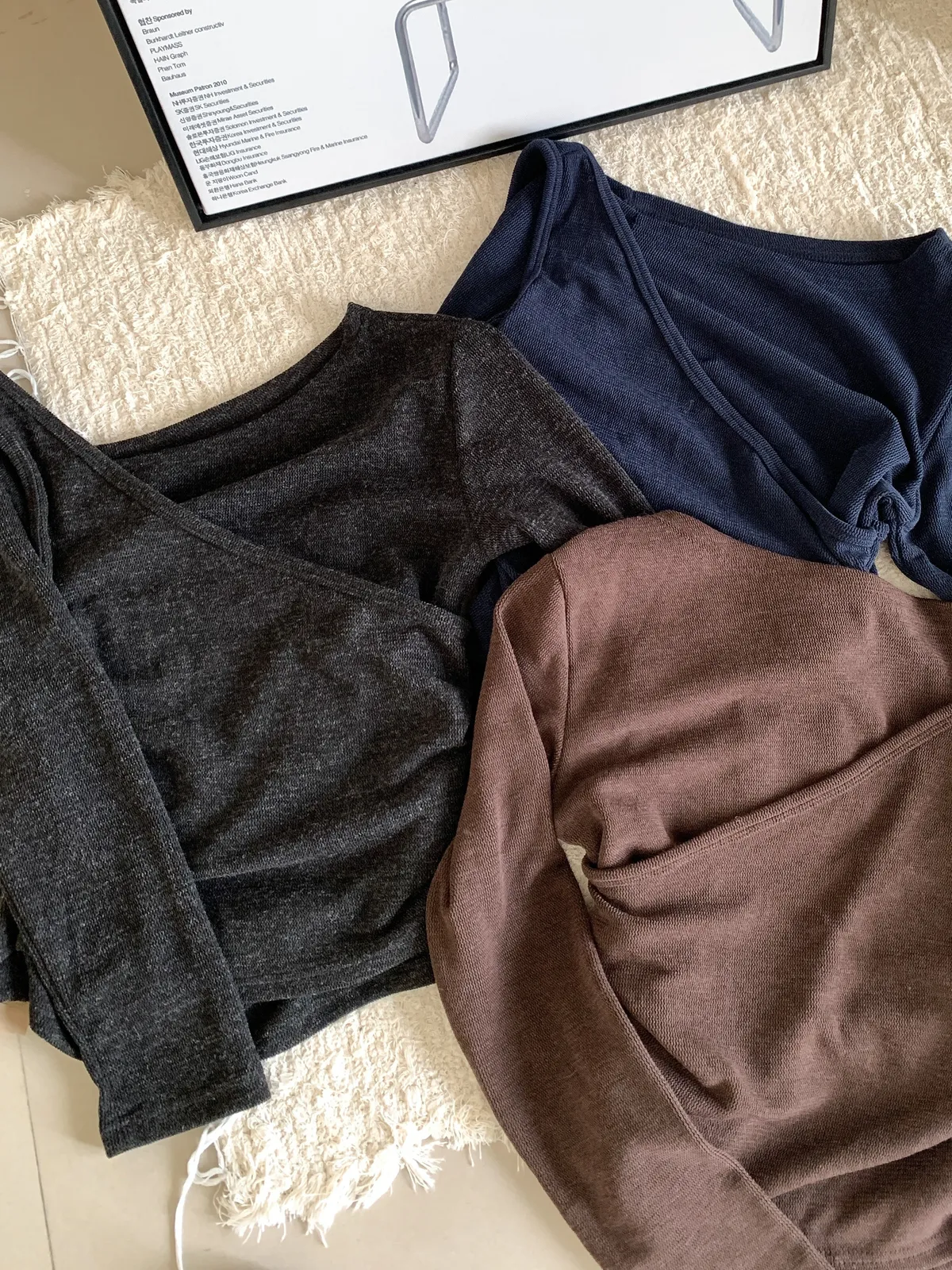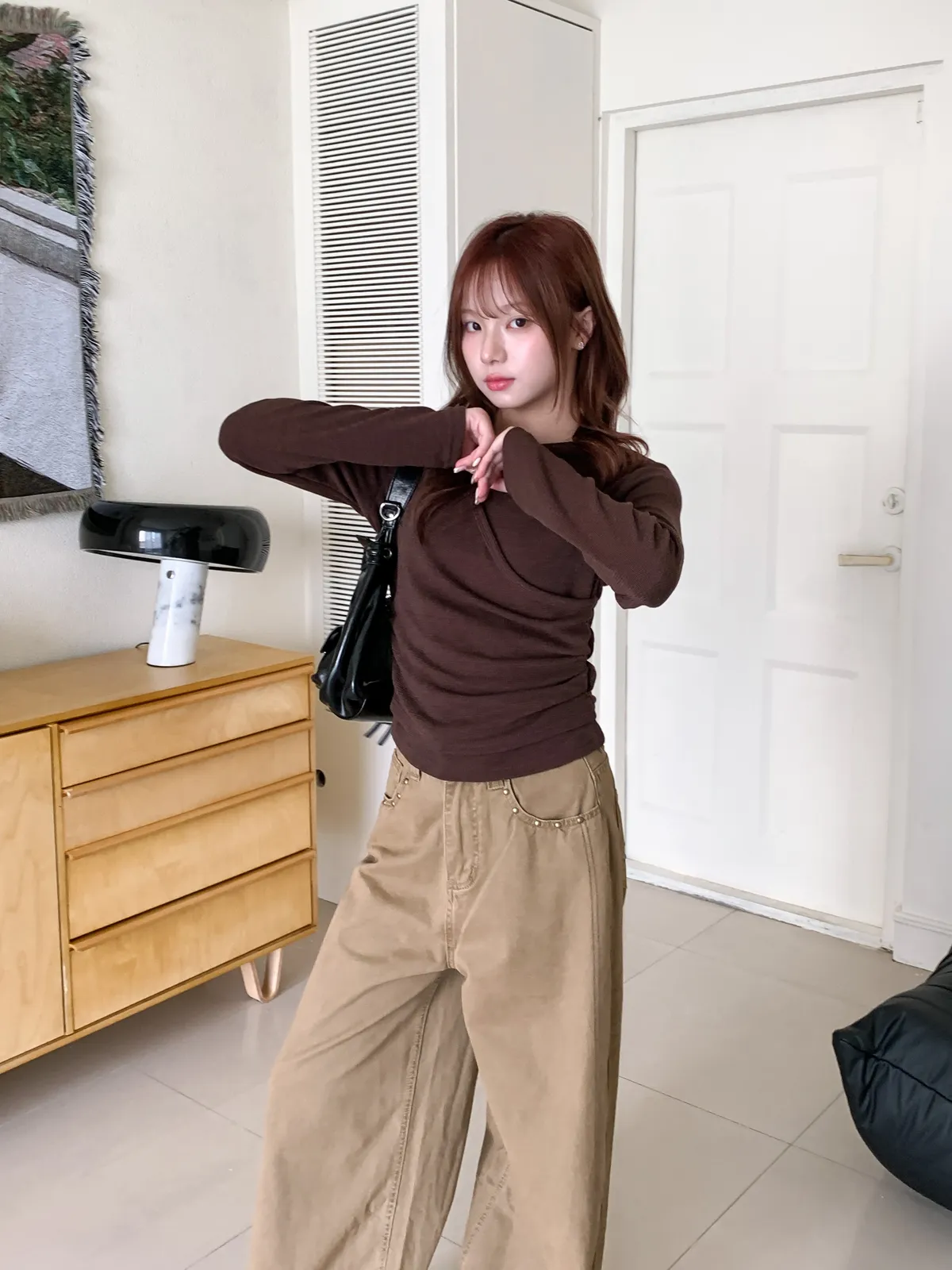 假兩件斜肩造型上衣 雙側邊都有抓皺設計