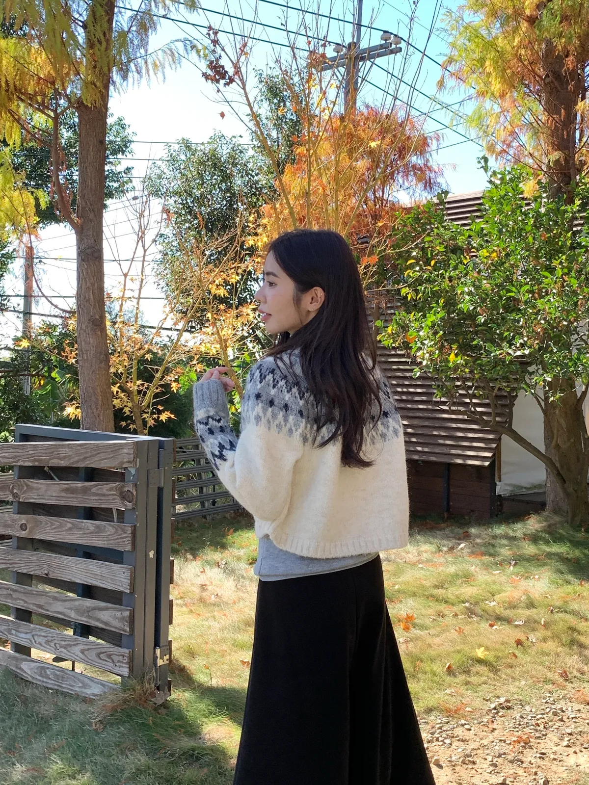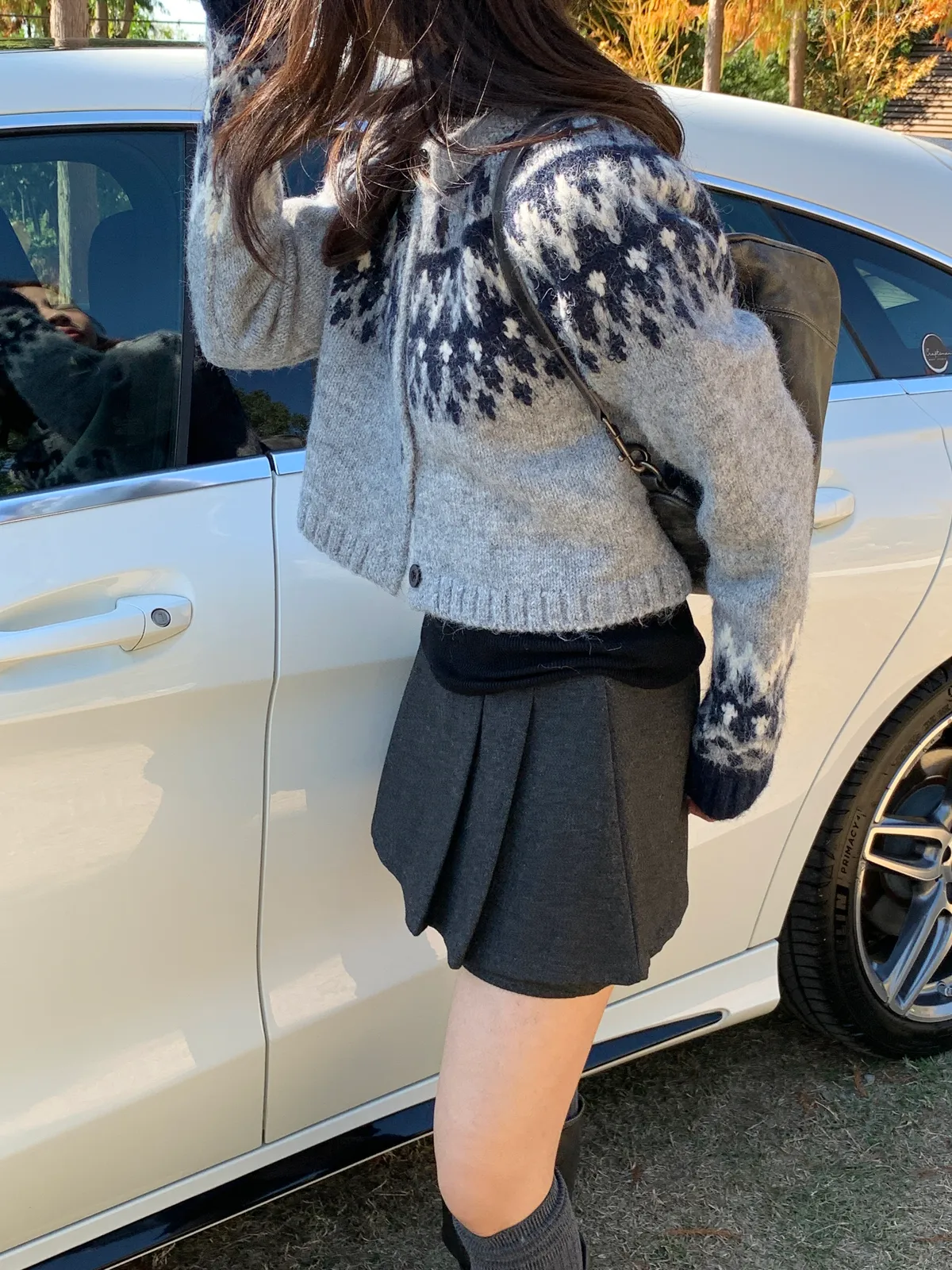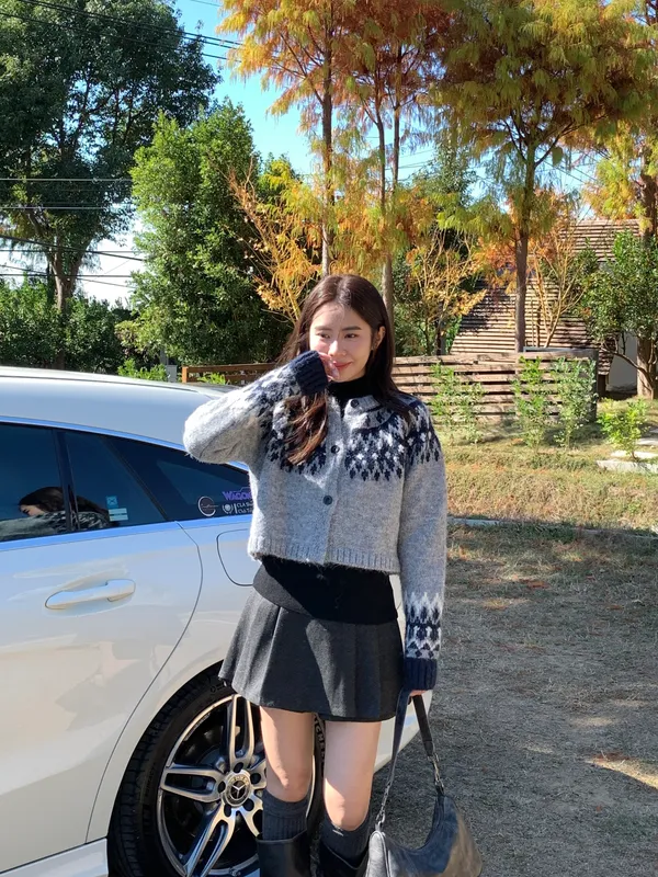 摩納哥菱格毛絨感圓領針織外套