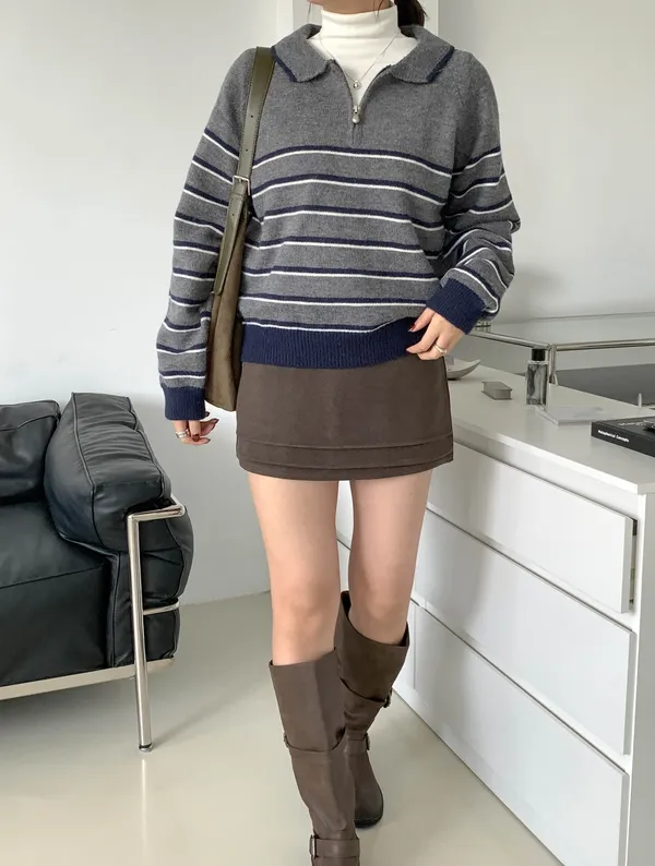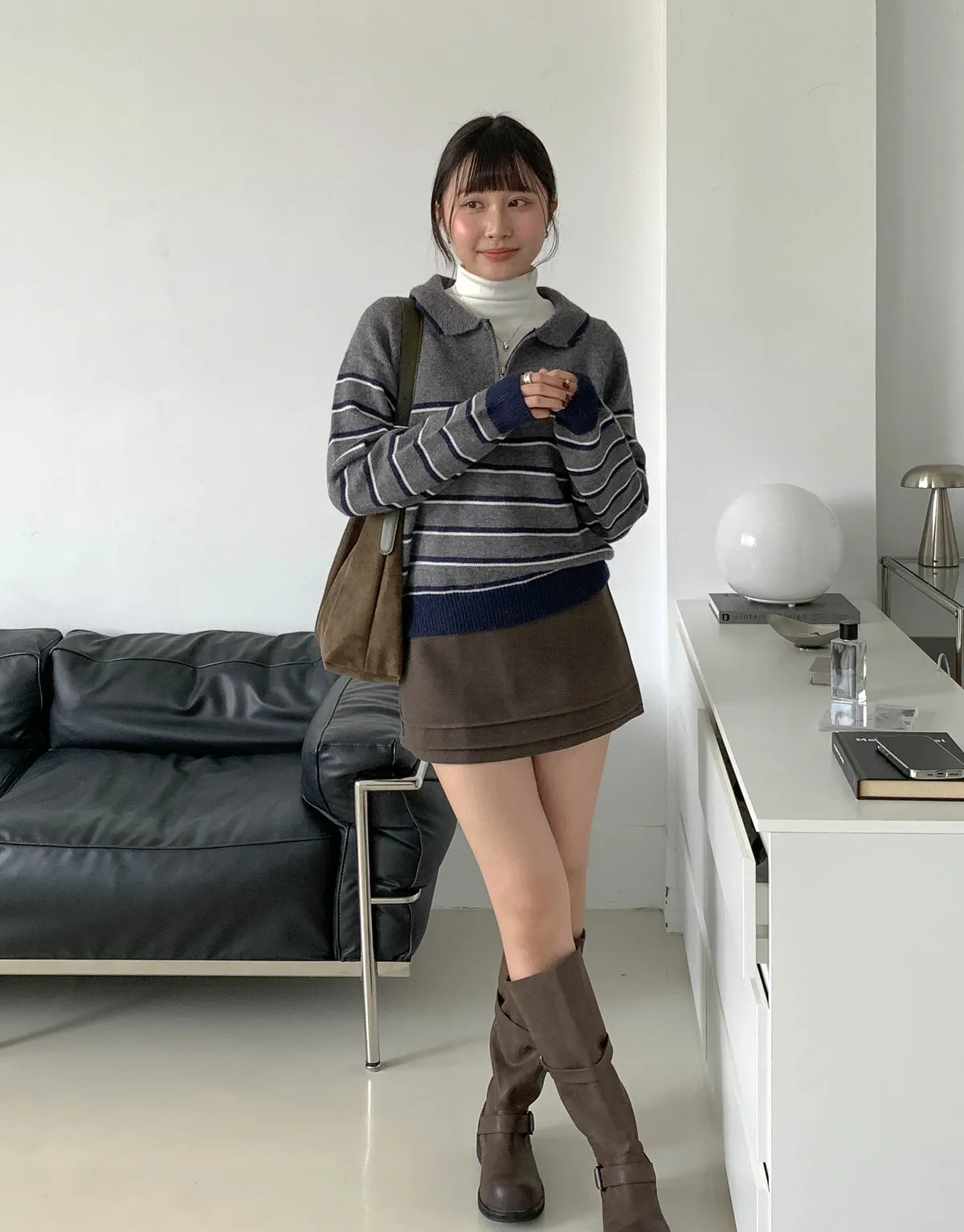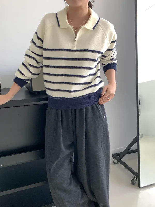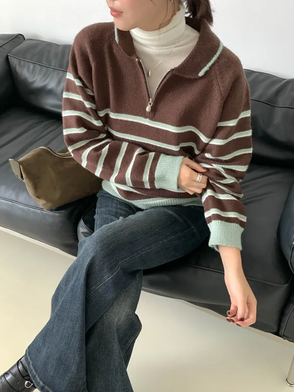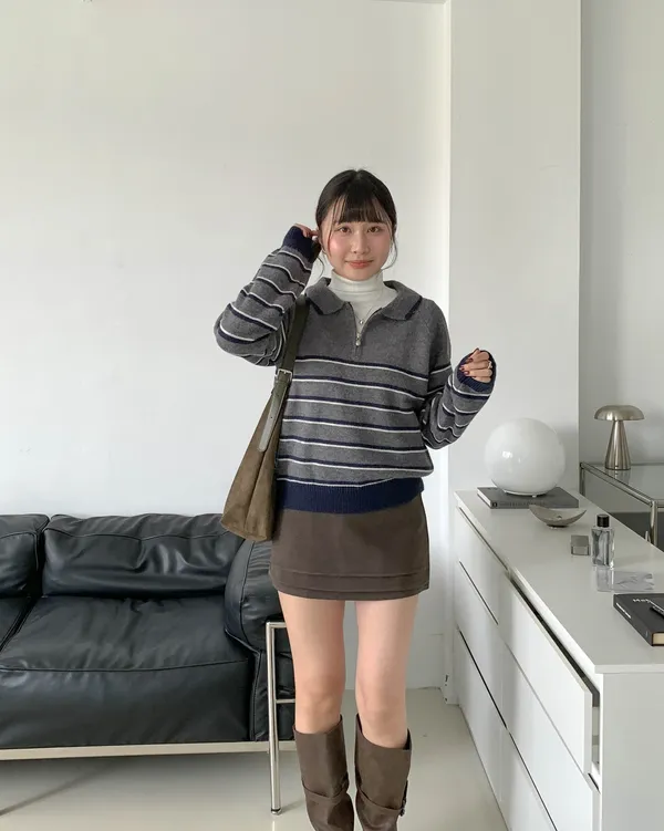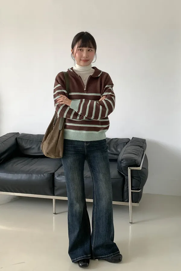 韓系條紋設計時尚百搭,厚針織材質保暖舒適,