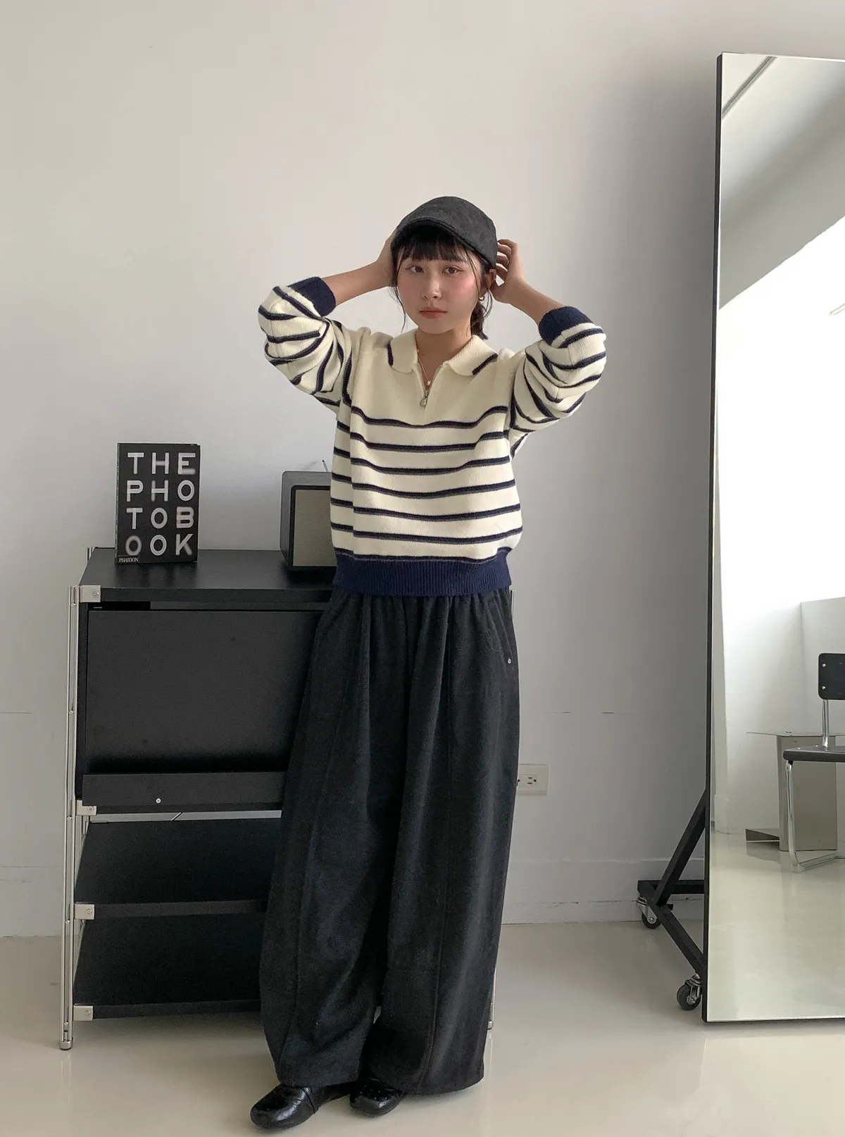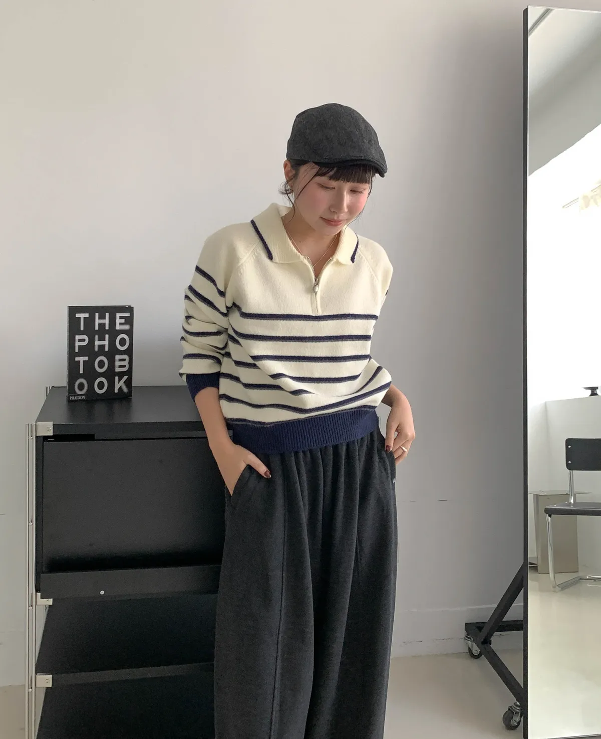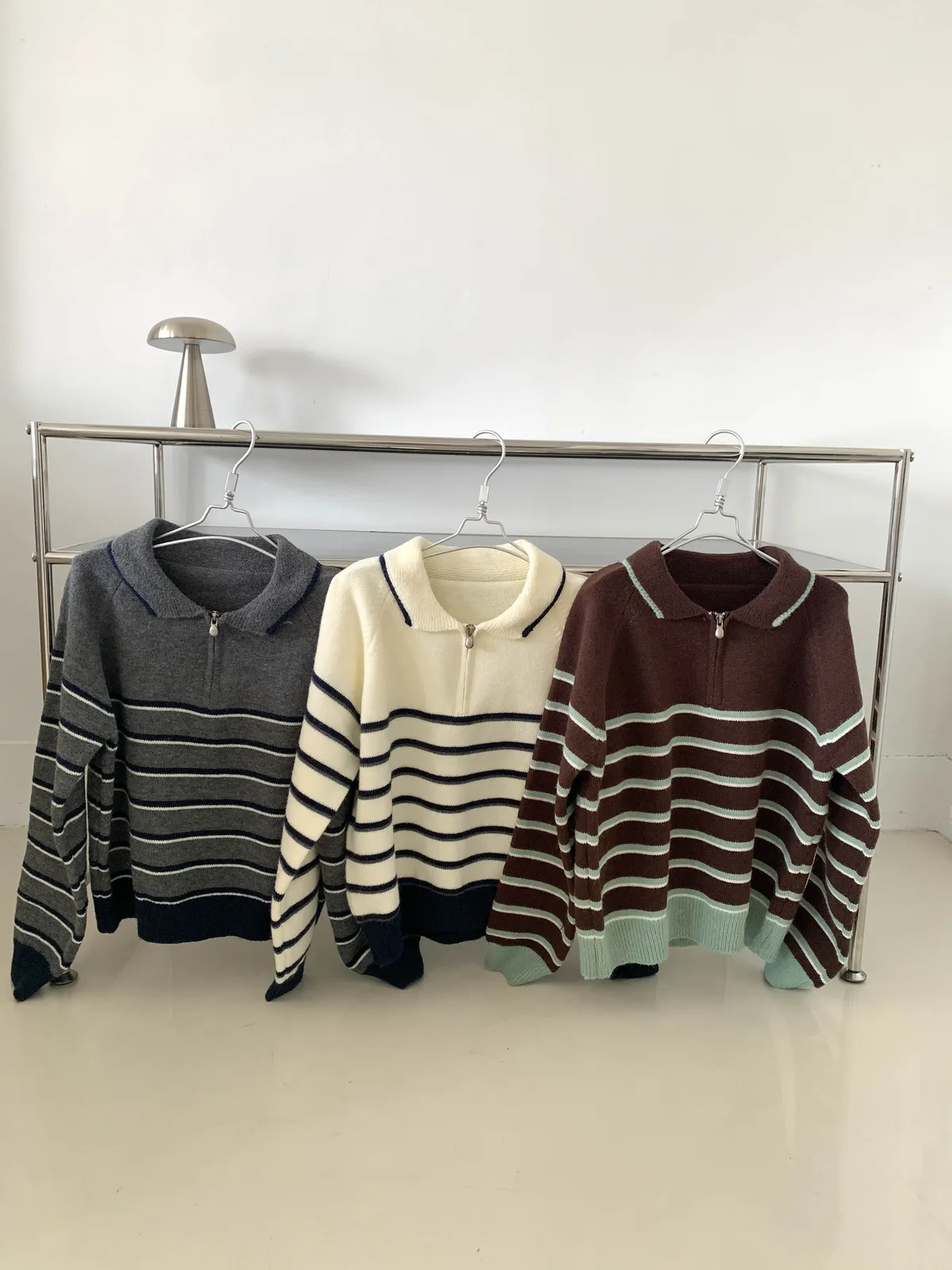 韓系條紋設計時尚百搭,厚針織材質保暖舒適,