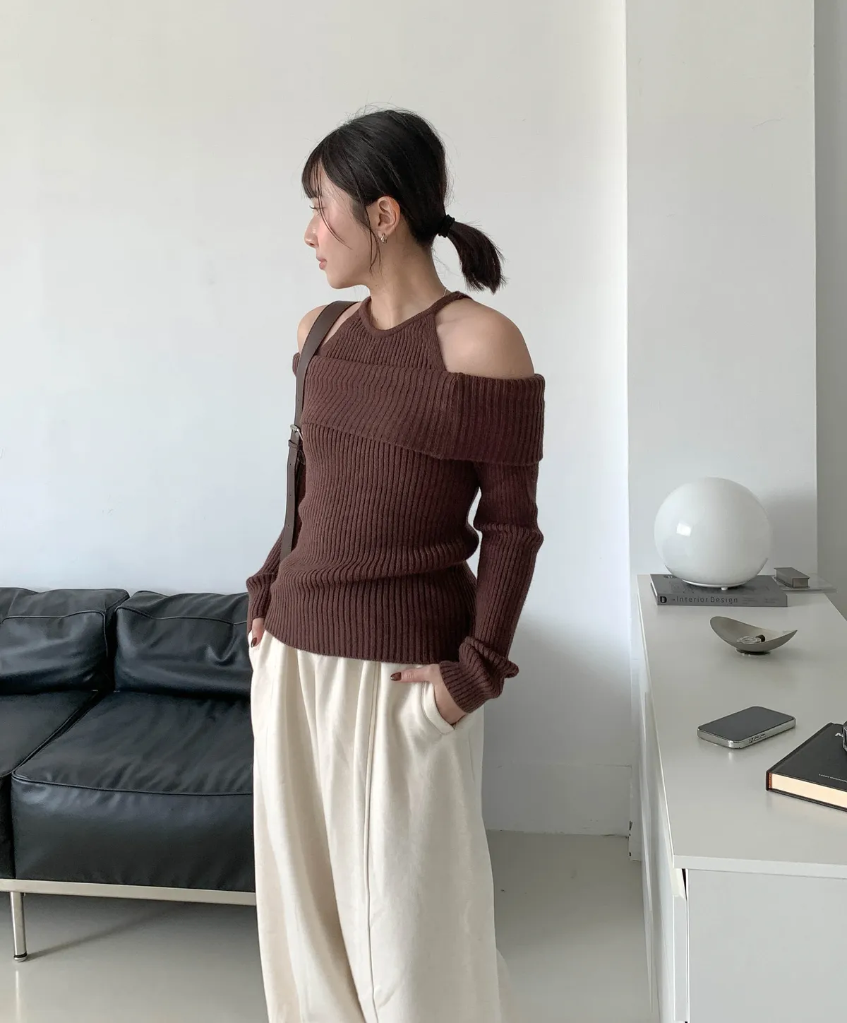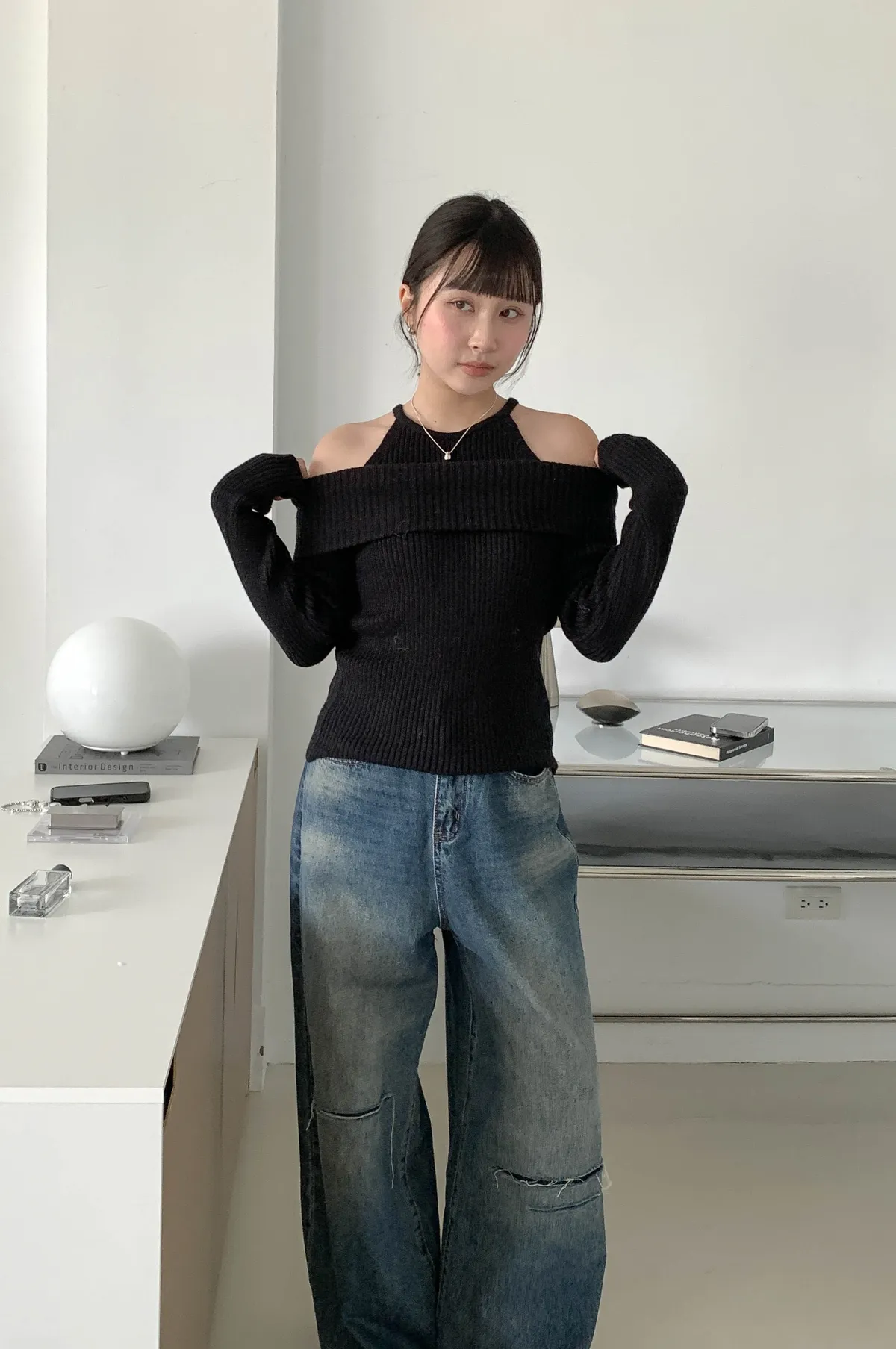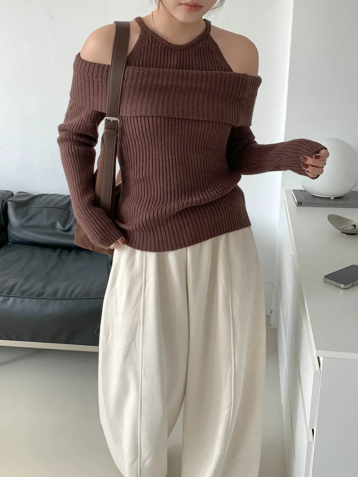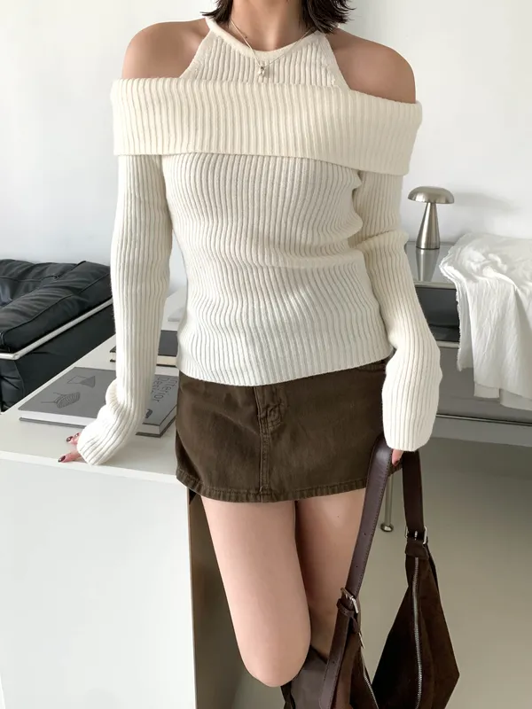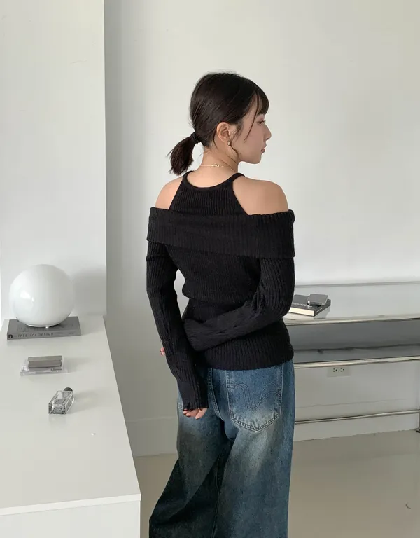 露肩平口剪裁展現鎖骨線條,柔軟針織材質親膚舒適,百搭又時尚的日常單品。