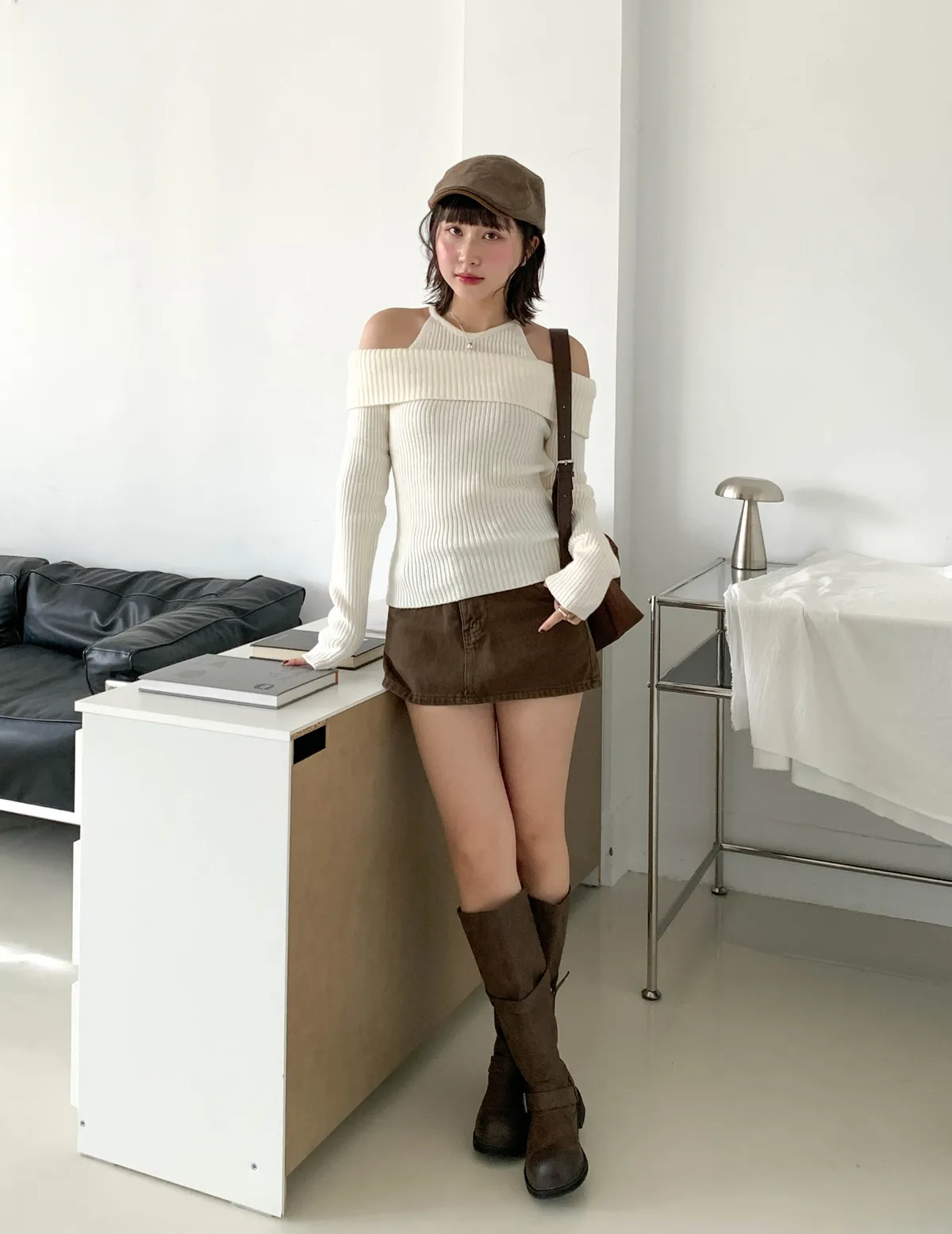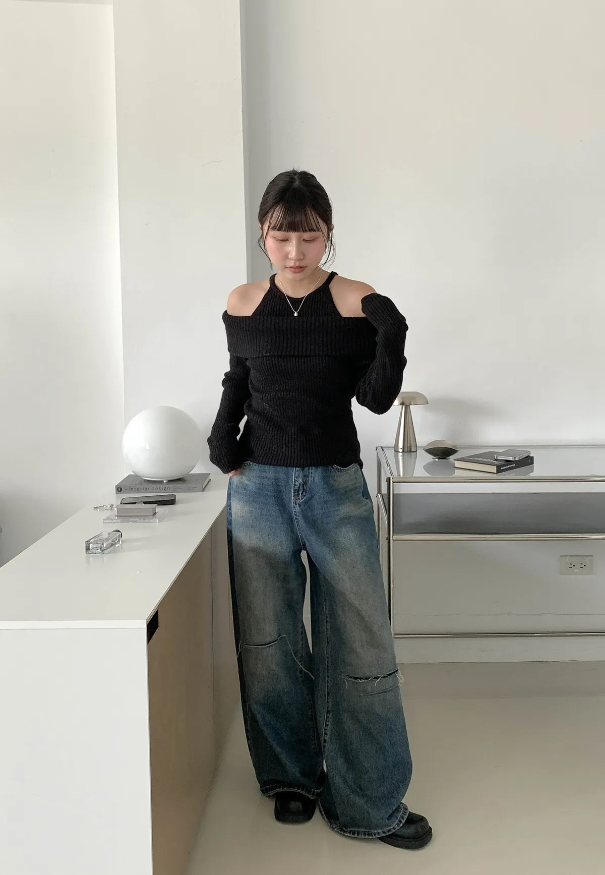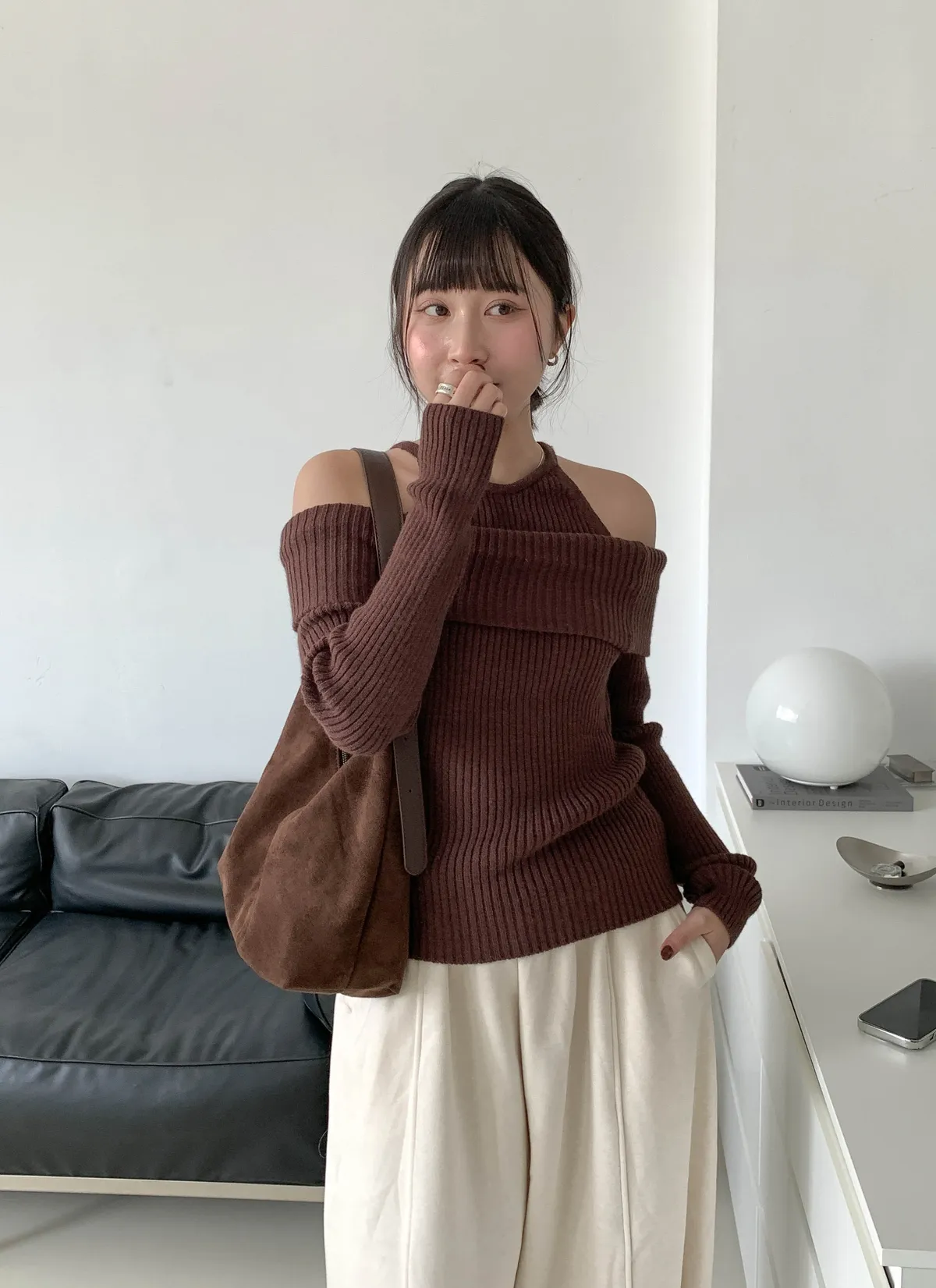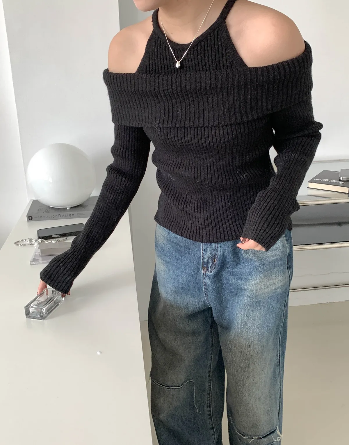 露肩平口剪裁展現鎖骨線條,柔軟針織材質親膚舒適,百搭又時尚的日常單品。