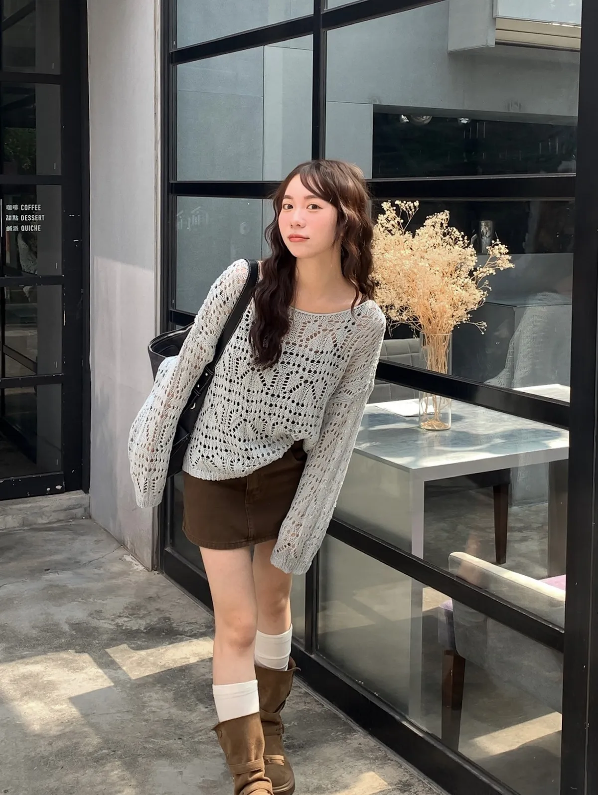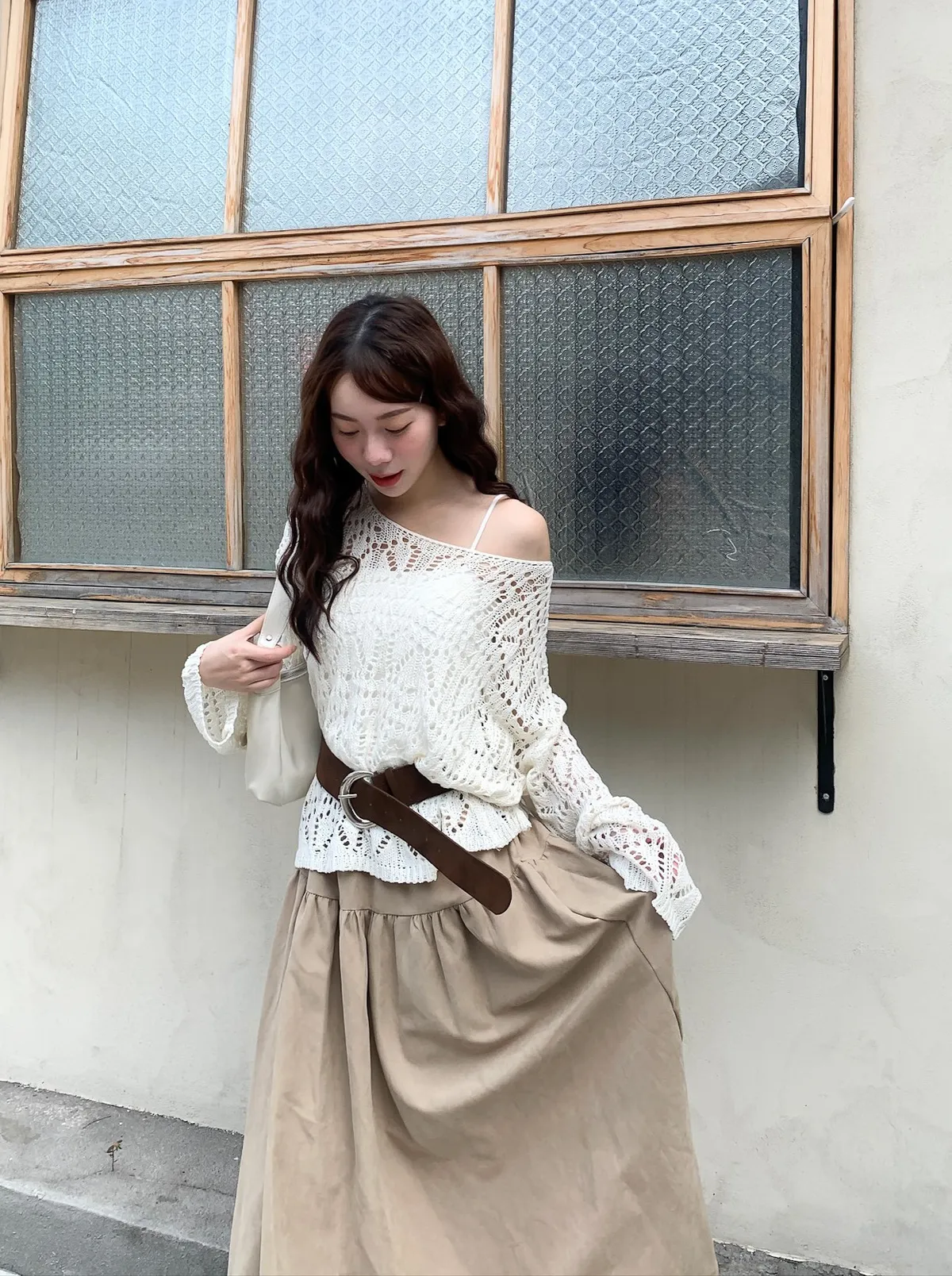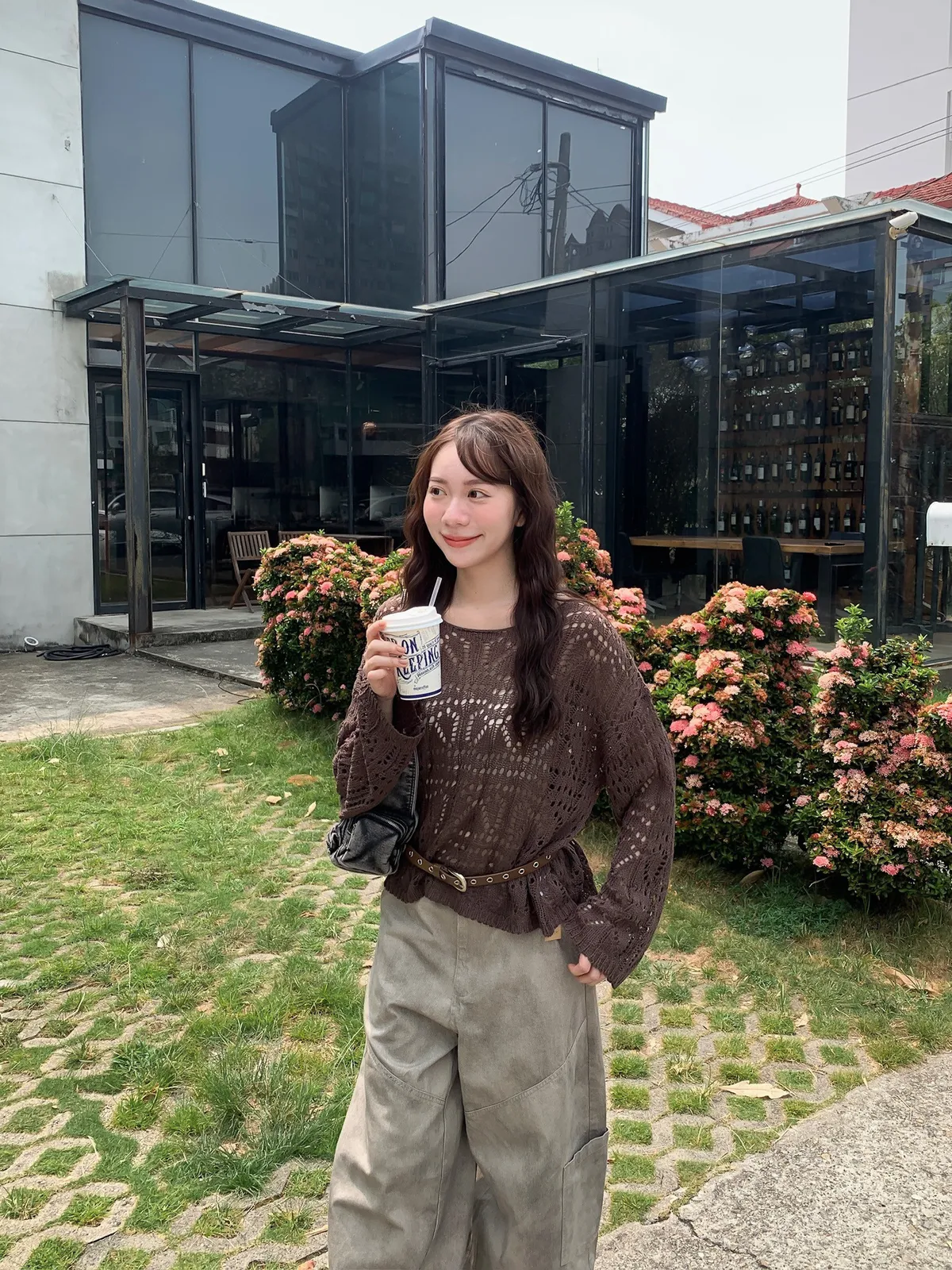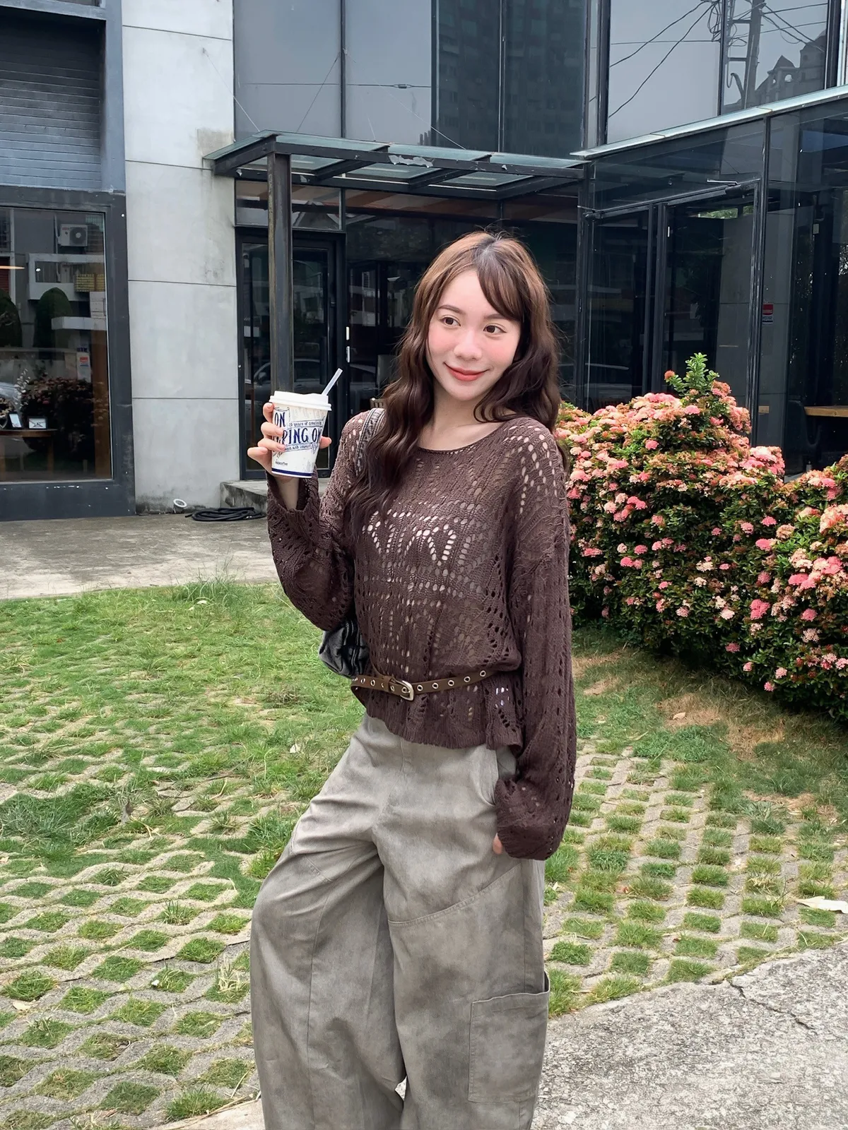洞洞簍空針織上衣帶點微性感 船領設計可拉斜肩